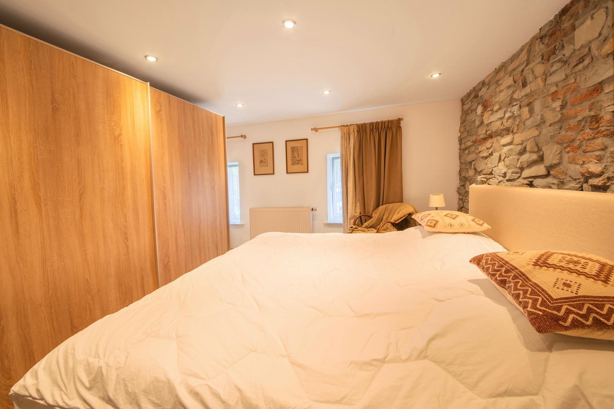 Dette charmerende feriehus i Tilff, Esneux tilbyder et hyggeligt og veludstyret oase kun få skridt fra bymidten og offentlig transport. Ideel til par eller små familier, er ejendommen beliggende i et fredeligt kvarter med hurtig adgang til Liège, kun 13 km væk. Naturelskere vil nyde de nærliggende skovstier, mens historieinteresserede kan udforske Château du Rond-Chêne og den romerske villa Esneux. Den naturskønne Ourthe-flod inviterer også til kajaksejlads og gåture langs floden. Boligen har en lys stue med internationalt tv, en spiseplads og et åbent køkken udstyret med kaffemaskine, ovn og opvaskemaskine. Ovenpå sikrer to rummelige soveværelser med kingsize-senge afslappende nætter. Et komplet badeværelse med både badekar og bruser tilføjer komfort. Gæsterne kan slappe af på den private 15 m² store terrasse eller nyde måltider på den udendørs veranda. Centralvarme og privat parkering fuldender faciliteterne for et behageligt ophold. Tilff er omgivet af naturlig skønhed og kulturelle perler og tilbyder fremragende spisning kun 100 meter væk. Nyd raffineret køkken på L'Olivier des Sens, italienske favoritter på La Vita e Bella eller hyggelige belgiske retter på Le Châtillon. Uanset om du er på vandretur, sightseeing eller nyder lokale smagsoplevelser, er dette hjem en perfekt base for dit belgiske eventyr.