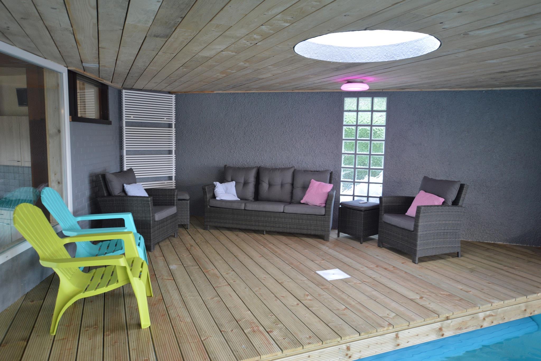Dette 6-værelses feriehus i Trooz, Ardennerne er et luksuriøst tilflugtssted for op til 19 gæster, perfekt til familier eller grupper. Nyd en privat indendørs pool med jetstream, sauna, boblebad og et opholdsrum med billard, bordfodbold og dart. Et barområde og solrig terrasse gør det ideelt til afslapning indendørs eller udendørs. Boligen er omgivet af natur, kun 100 m fra skoven og tæt på naturskønne stier som Vallée du Ninglinspo og La Roche aux Faucons. Udforsk Liège (11 km), eller tag en dagstur til Malmedy, Stavelot eller Spa-Francorchamps F1-kredsløb (50 km). Restauranter (2 km) og butikker (4 km) er i nærheden. Villaen har fuldt udstyret køkken, moderne badeværelser og gratis WiFi. Elektricitet, vand og varme (olie 1,50 EURO/l) opkræves på stedet. Ingen fester eller ungdomsgrupper tilladt.