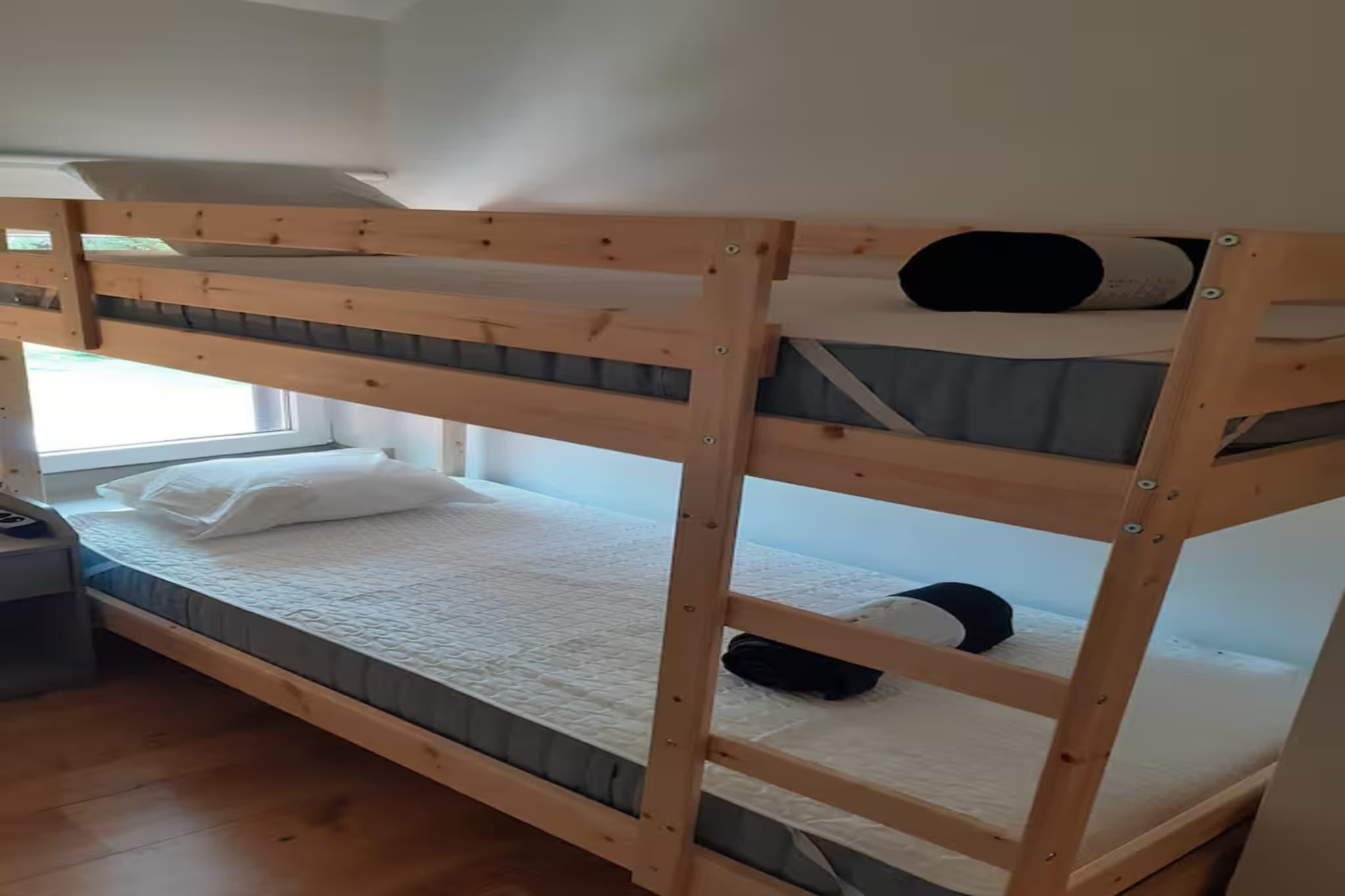 Stueetage: (Stue(Fjernsyn, spisebord, sofahjørne, Netflix), Køkken(elkedel, brødrister, kaffemaskine, ovn, mikrobølgeovn, opvaskemaskine , køleskab, fryser, , , Wine glasses), badeværelse(bruser, håndvask, toilet), badeværelse(bruser, håndvask, toilet)) På 1. etage: (soveværelse(dobbeltseng, håndvask), soveværelse(køjeseng, håndvask), soveværelse(enkeltseng, enkeltseng, håndvask), soveværelse(enkeltseng), soveværelse(dobbeltseng, håndvask), badeværelse(bruser, håndvask, toilet)) Internetadgang, tørretumbler, vaskemaskine, patio, terrasse, have, havemøbler, grill, parkering, bordfodbold,