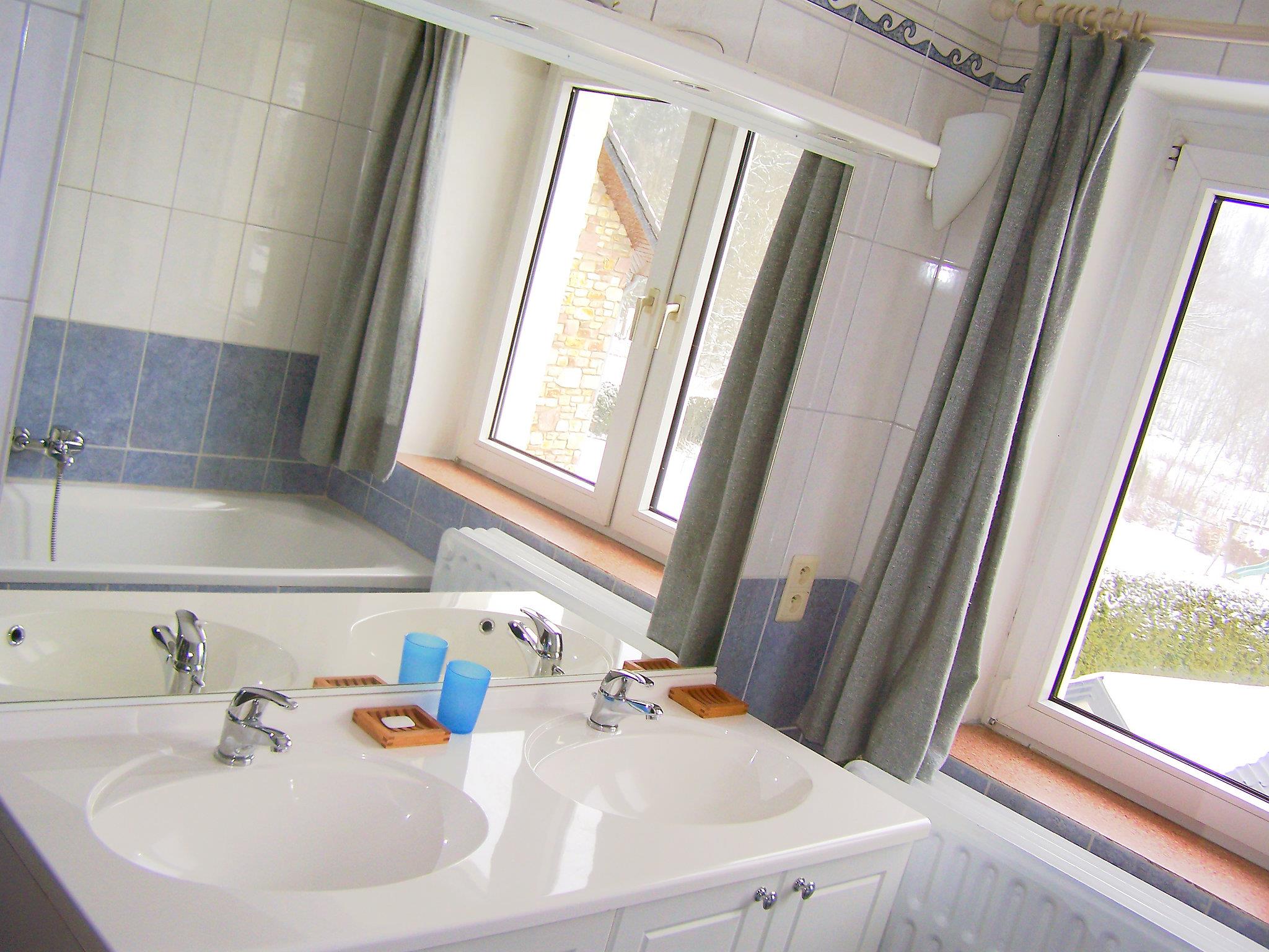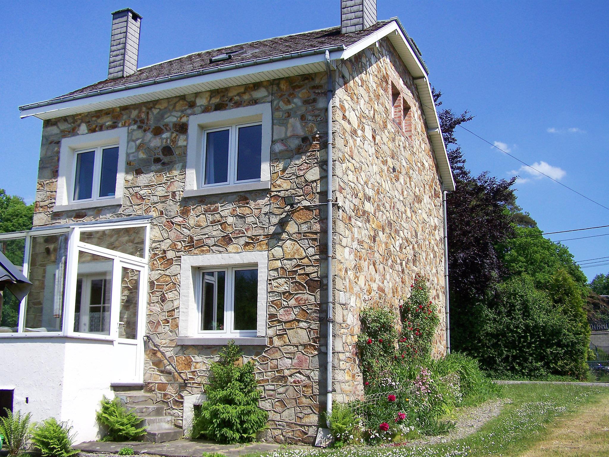 Vielsalm: Rustic, comfortable country house "Vielsalm", 3 storeys. 1 km from the edge of the forest, 200 m from the lake, 50 m from the river. For shared use: garden. Private: table tennis, boules, barbecue, children's playground (swing). In the house: trampoline. Parking at the house, single garage. Shop 200 m, supermarket 280 m, restaurant, bakery, café 300 m, bus stop "Vielsalm centerparcs" 300 m, railway station "Vielsalm" 1 km, indoor swimming pool 700 m. Tennis, indoor tennis centre 800 m, riding stable 10 km, sports centre 950 m, walking paths from the house 50 m, cycle lane. Nearby attractions: Attractiepark Plopsacoo 13 km, Watervallen van Coo 17 km, Bier brouwerij d'Achouffe 26 km, Het circuit van Spa-Francorchamps 27 km, De thermen van Spa 32 km, Luik 65 km. Well-known lakes can easily be reached: Lac de Doyards 100 m. Please note: car recommended. Free shuttlebus available (on request) from the trainstation of Vielsalm to the holiday house. Groups of youngsters not allowed.