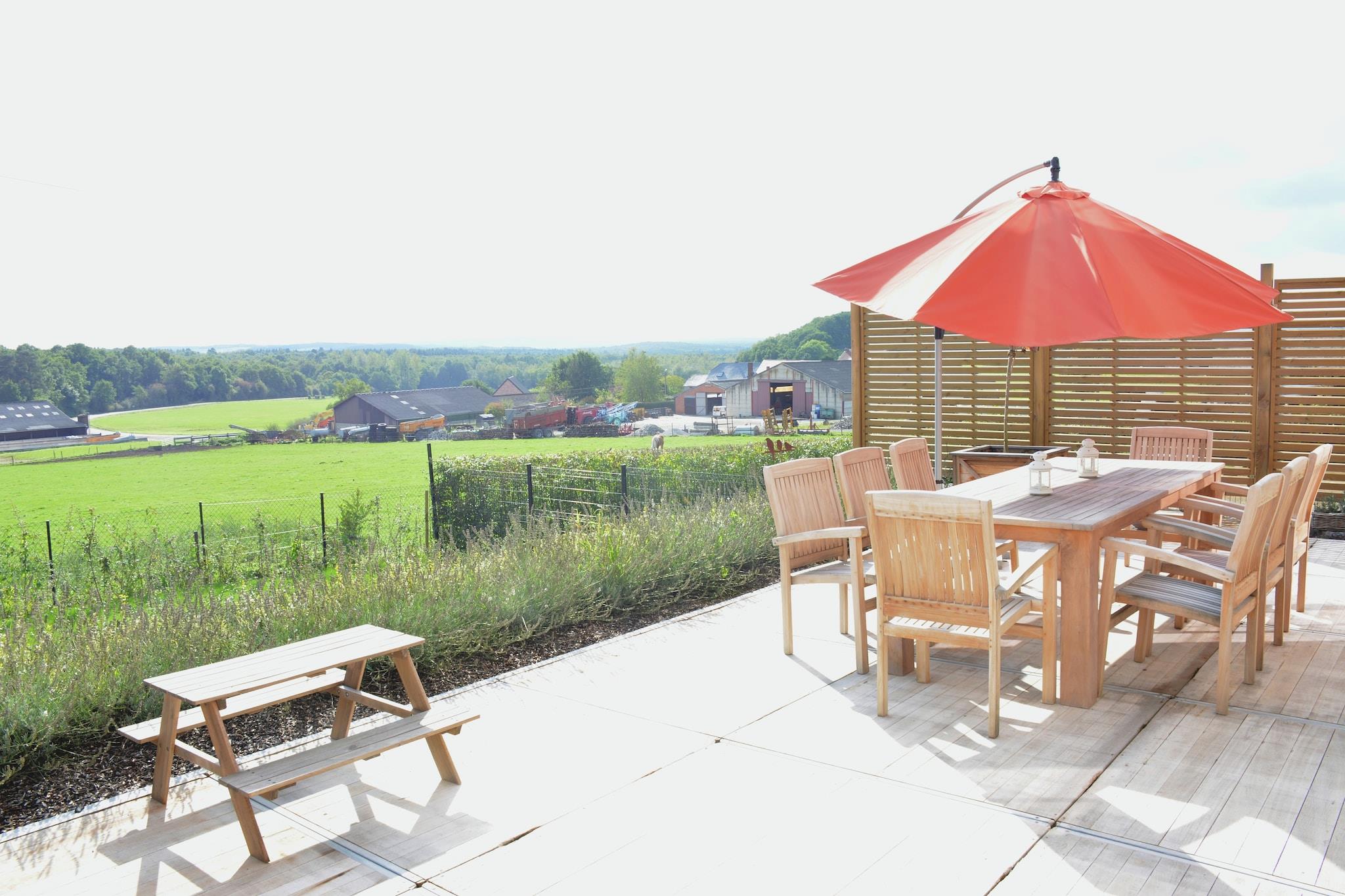 Et par kilometer fra den franske grænse, ikke langt fra Dinant og de mange turistaktiviteter, er den lille landsby Vodelée stille mellem enge og skove. I slutningen af landsbyen er denne smukke villa indrettet på en måde, du kan nyde stor komfort. Køkkenet er fuldt udstyret, loungen har en brændeovn, og udsmykningen er varieret og smagfuld. Ejeren fik alle til at have det sjovt: spillehal specielt designet til yngre børn, en meget vellykket hjemmebiograf (mange dvd'er er til rådighed), et andet rum til afslapning og velvære og selvfølgelig en dejlig terrasse hvor alle kan nyde en god solrig grill, udsigten er meget smuk. Et spor, damme og individuelle kasser står til din rådighed for dine heste i ejerens gård ved siden af. Mange gåture, til heste, på cykel eller til fods, skal laves i region. Eventyrparker er et par kilometer væk, samt ned ad Lesse med kajak, eller sejlads på Meuse. Definitivt ikke at gå glip af!