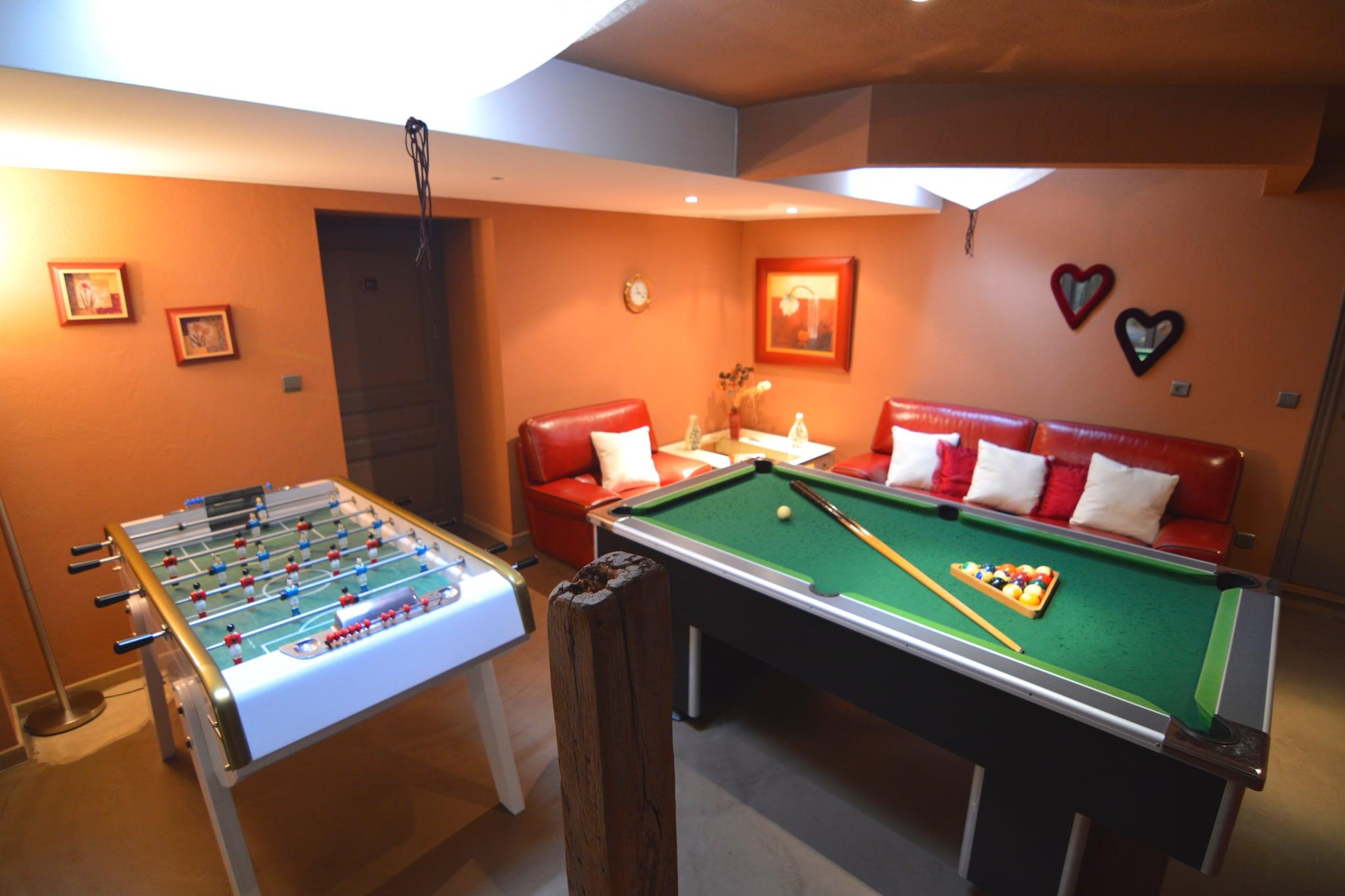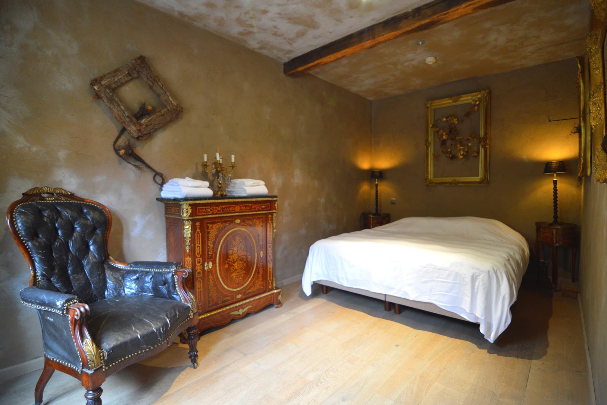 Bo i denne luksusmølle i Ardennerne, der er udstyret med en rigtig indendørs swimmingpool. Den sande epikuræer vil ikke finde noget, der mangler her. 11 soveværelser kan rumme 22 gæster (og 1 kæledyr). Ideel til familier. Adgang til huset sker via et par trin, uden kørestolsramper._x000D_ _x000D_ Start dagen med en sund tur i skoven, som ligger 100 m fra overnatningsstedet. I 3 km afstand finder du et supermarked, hvor du kan få din morgenmad og om aftenen kan du spise en dejlig middag i en af restauranterne (også 3 km). Centrum er 1 km fra overnatningsstedet._x000D_ _x000D_ Hvis du ikke vil ud og spise, kan du lave en middag til hele selskabet i køkkenet. Du kan forfriske dig på badeværelset, som er udstyret med bruser og håndvask. Der er varmelegeme i huset og den private pool er opvarmet og overdækket. Til et spil bordfodbold eller billard er dette også stedet at være._x000D_ _x000D_ Der er et busstoppested 1,4 km fra overnatningsstedet.
