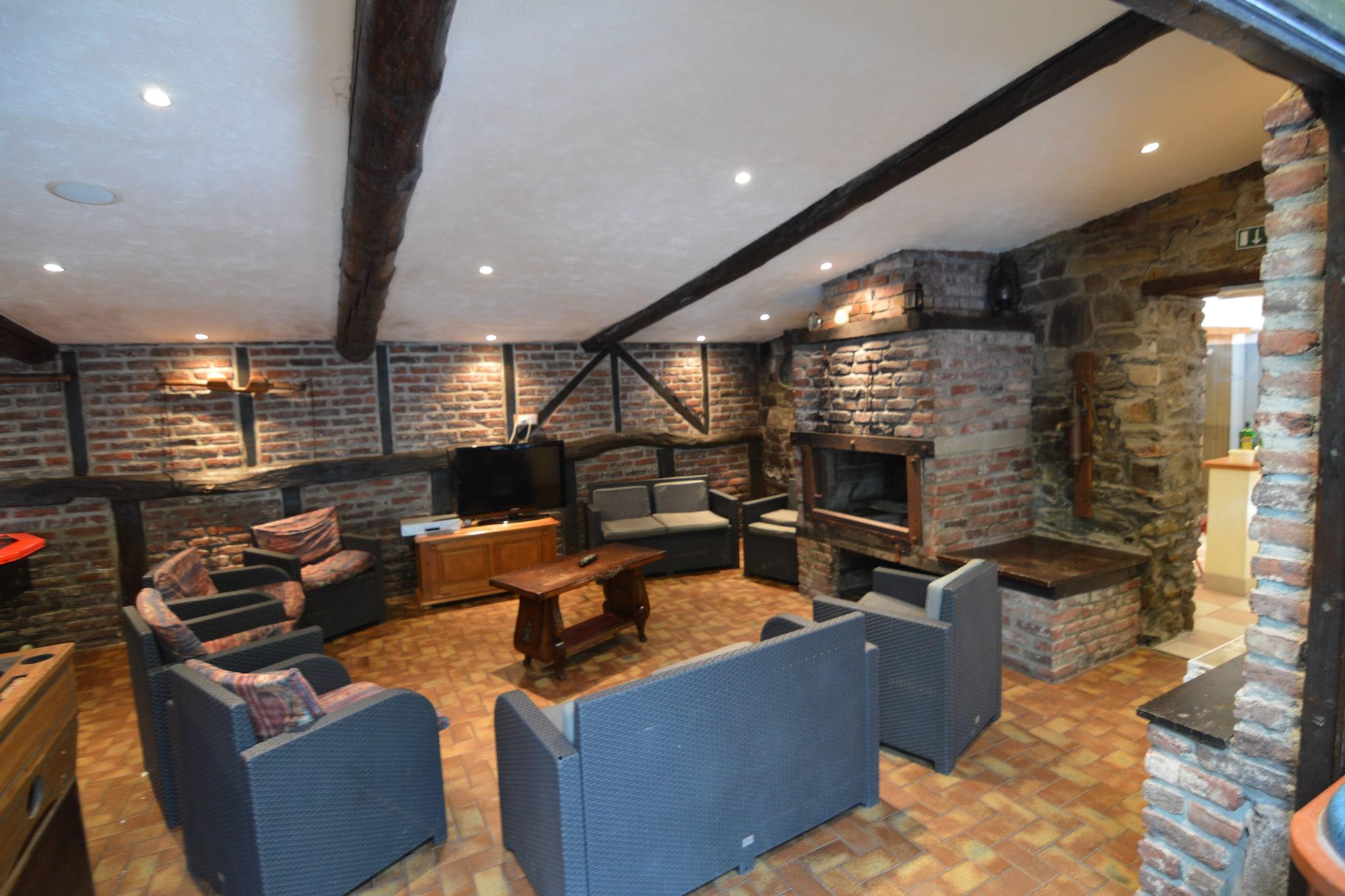 Beliggende i den fredelige landsby Waimes, er dette feriehus med 11 soveværelser perfekt til op til 21 gæster, ideelt til familiesammenkomster eller grupperejser. Nyd en privat swimmingpool, indhegnet gårdhave og et afslapningsområde med infrarød sauna. Legerummet med bar, billard og bordfodbold tilføjer sjov til dine aftener. Boligen ligger kun 500 m fra byens centrum, tæt på en sø (2 km) og restauranter og supermarkeder (5 km). Udforsk regionen til fods eller på cykel, og prøv lokale øl som Bellevaux, Malmedy og Super de Fagnes. Om vinteren byder Ovifat-ski- og nordiske pister på snedækkede eventyr. Udendørs kan du samles i den private have til en grill under stjernerne. Boligen inkluderer parkering til 6 biler og er ikke egnet til studenter- eller polterabend. Lydanlæg er ikke tilladt, og stille timer begynder kl. 22.00 for at bevare roen i omgivelserne.