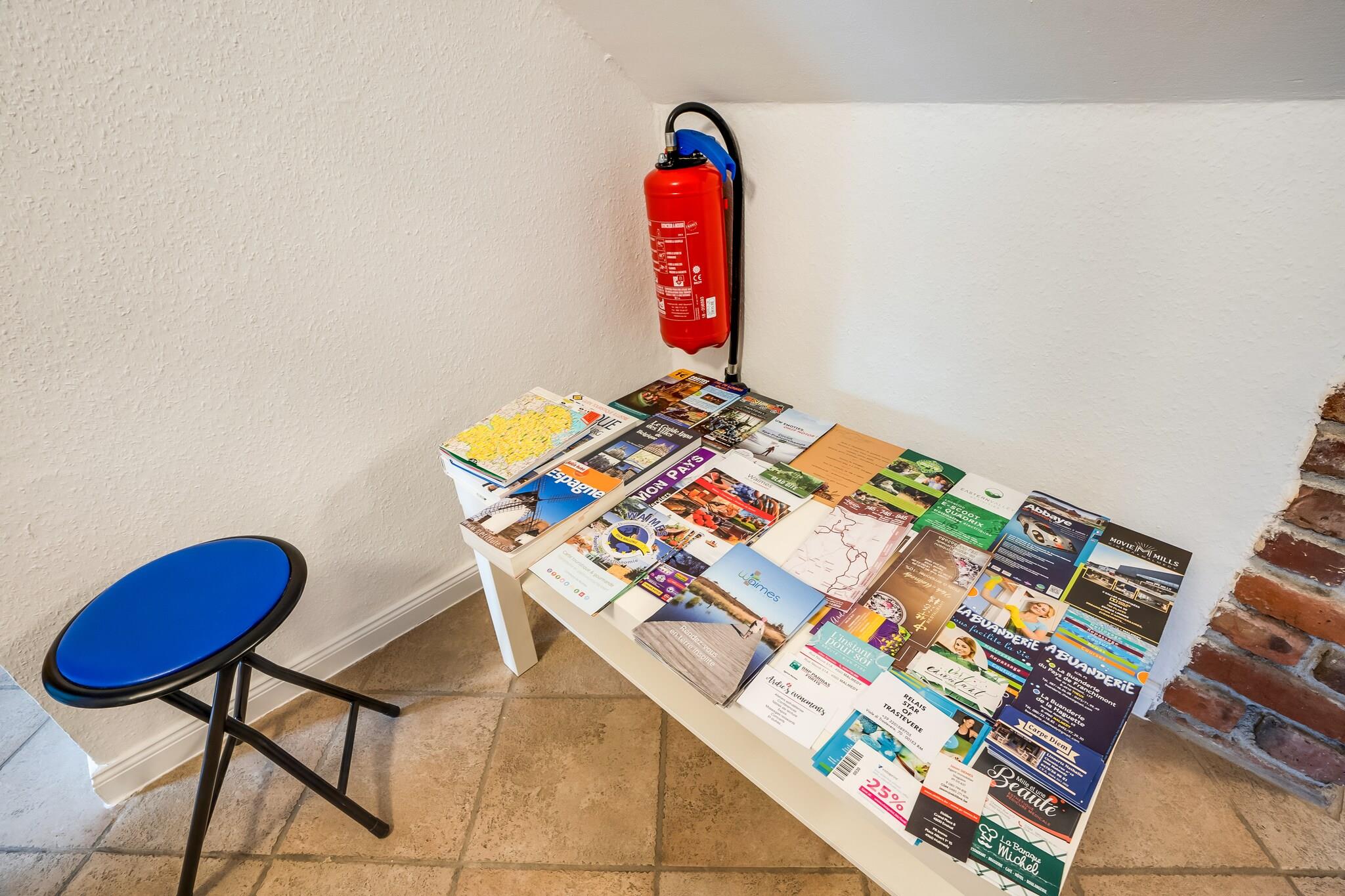 Stueetage: (Stue(dobbeltsovesofa, Fjernsyn), Køkken(spisebord, komfur, kaffemaskine, mikrobølgeovn, opvaskemaskine , køle-fryseskab)) På 1. etage: (soveværelse(dobbeltseng, køjeseng), soveværelse(dobbeltseng), badeværelse(bruser, håndvask, toilet)) have, parkering, legeredskaber