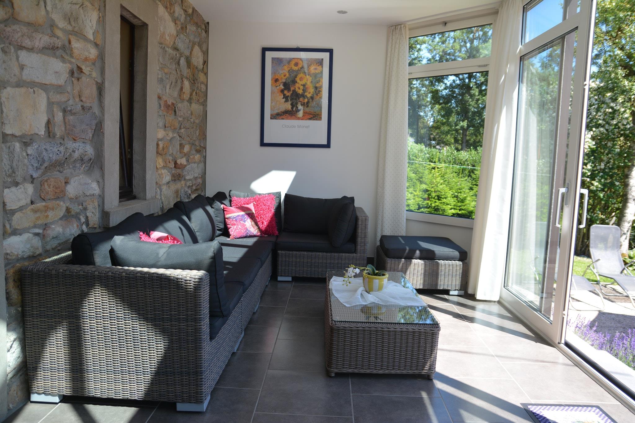 Dette sommerhus i Thirimont Ardennes, beliggende i den rolige landsby Thirimont, har 2 soveværelser og kan komfortabelt rumme 6 personer. Der er en stor have udstyret med havemøbler, grill, gynger og sandkasse, hvilket gør den børnevenlig._x000D_ _x000D_ Dette tilbagetrukket hjem ligger 500 m fra skovene, hvilket gør det perfekt til naturskønne gåture. Der er en sø 10 km fra, hvor du kan slappe af. Om aftenen kan du begive dig ud i byens centrum, 3 km væk, eller nyde de kulinariske muligheder, der tilbydes af restauranter, 3 km væk. Hvis du søger spændingen ved nattelivet i rolige omgivelser, er der 5 km til langrendsløjper og skilifte._x000D_ _x000D_ Privat parkering til rådighed for dit brug_x000D_ Amblève-dalen ligger 800 m væk, og Hauts-Sart-skov med en "sundhedsbane" ligger 500 m fra hytten, perfekt til dagsture._x000D_ _x000D_ Offentlig transport kan findes 3 km væk.
