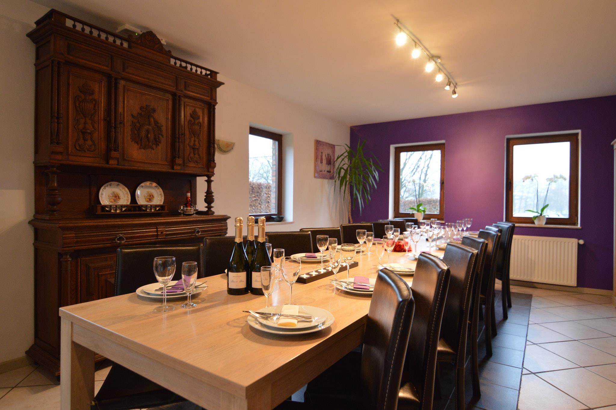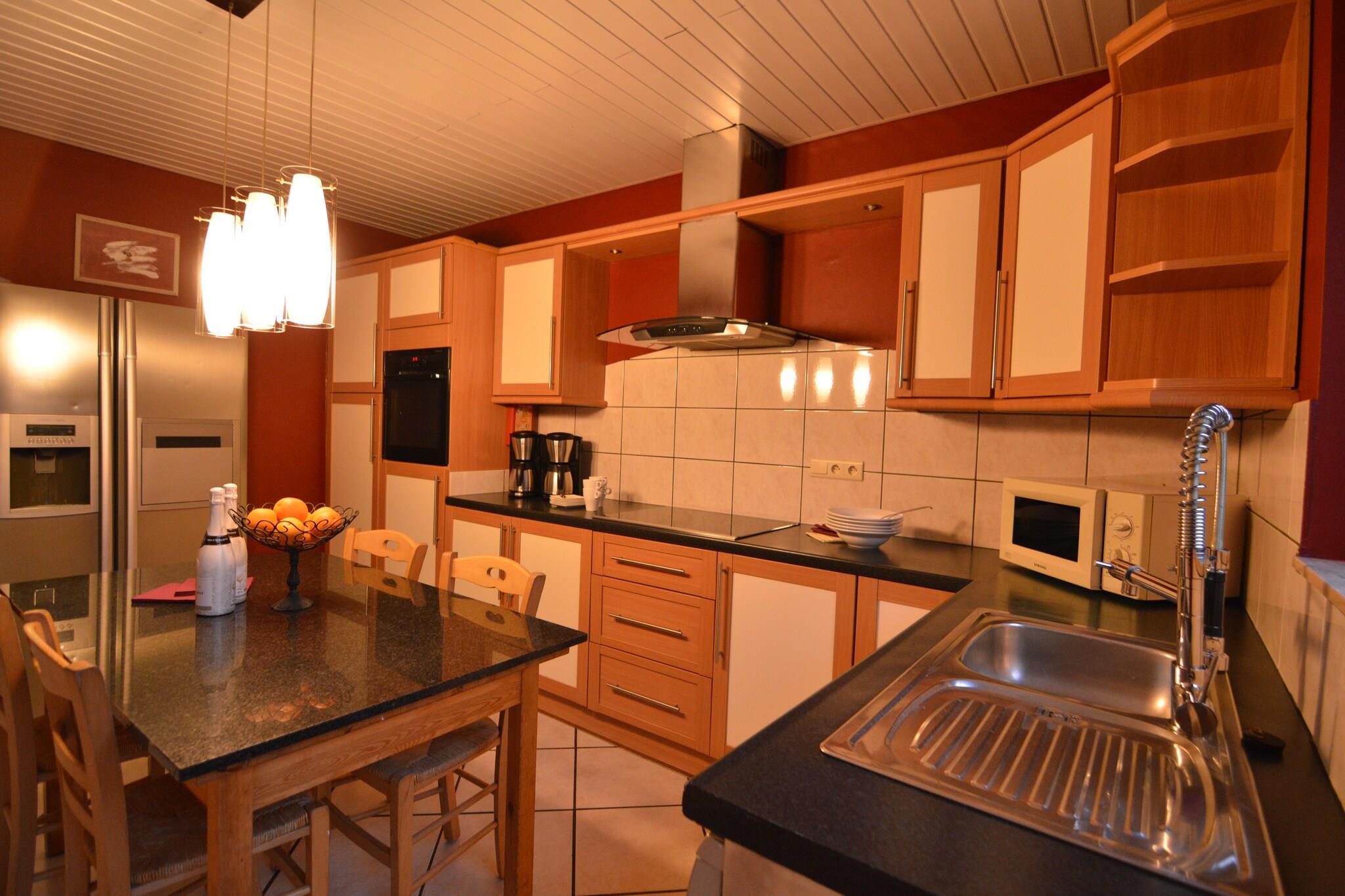 Ikke langt fra Malmédy og Waimes består dette sommerhus med swimmingpool af to separate boliger: Den ene del er et stort hus med sauna, bordfodbold, sportsrum, 5 soveværelser og 2 badeværelser. Den anden del er en lejlighed med billard, flipper, to soveværelser og et brusebad. Huset har også en have med swimmingpool og en terrasse med grill, hvor man kan have en behagelig tid i de smukke sommeraftener. Der er mange aktiviteter i regionen: besøg i byerne Stavelot med dens kloster og Malmédy med sin katedral, racer på Francorchamps sporet, vandre- og cykelture, ridning, fiskeri, tennis, skiløb mm