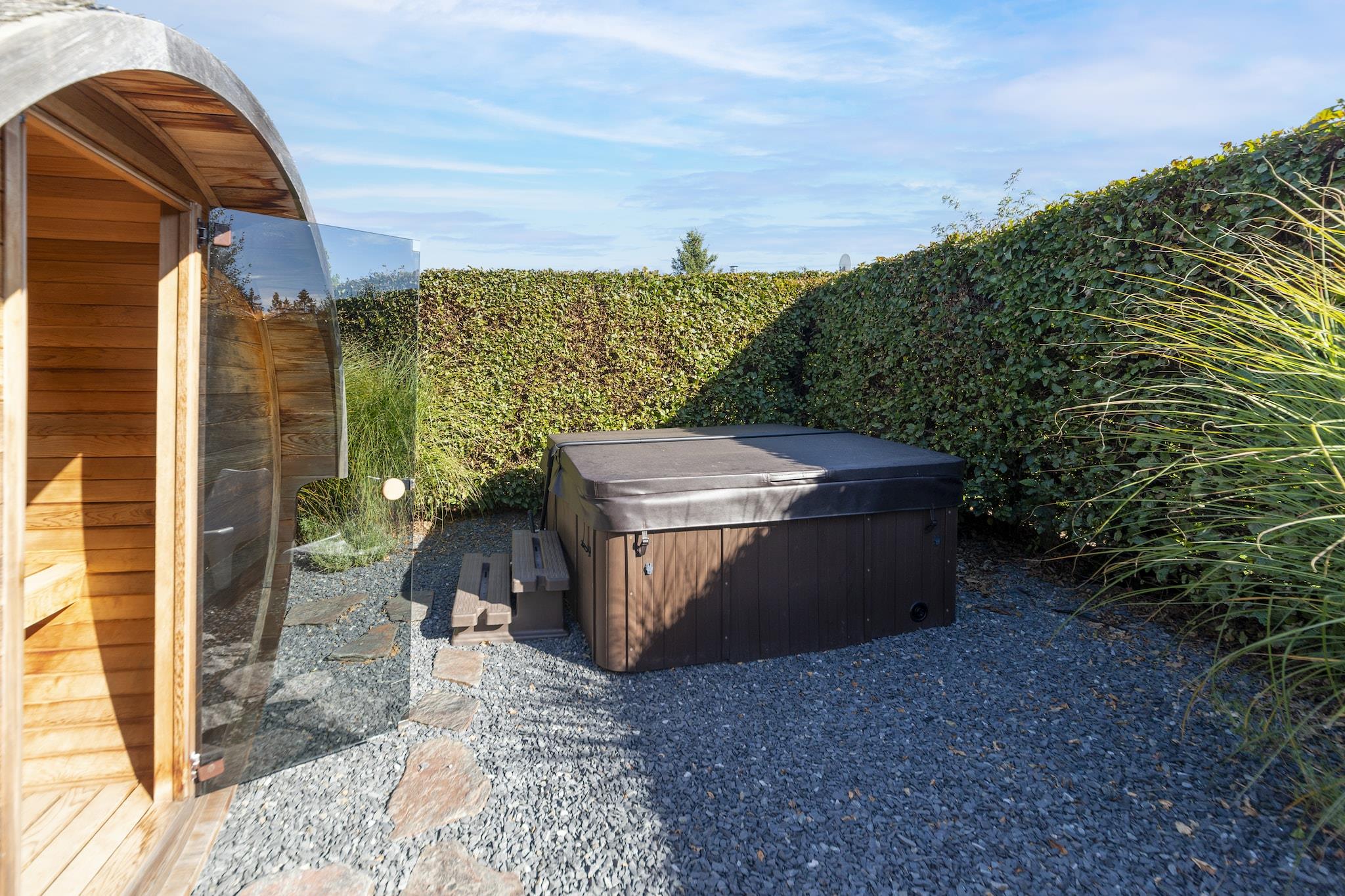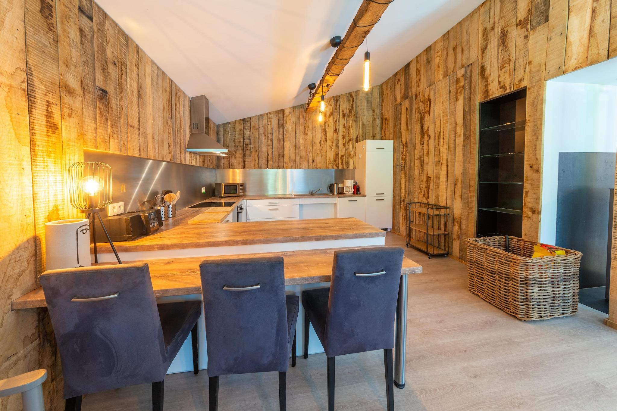 Denne luksuriøse 3-værelses chalet i Büllingen, beliggende nær en rolig sø i Ardennerne, er perfekt til familier eller grupper på op til 8 gæster. Nyd at slappe af i den private sauna, boblebad eller ved brændeovnen i den rummelige stue. Det åbne køkken er fuldt udstyret, og havedøre fører til en solrig terrasse og frodig privat have med grill. Kun 100 m fra søen er den ideel til picnic, vandreture og mountainbiking. Byens centrum ligger 2 km derfra og byder på butikker og restauranter, mens naturreservatet High Fens ligger i nærheden til naturskønne dagsture. Hytten har også et afslapningsområde, sovesofa, gratis WiFi og parkering på stedet. Kæledyr er velkomne, og ladestandere til elbiler er tilgængelige. Uanset om du dypper i spaen eller udforsker udendørs, tilbyder denne hytte den perfekte blanding af komfort og natur.