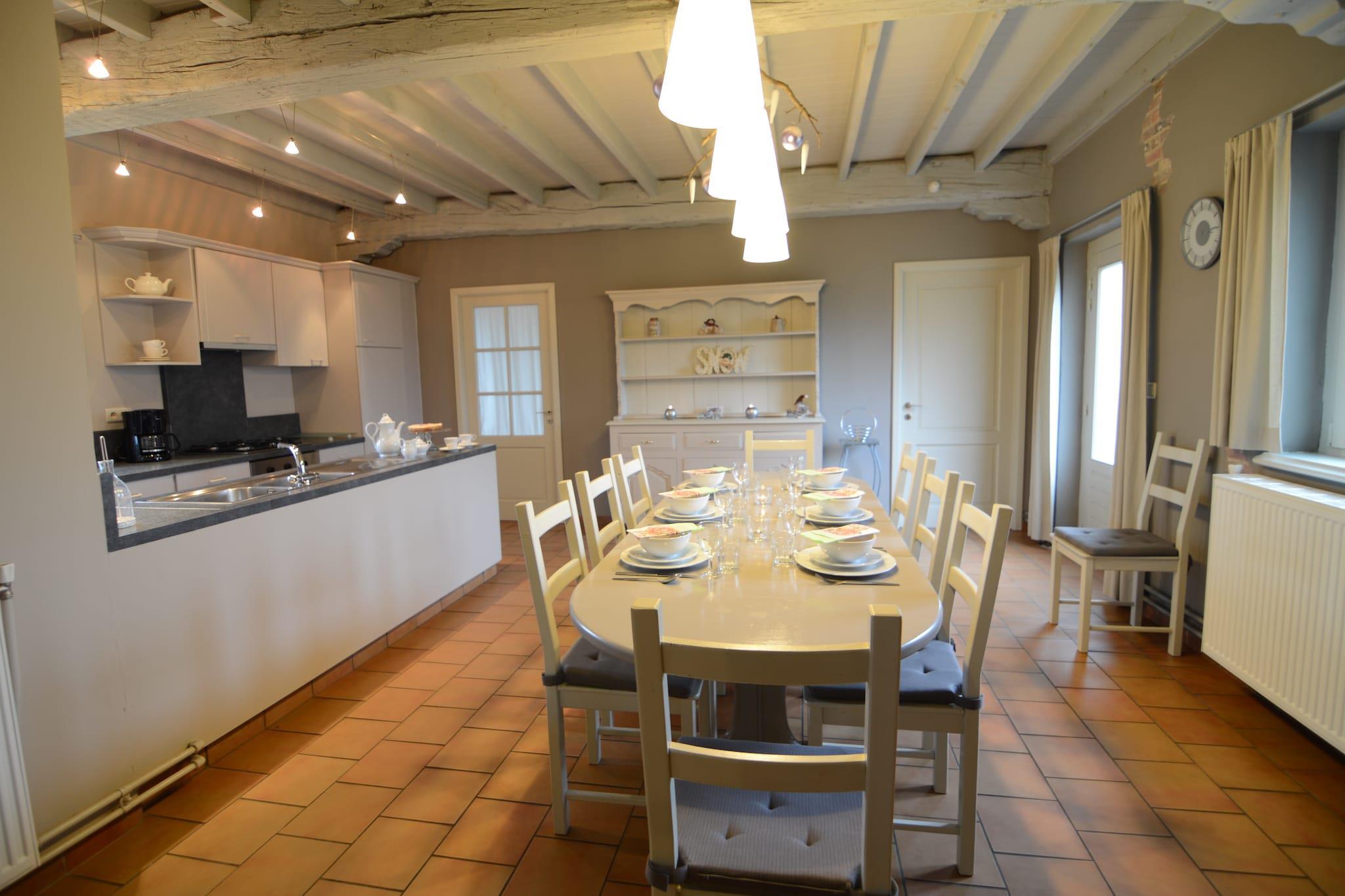 Charmerende Countryside Retreat Beliggende i det fredelige flamske landskab i Zele byder dette feriehus grupper og familier med børn velkommen til at slappe af og slappe af. Med 4 komfortable soveværelser, centralvarme og en terrasse kan det rumme op til 9 gæster. Stuen, med en hyggelig pejs, opholdsområde, tv og musik/dvd-muligheder, er det perfekte sted til stille aftener indendørs. En børneseng og høj stol er til rådighed, og haven omfatter legeredskaber til at holde de små underholdt, mens du nyder udendørsrummet. Udforsk lokale attraktioner Det omkringliggende landskab er perfekt til vandre- og cykelture, med marker, enge og skove kun få skridt væk. Naturentusiaster vil nyde nærliggende Donkmeer i Berlare og Molsbroeka naturreservat. Historieelskere kan udforske Laarne Slot, mens Gent (20 km) og Brugge (40 km) er ideelle til dagsture. Lokale restauranter og supermarkeder er bekvemt placeret kun 1 km fra hjemmet, hvilket gør det nemt at nyde friske måltider og udforske regionens kulinariske tilbud. Bekvemmelighed og komfort Parkering for op til 4 køretøjer sikrer stressfri ankomster, og offentlig transport er kun 300 m væk. Det store, veludstyrede køkken gør madlavning til din gruppe ubesværet, mens terrassen giver et roligt rum til morgenkaffe eller aftenafslapning. Ekstra gebyrer, herunder depositum, rengøring og valgfrit sengetøj eller håndklæder, håndteres på stedet, hvilket giver mulighed for et glat og organiseret ophold.