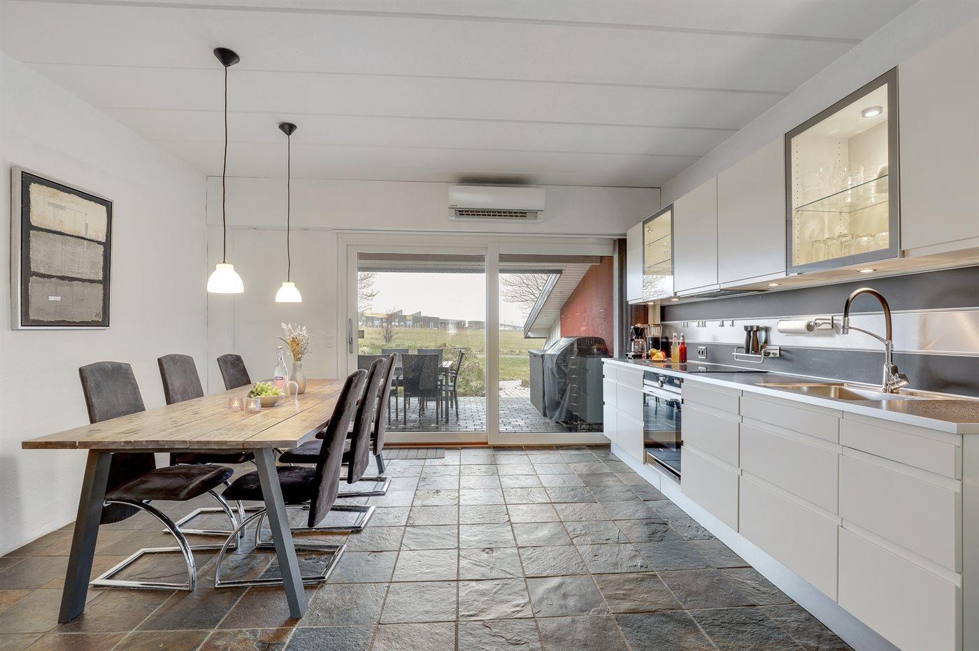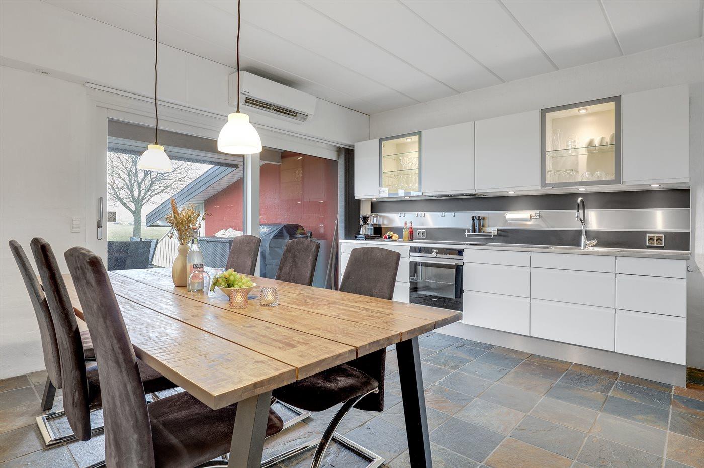 Køkkenet er udstyret med 1 køleskab. Der er 4 induktionskogeplader, varmluftovn, mikrobølgeovn samt opvaskemaskine.