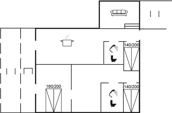Der er i alt 3 soveværelser. Sovepladserne fordeler sig på: 6 sovepladser i dobbeltsenge. Derudover er der 1 stk. barneseng.