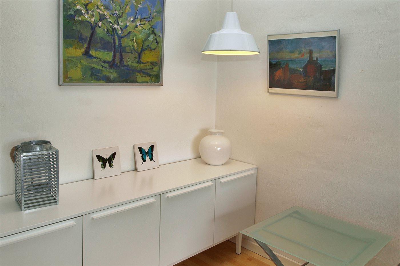 Denne pæne ferielejlighed finder I i en firlænget gård i udkanten af Aakirkeby - nær skov og Oplevelsescenteret NaturBornholm, som illustrerer Bornholms oprindelse for millioner af år siden. Lejlighedens åbne terrasse vender ud mod en fælles udendørs swimmingpool (16 x 10 x 0,7-1,8 m), som i perioden fra den 15/6 til 15/9 opvarmes vha. varmepumpe. Endvidere findes der et fællesareal med trampolin, sandkasse, gynger og fodboldmål. Bemærk, at I finder de 2 sovepladser på sovesofaen i opholdsstuen.