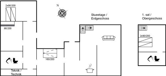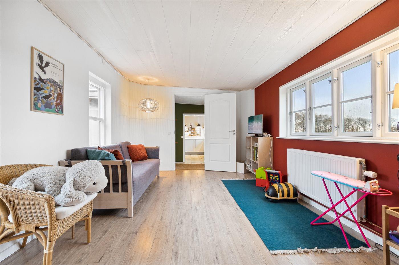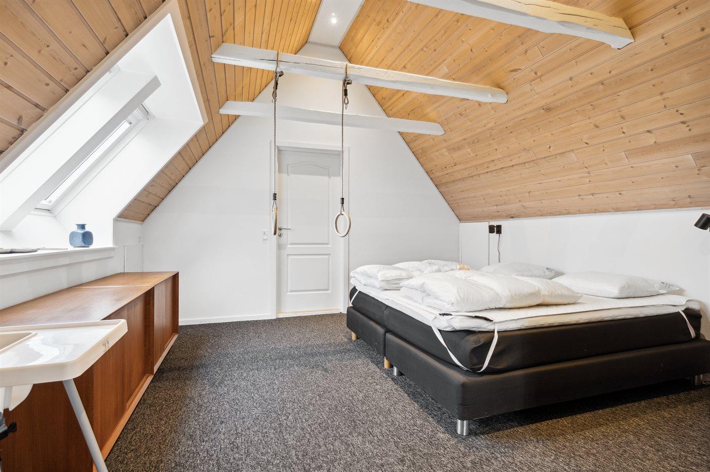I husets mellemgang finder man en dobbelt sovesofa – velegnet til en lille lur midt på dagen eller en god sovemulighed til natten. Vær opmærksom på, at husets soveværelser er placeret, således man snildt kan fordele sig hensigtsmæssigt, hvis man er flere voksne par.