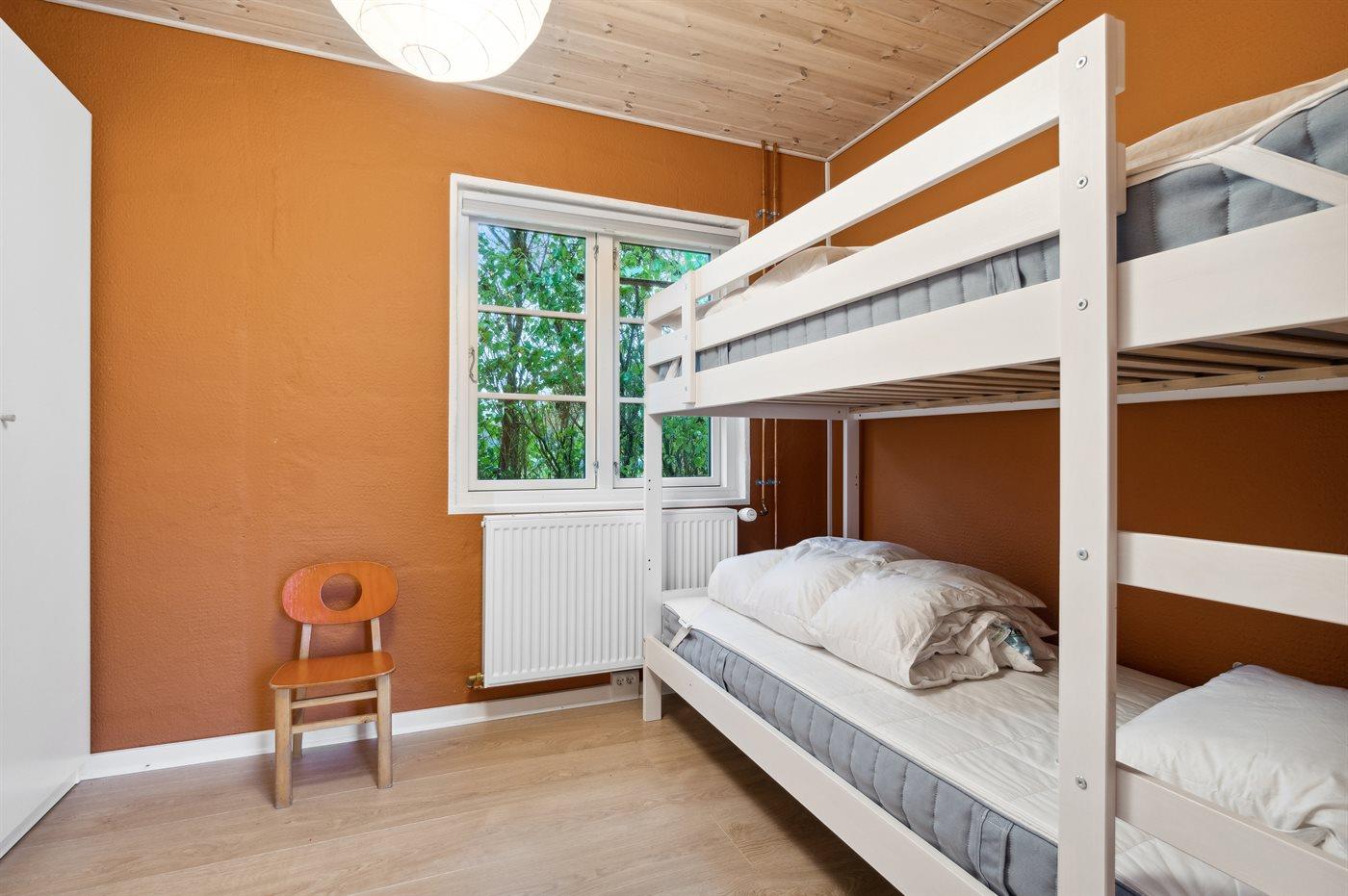 Der er i alt 3 soveværelser. Sovepladserne fordeler sig på: 4 sovepladser i dobbeltsenge. 2 sovepladser i køjeseng. 2 sovepladser i sovesofa (dobbelt). 2 af disse sovepladser befinder sig i en mellemgang. Derudover er der 1 stk. barneseng.