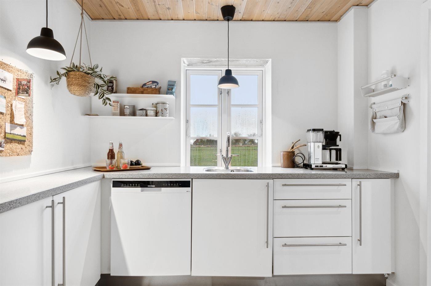 Køkkenet er udstyret med 2 køleskabe. Der er 4 induktionskogeplader, varmluftovn samt opvaskemaskine Der er gulvvarme i køkkenet.