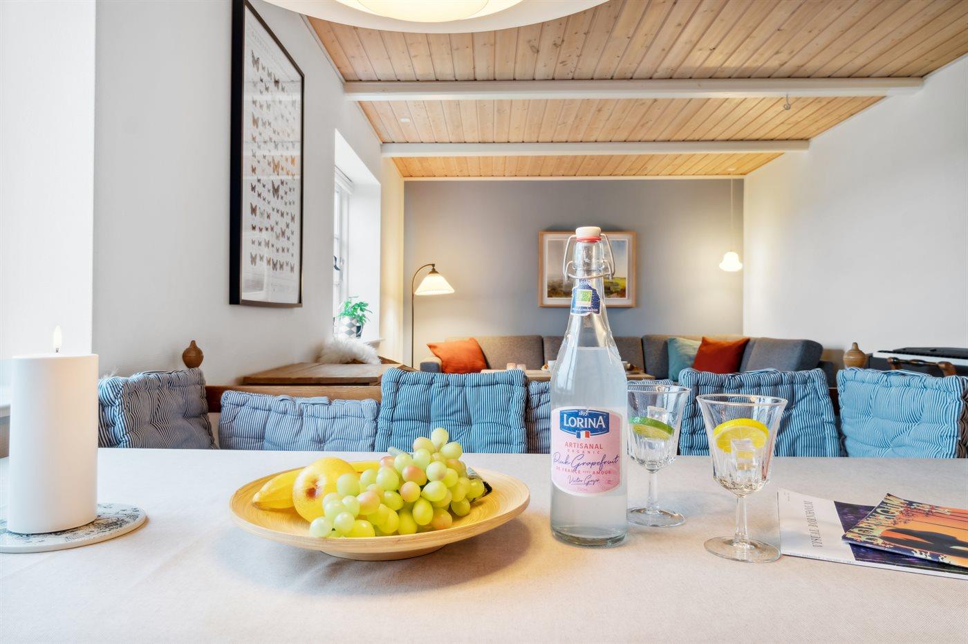 Her er der mulighed for at komme helt ned i tempo og finde ro, men der er også plads til masser af leg og hygge på gårdspladsen og i haven, som har flere rigtig hyggelige kroge. Huset rummer to badeværelser og stort køkken, hvor der er rig mulighed for at tilberede måltider med de mange, dejlige bornholmske produkter. Den store spise- og opholdsstue er husets centrale mødested, men også den lidt mindre men hyggelige stue med brændeovn og udsigt over området kan noget.