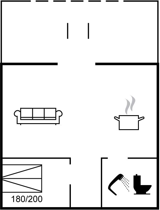 Der er i alt 1 soveværelse. Sovepladserne fordeler sig på: 2 sovepladser i dobbeltseng. 2 sovepladser på madrasser. 2 af disse sovepladser befinder sig på husets hems.