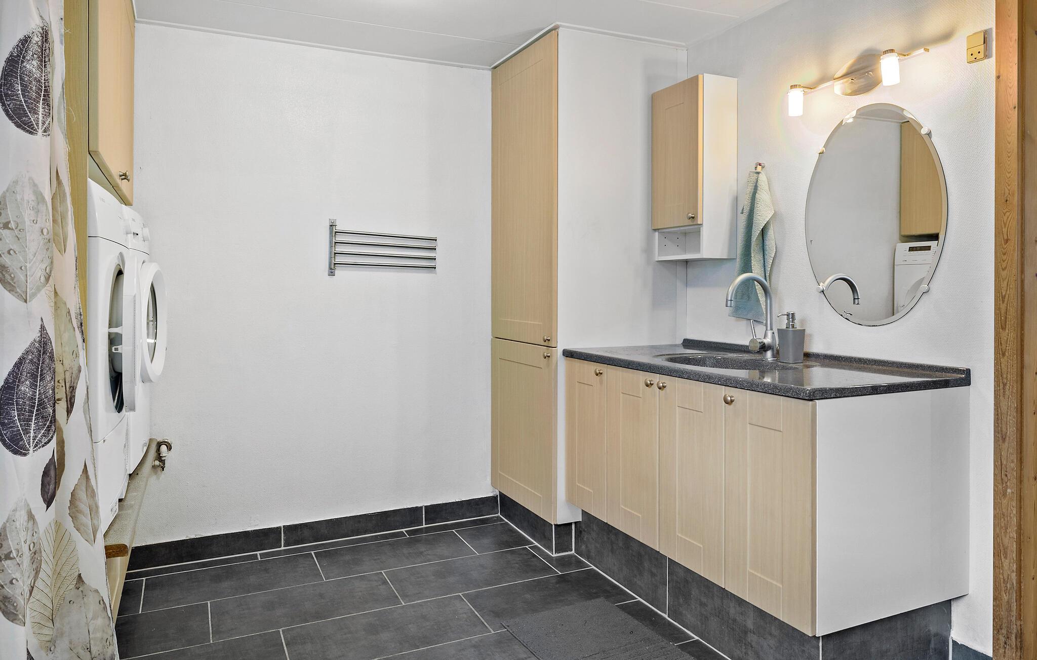 Dette skønne feriehus byder på en lys og hjemlig atmosfære, perfekt til en afslappende ferie. Fordelt over to etager finder I alt, hvad hjertet begærer: Den rummelige stue med mange sofaer lægger op til hyggelige aftener – hvad enten I ser en film eller nyder et glas vin i godt selskab. Store vinduer fylder rummet med naturligt lys, og den smagfulde indretning skaber en ægte oase af komfort. Den rummelige træterrasse er ideel til solrige morgenstunder, mens den idylliske have med træer og buske giver jer mulighed for at slappe af og nyde naturen.