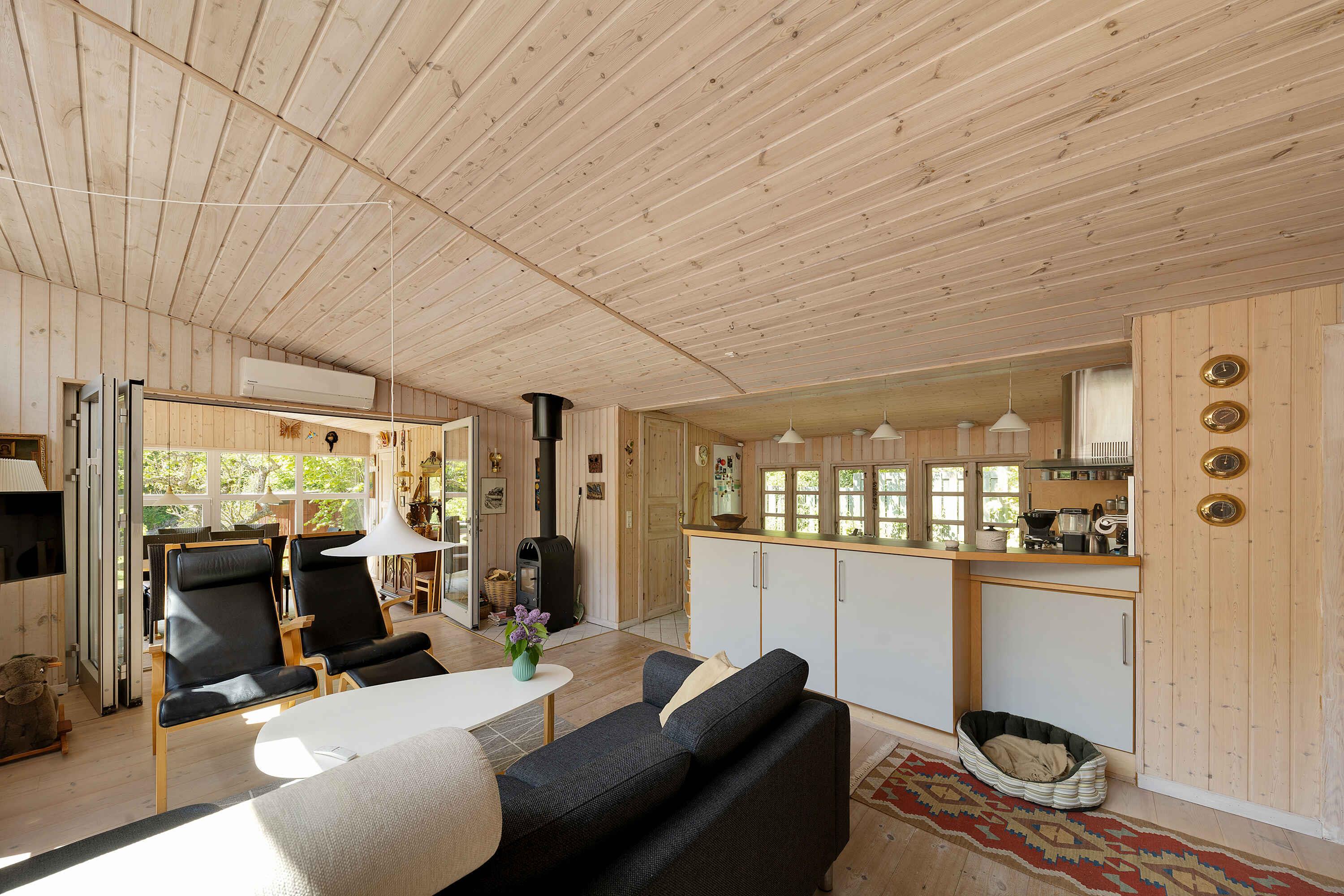 Velkommen til dette charmerende hus med en rødmalet facade, elegant kontrasteret af hvide vinduesrammer og døre samt et sort tag. En sand visuel fryd, der vækker nysgerrighed ved første øjekast. Og det bliver kun bedre derfra. Terrasserne, omhyggeligt arrangeret rundt om to sider af ejendommen, giver jer mulighed for at nyde både solen og stjernerne, især på den delvist overdækkede terrasse med et glastag. Forestil jer lyse aftener og øjeblikke under den glitrende stjernehimmel. Indenfor venter en rummelig opholdsstue, der byder naturen indenfor gennem store glasfacader. Hold øje med besøgende rådyr, der næsten ser ud til at hilse på. Et brusebadeværelse med en praktisk vaskemaskine er også til jeres rådighed, så I kan holde alt friskt og rent. Et velindrettet, åbent køkken bliver hurtigt hjertet i hjemmet, og den luksuriøse tilføjelse af en opvaskemaskine gør det hele endnu mere behageligt. I forlængelse af køkkenet finder I en hyggelig stue med en blød sofa, et fjernsyn til underholdning og selvfølgelig en brændeovn, der skaber den perfekte atmosfære. Men lad os ikke glemme, hvor dette skønne hus er placeret. Omgivet af en privat grund, kan I nyde en afslappende atmosfære uden nysgerrige blikke. Huset er også i gåafstand fra den fortryllende Boderne Strand, der frister med forfriskende svømmeture og solrige dage. Og det stopper ikke her. Huset er strategisk placeret i nærheden af Aakirkeby, hvor I kan finde alt, hvad I behøver i de lokale butikker. Bornholms skatte er også let tilgængelige, lige fra historiske seværdigheder til naturskønne vidundere. Tag på opdagelse og lad jer forføre af alt, denne fantastiske ø har at byde på. Obs, udlejes ikke til erhversmæssigt brug.