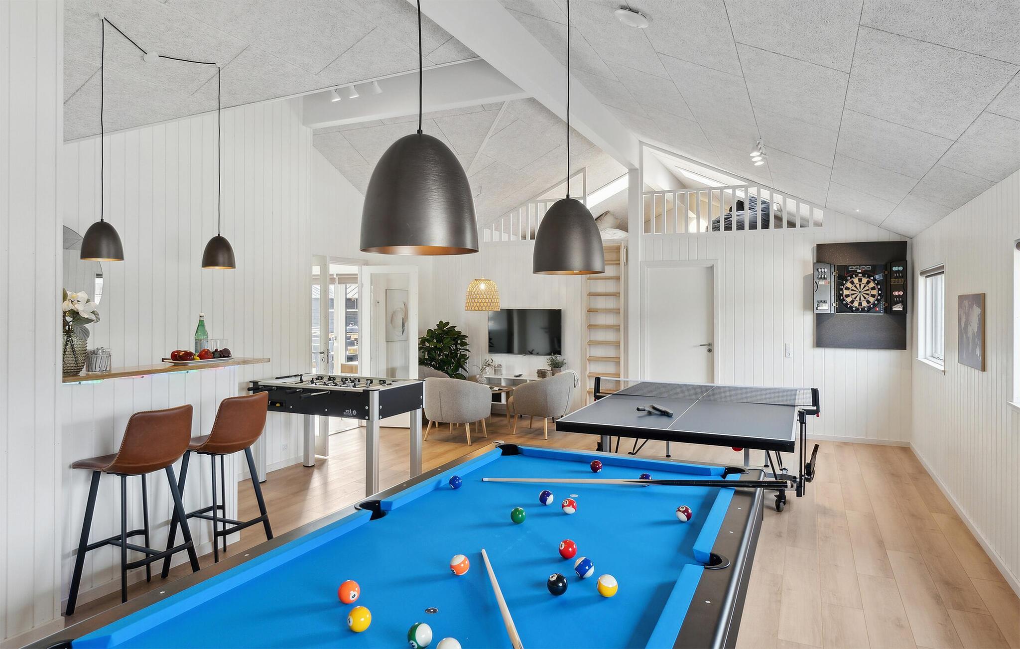 Velkommen til dette komfortable og rummelige hus, som byder jer velkommen i kort afstand fra stranden og byder på alt, hvad I skal bruge til en pause i en attraktiv atmosfære. Poolen lover badehygge for store og små uanset vejret. Glæd jer til hyggelige aftener, når I vender tilbage fra jeres aktiviteter, slapper af i saunaen, laver mad sammen, gør jer godt tilpas ved pejsen efter middagen og ser en fodboldkamp på storskærm med den interne projektor.