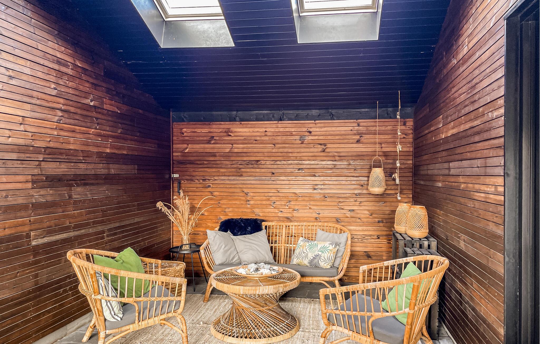 Find sammen omkring spisebordet og nyd udsigten til haven, mens I hygger jer med dagens måltider eller brætspil. Den åbne terrasse er et oplagt sted at sætte sig med en god bog, solbade eller dække op til en grillmiddag. Den overdækkede terrasse giver mulighed for at sidde udenfor i al slags vejr.