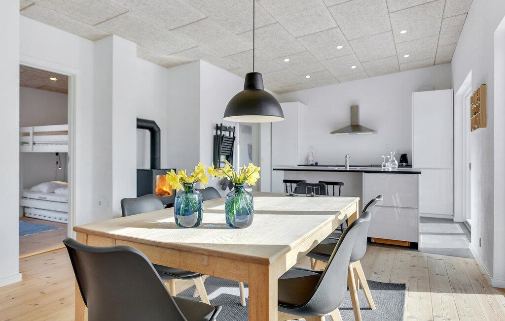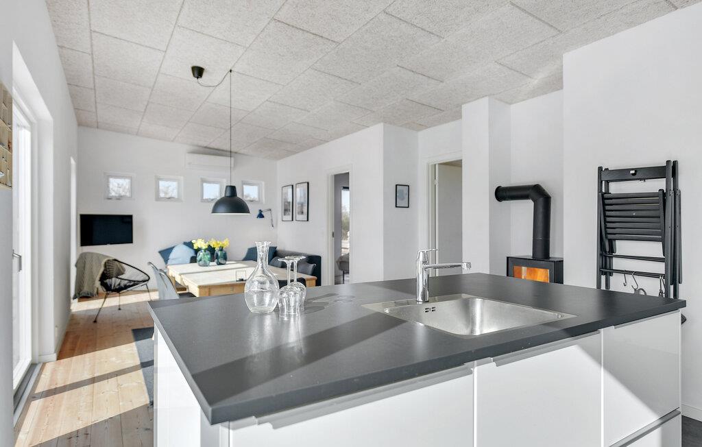 Velkommen til Årø, hvor dette moderne træhus giver jer alt, I behøver til en vidunderlig ferie med den udvidede familie på tværs af generationerne. Ud over soveværelserne i hovedhuset er der også soveværelse i annekset, så I kan se frem til et ophold som en større flok, uden I behøver gøre køb på privatlivets fred eller den gode komfort. Huset er flot indrettet med åben planløsning og store gulv til loft-vinduer, der giver det indre et lyst og luftigt udtryk og en fremragende udsigt til omgivelserne. Hvis vinden bider lidt, kan I tænde op i brændeovnen, der giver varme og det helt rigtige lydtapet til aftensmaden, brætspillene eller en god film i sofaen.