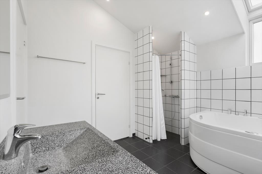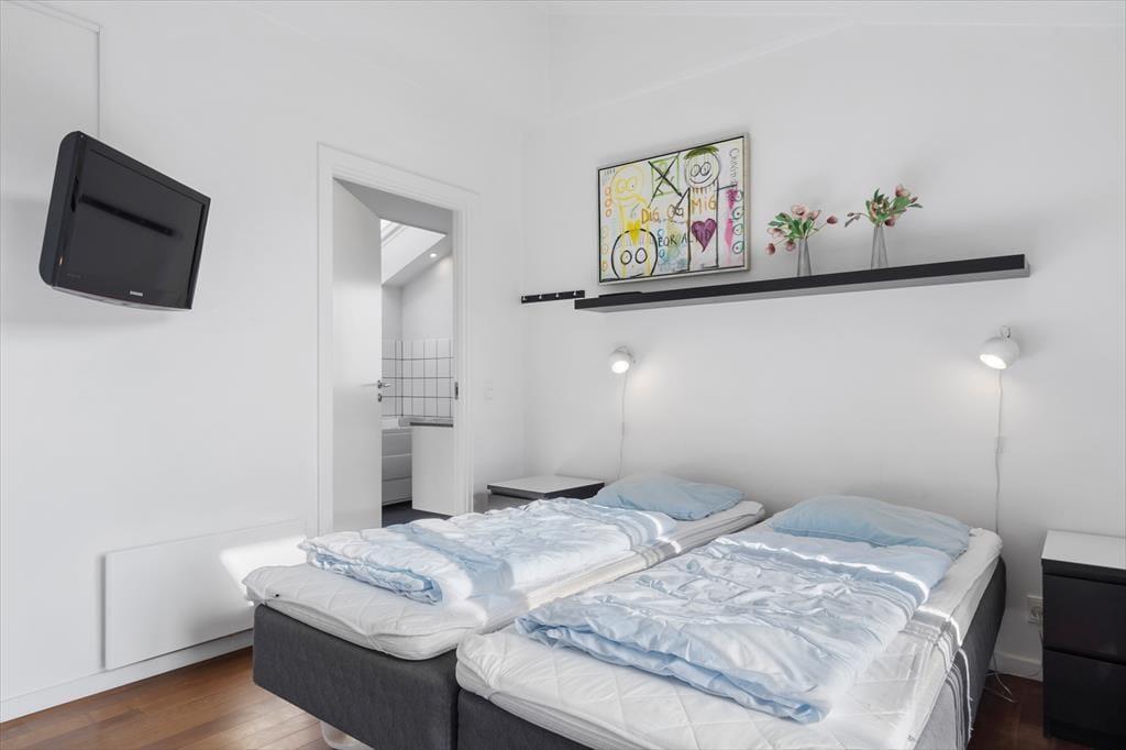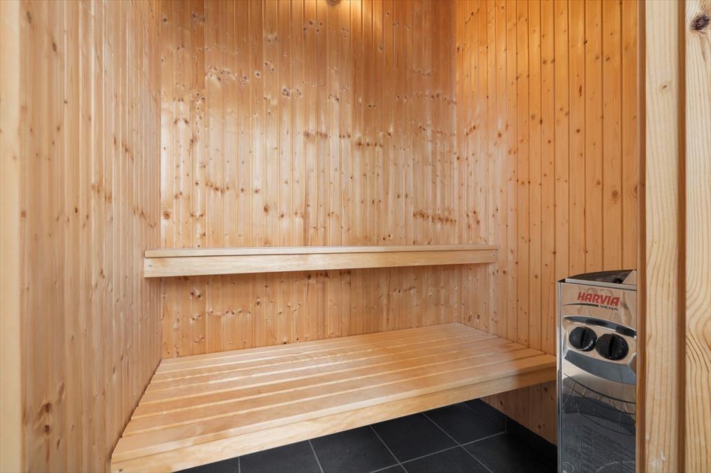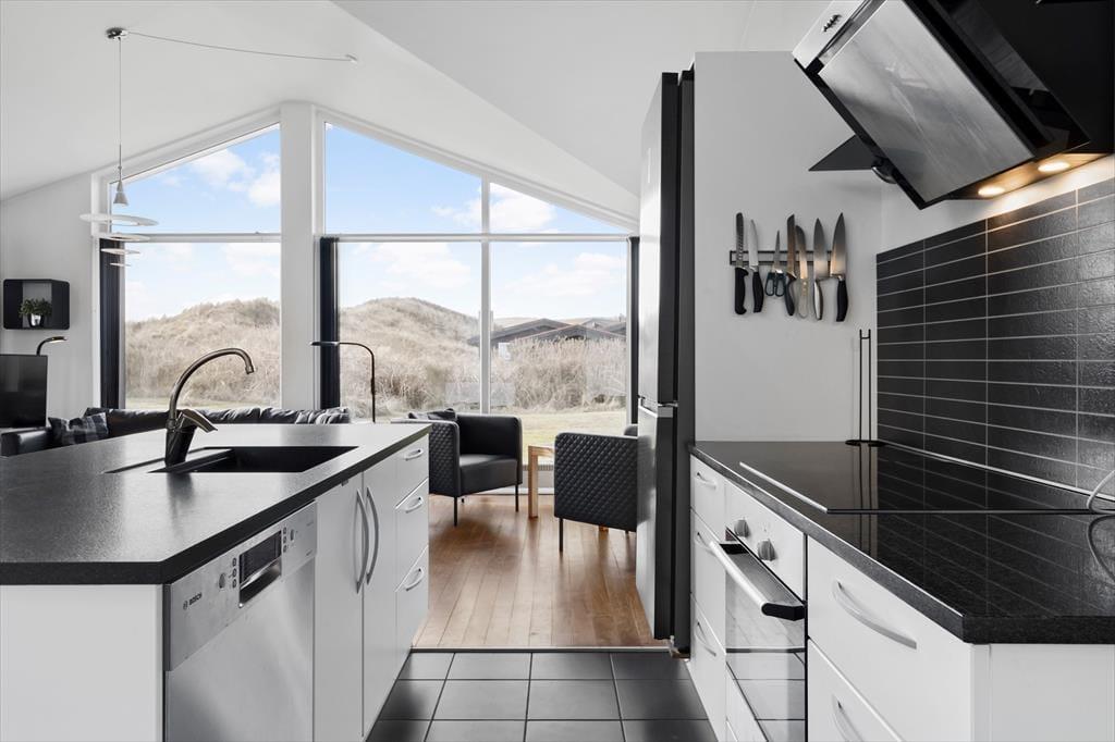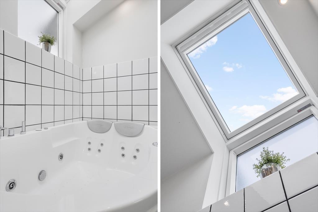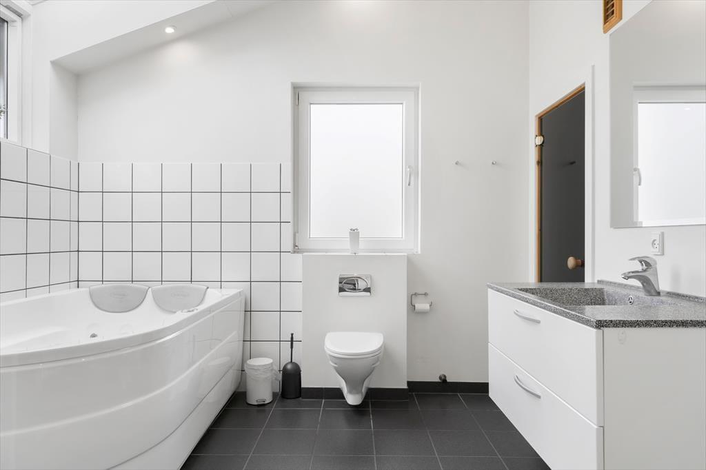 Sommerhusets lyse atmosfære, det pæne møblement og det veludstyrede åbne køkken er nogle af de kvaliteter, der først springer i øjnene. Måske vil du også bide mærke i, at der er indbygningspejs i stuen, så du kan skrue op for både varmen og hyggestemningen, når det er tid til brætspil, avislæsning i sofaen eller et velduftende aftensmåltid ved spisebordet. Spabadet og saunaen, der er installeret på det største badeværelse, giver dig mulighed for at fylde dagene med wellness. I det hele taget er det værd at bemærke, at alle tre soveværelser har eget badeværelse – så hvis du holder ferie med gode venner, eller hvis bedsteforældrene ønsker at få lidt privatliv, kan det sagtens lade sig gøre.