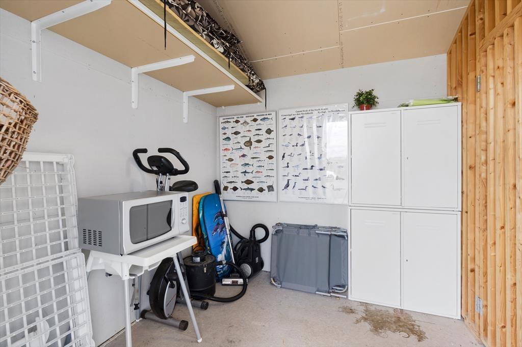 Hvis vejret indbyder til, at det meste af ferien foregår ude i det fri, vil du garanteret blive glad for de gode terrasser og den dejlige græsplæne, der breder sig på grunden. De yngste feriegæster kan hygge sig med at gynge og lege i sandkassen, og hvis I alle vil deltage i de fysiske udfoldelser, kan I spille bold eller havespil i det grønne. Foretrækker du at slappe af i en god havestol, er der både åbne og overdækkede terrasseområder at vælge imellem, så mon ikke du finder den perfekte krog at holde siesta i.