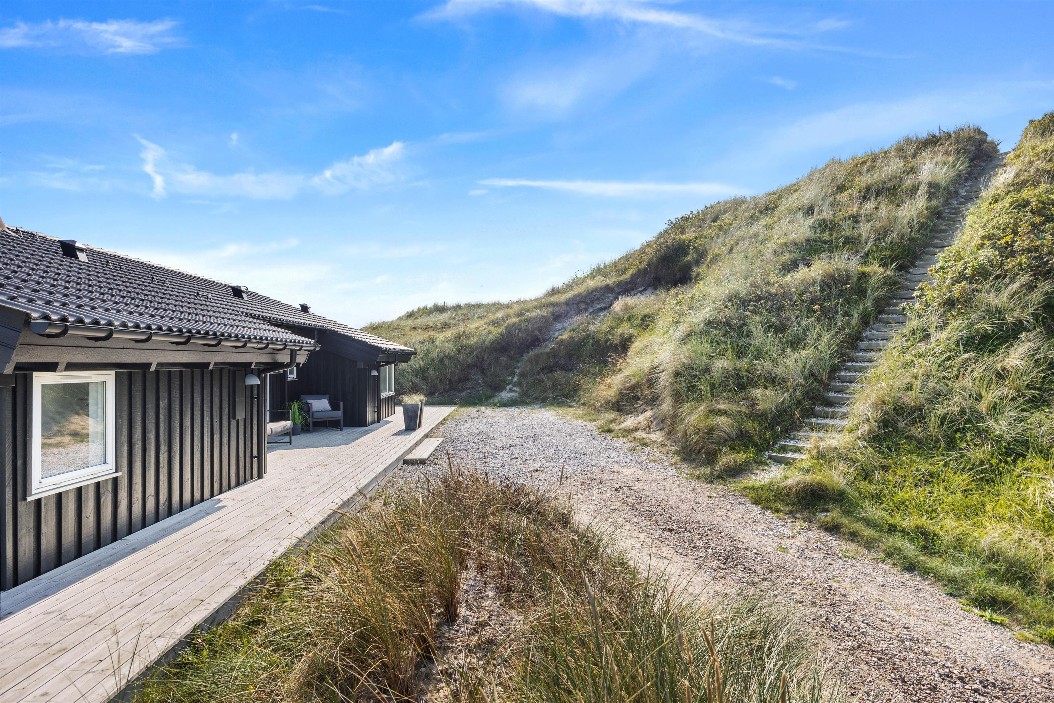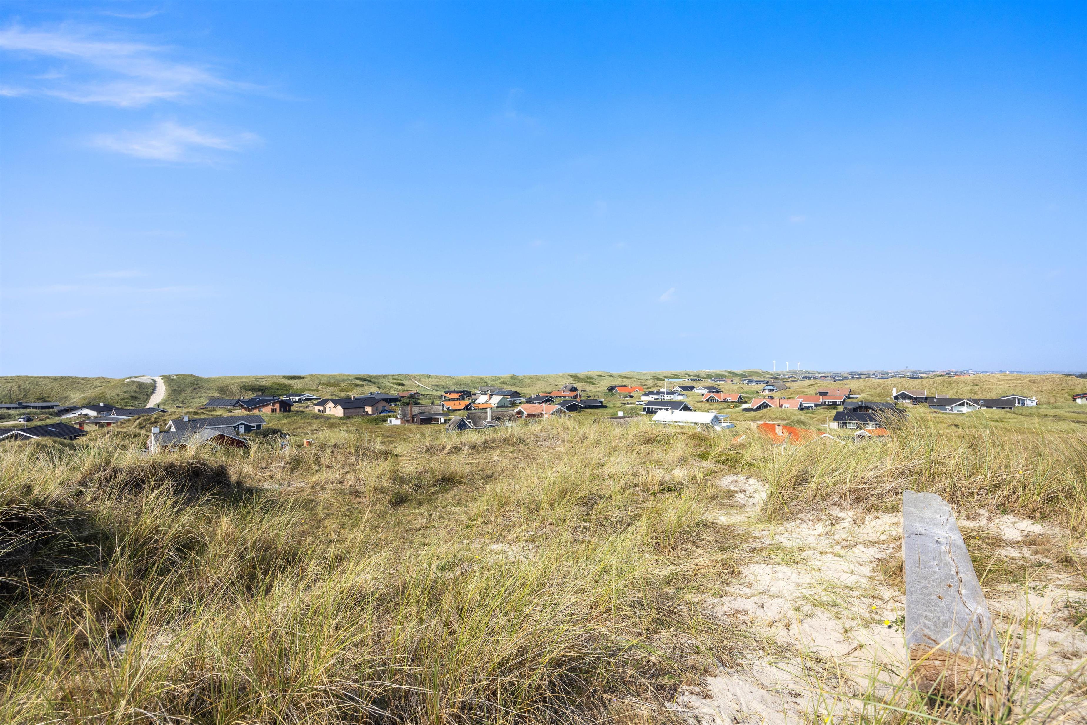 Feriehuset er placeret højt på en kuperet klitgrund i det attraktive Årgab. Området er kendt for den unikke placering tæt på Hvide Sande, hvor der er kort afstand mellem Vesterhavet mod vest og Ringkøbing Fjord mod øst.