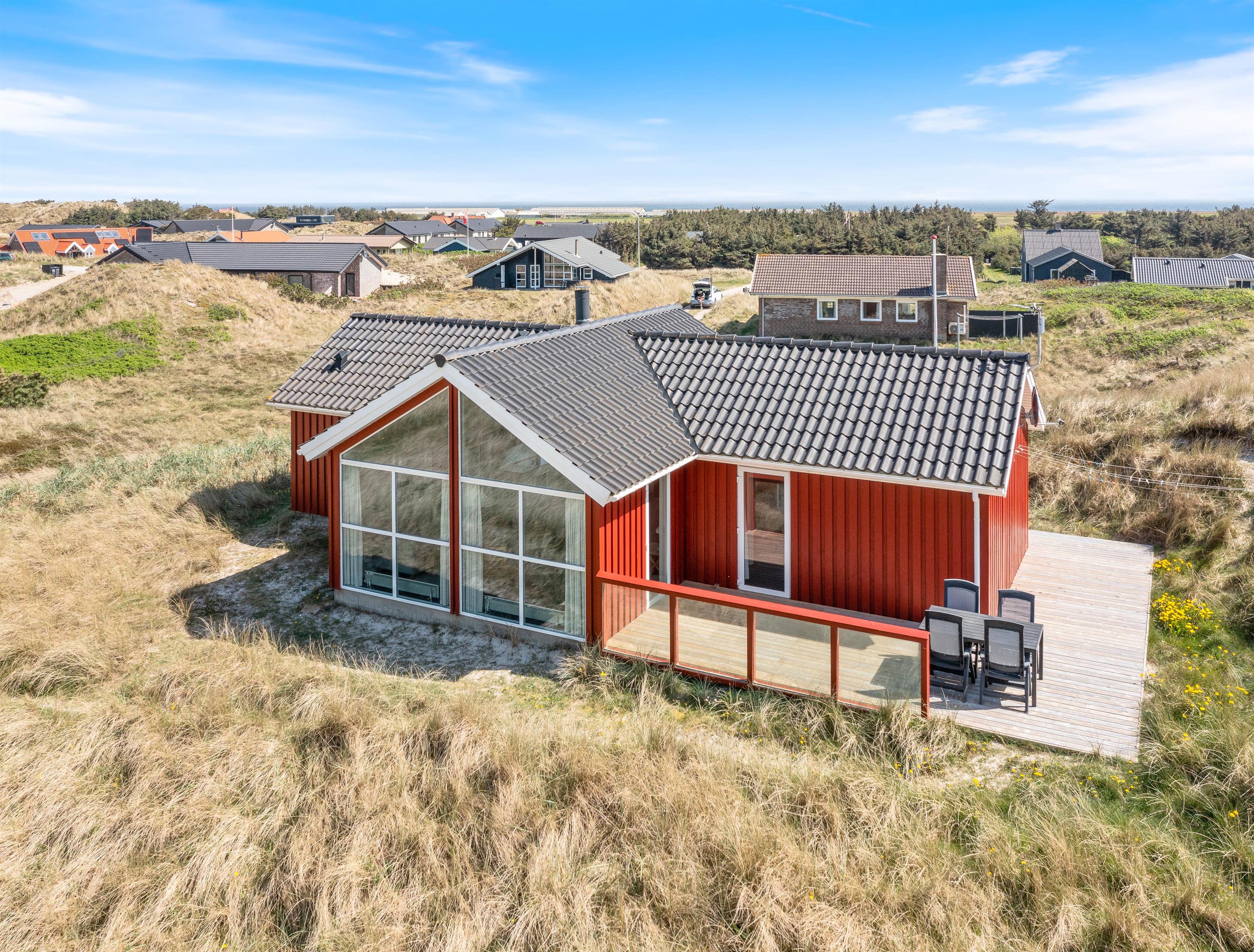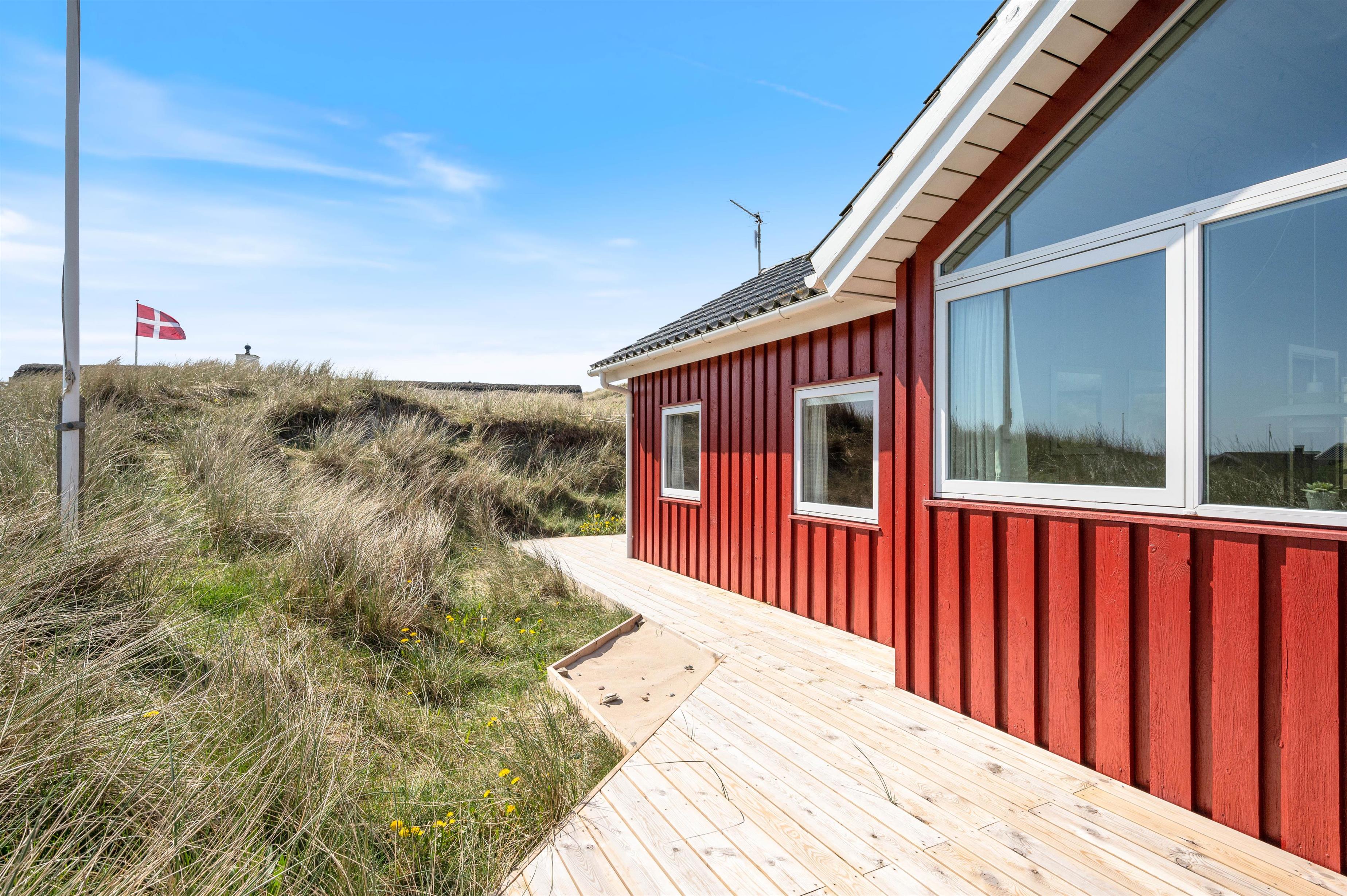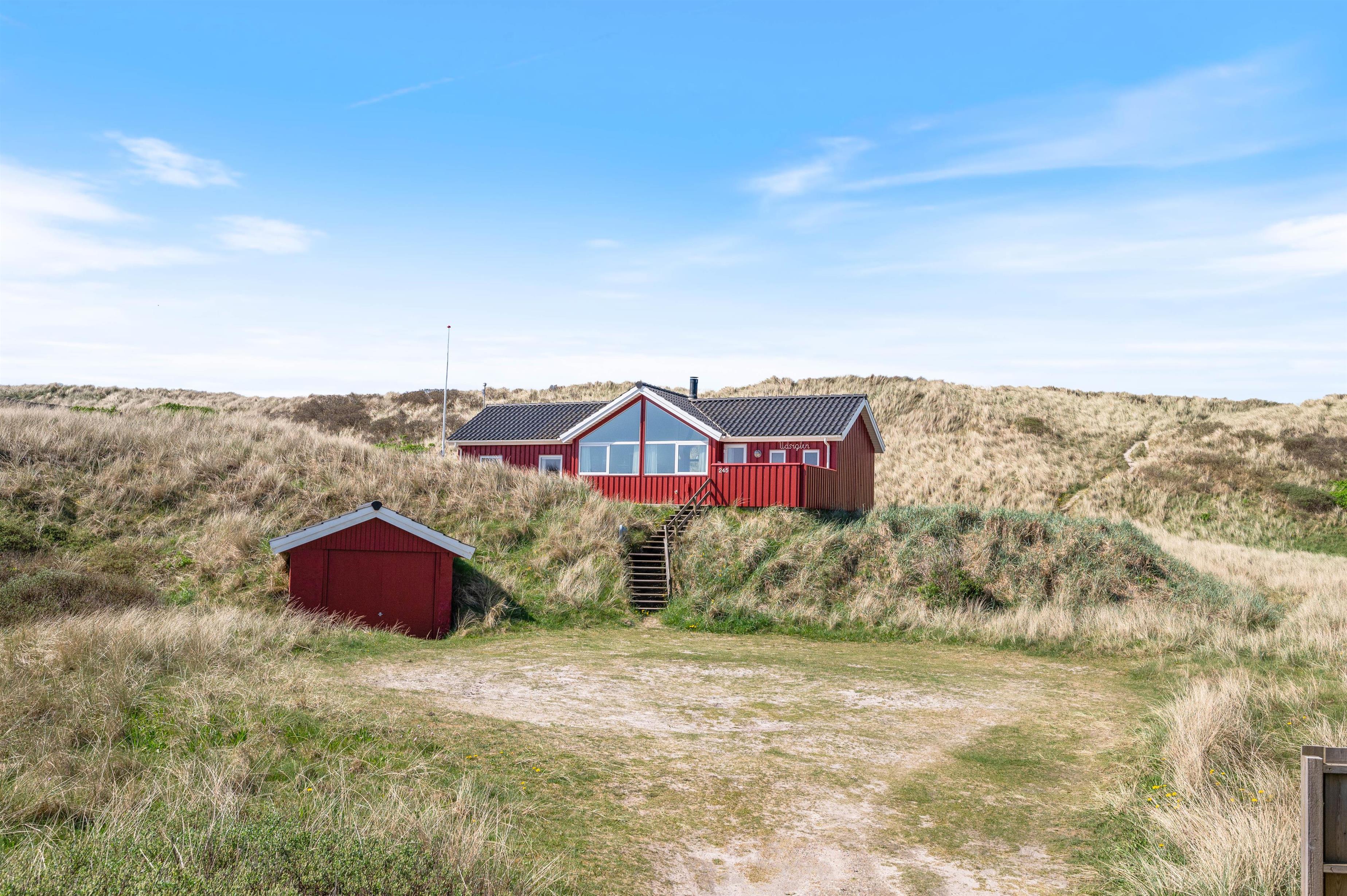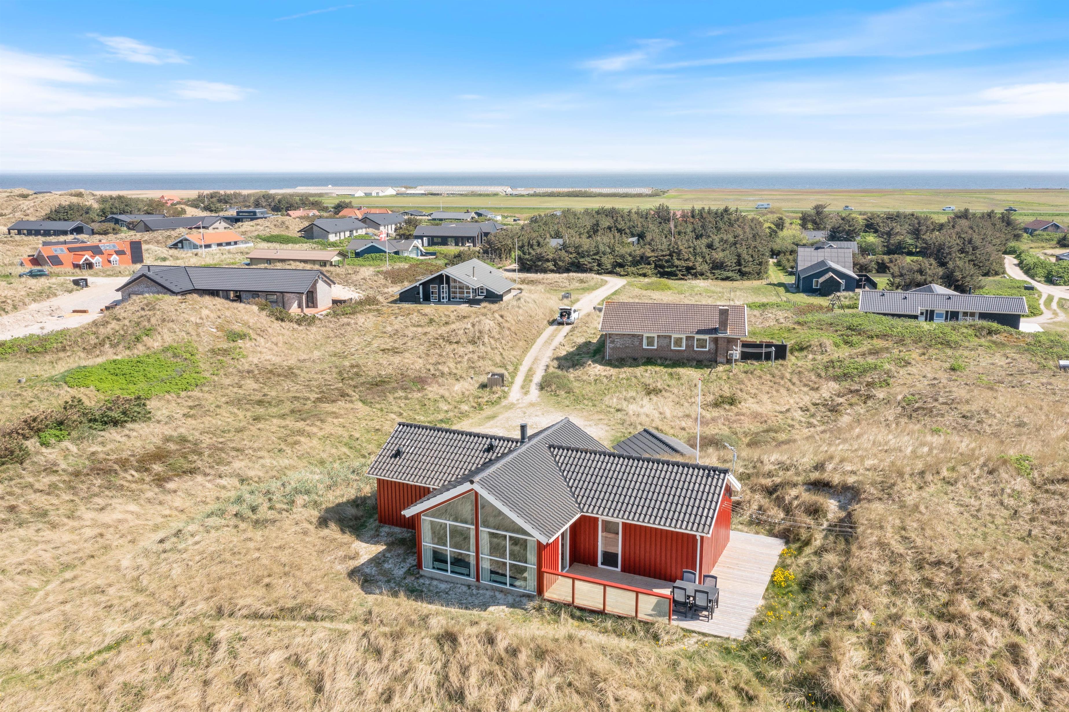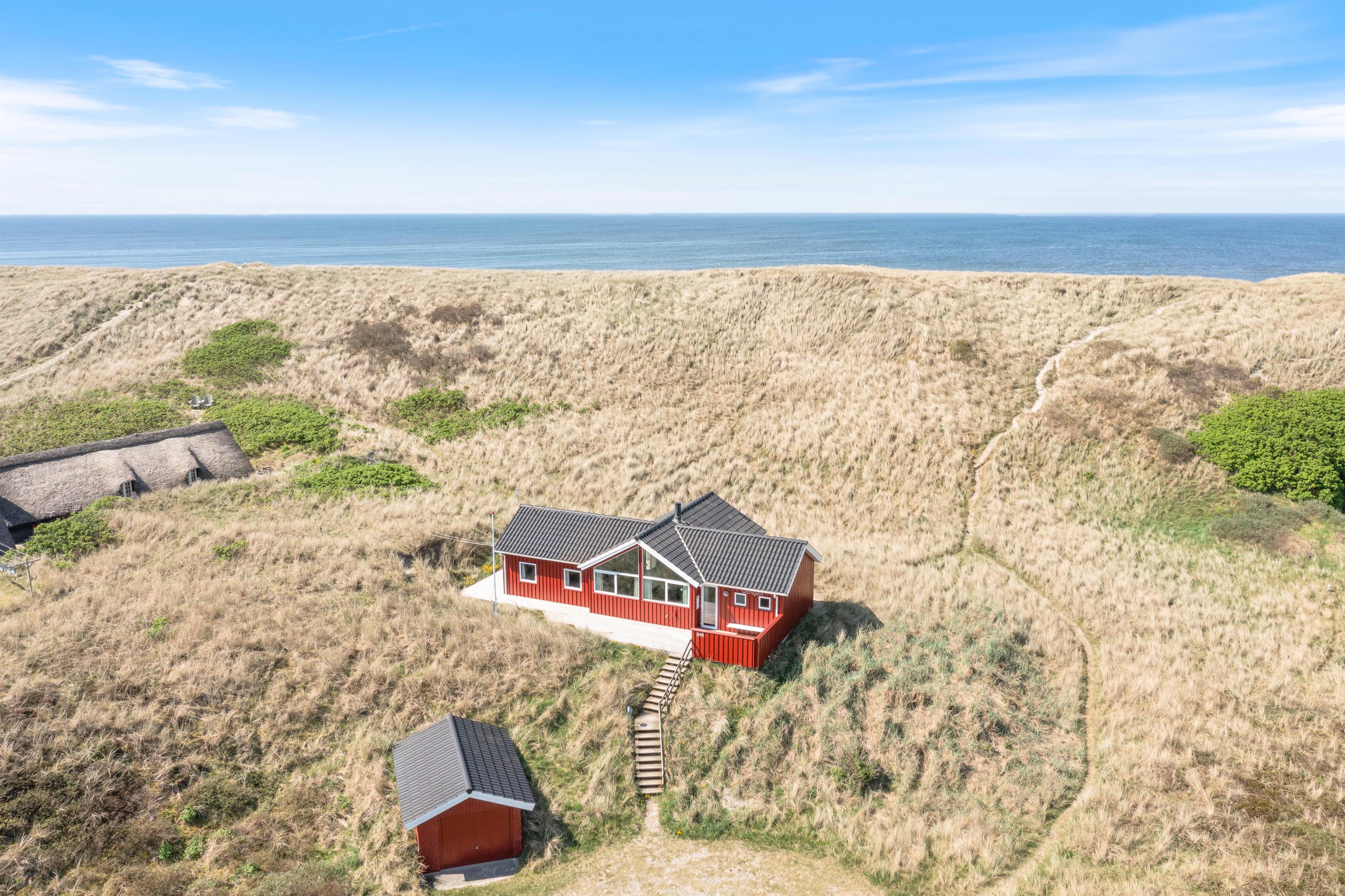 Skønt, flot og højtbeliggende sommerhus ved 1. klitrække i Årgab. Beliggenheden giver en helt unik mulighed for at bo helt tæt på Vesterhavet, og samtidig tæt på Ringkøbing Fjord. Og der er en enestående udsigt over det smukke landskab fra næsten alle rum, som helt sikkert skal opleves.
