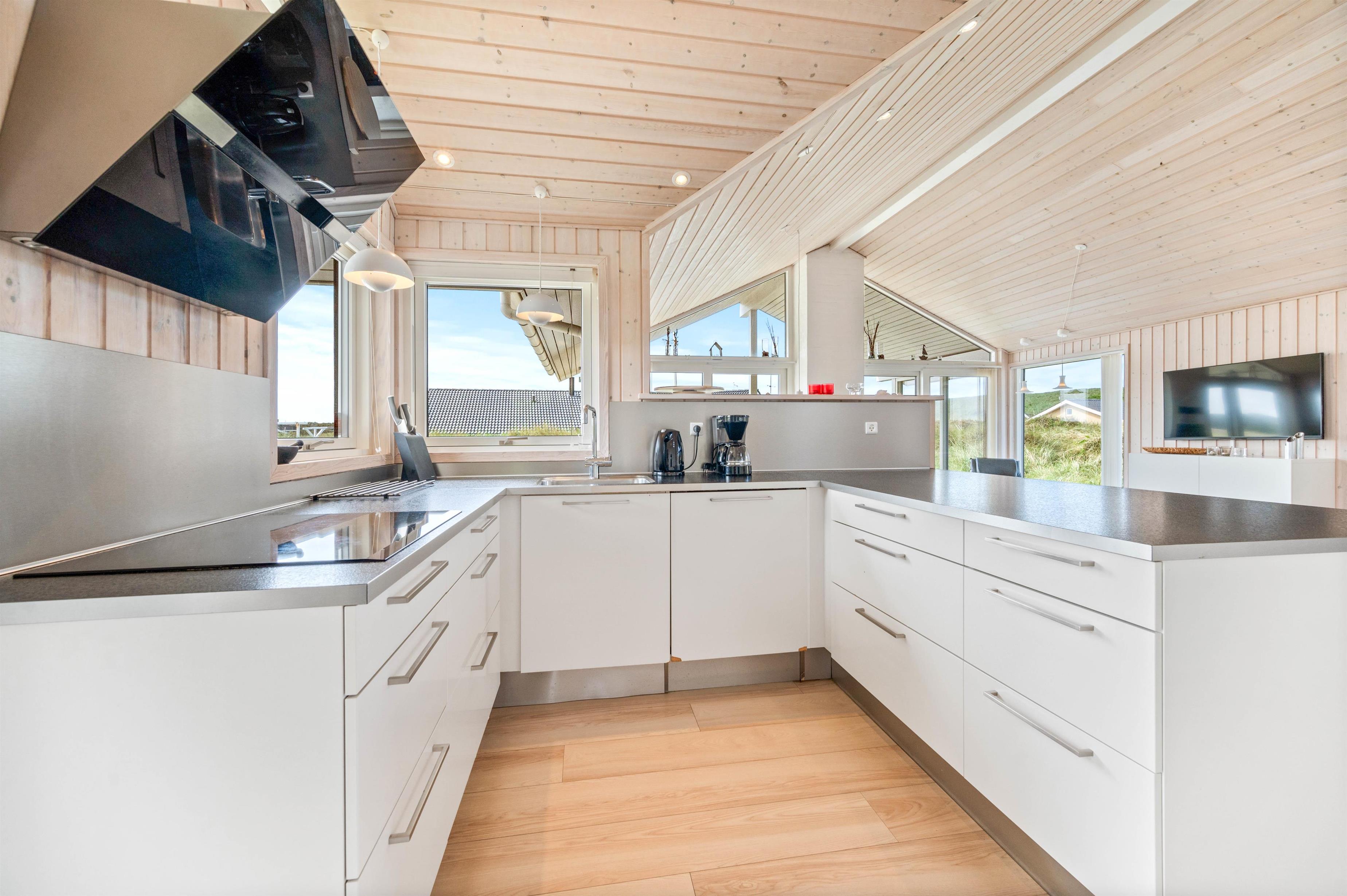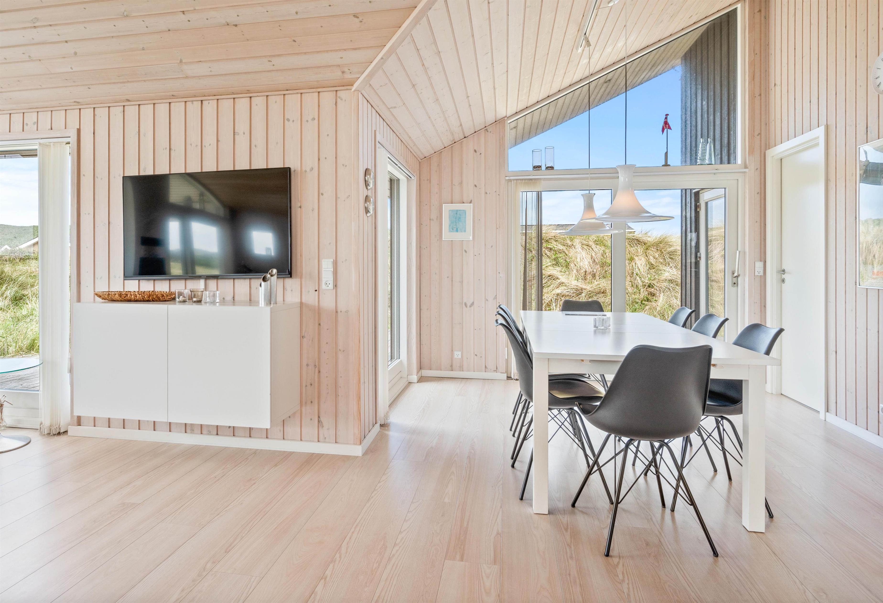 Et skønt feriehus bygget i 2014, med en flot beliggenhed på en højt placeret naturgrund på Tingodden. Huset har en flot og god indretning. Det er bygget i gode materialer og har et dejligt lysindfald. Fra hus og grund er der en god udsigt over klitlandskabet og kun 150 m. til Vesterhavet.