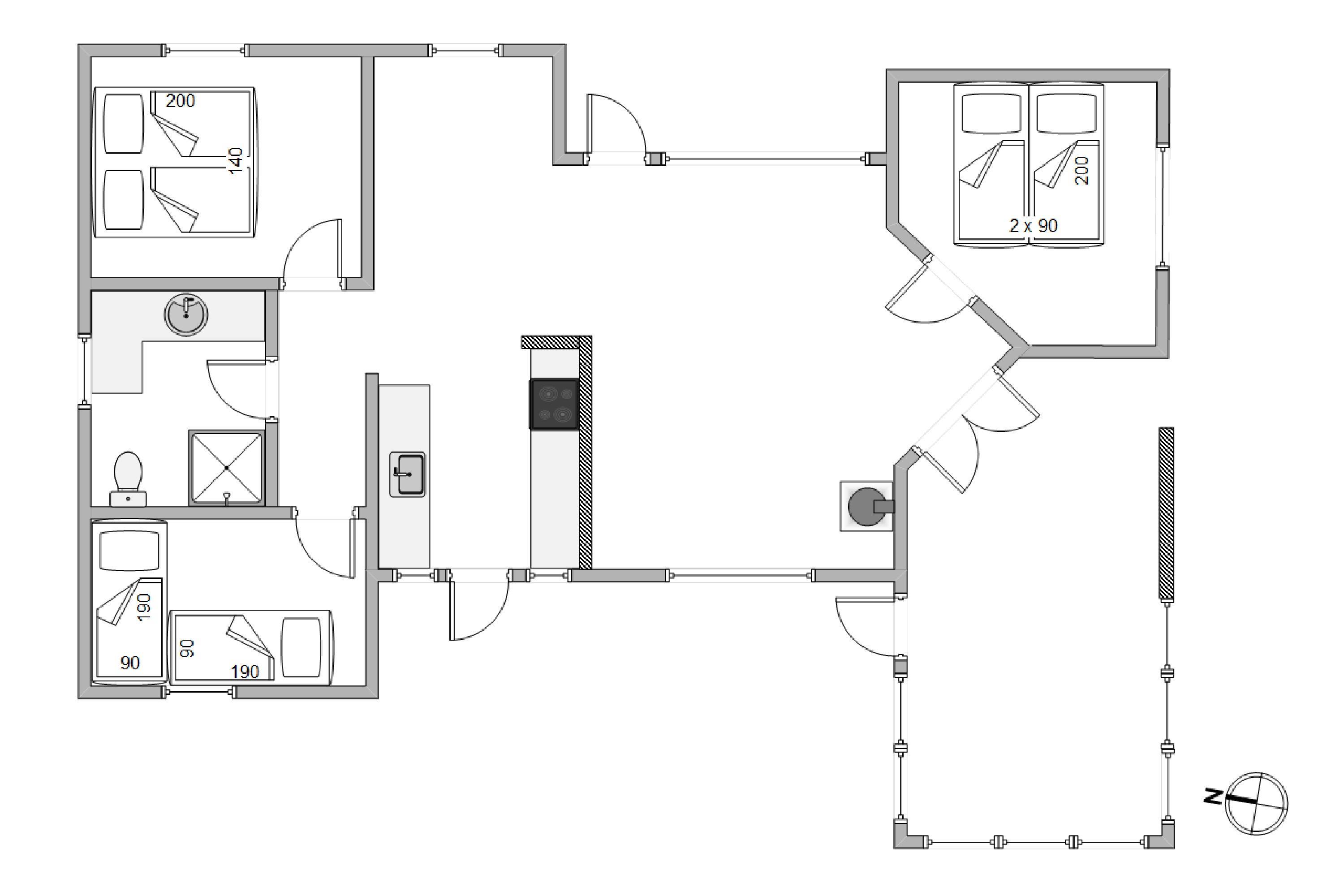 I sommerhuset er der et lyst og pænt indrettet badeværelse med gulvvarme, som sikrer jer varme fødder i ferien. Sommerhuset har som sagt plads til 6 personer, som kan fordele sig på i alt 3 soveværelser. Herunder er der 2 værelser med dobbeltsenge og 1 værelse med 2 enkeltsenge. Her kan I sikre jer en rolig nat, hvor I kan få ladet batterierne op til endnu en feriedag.
