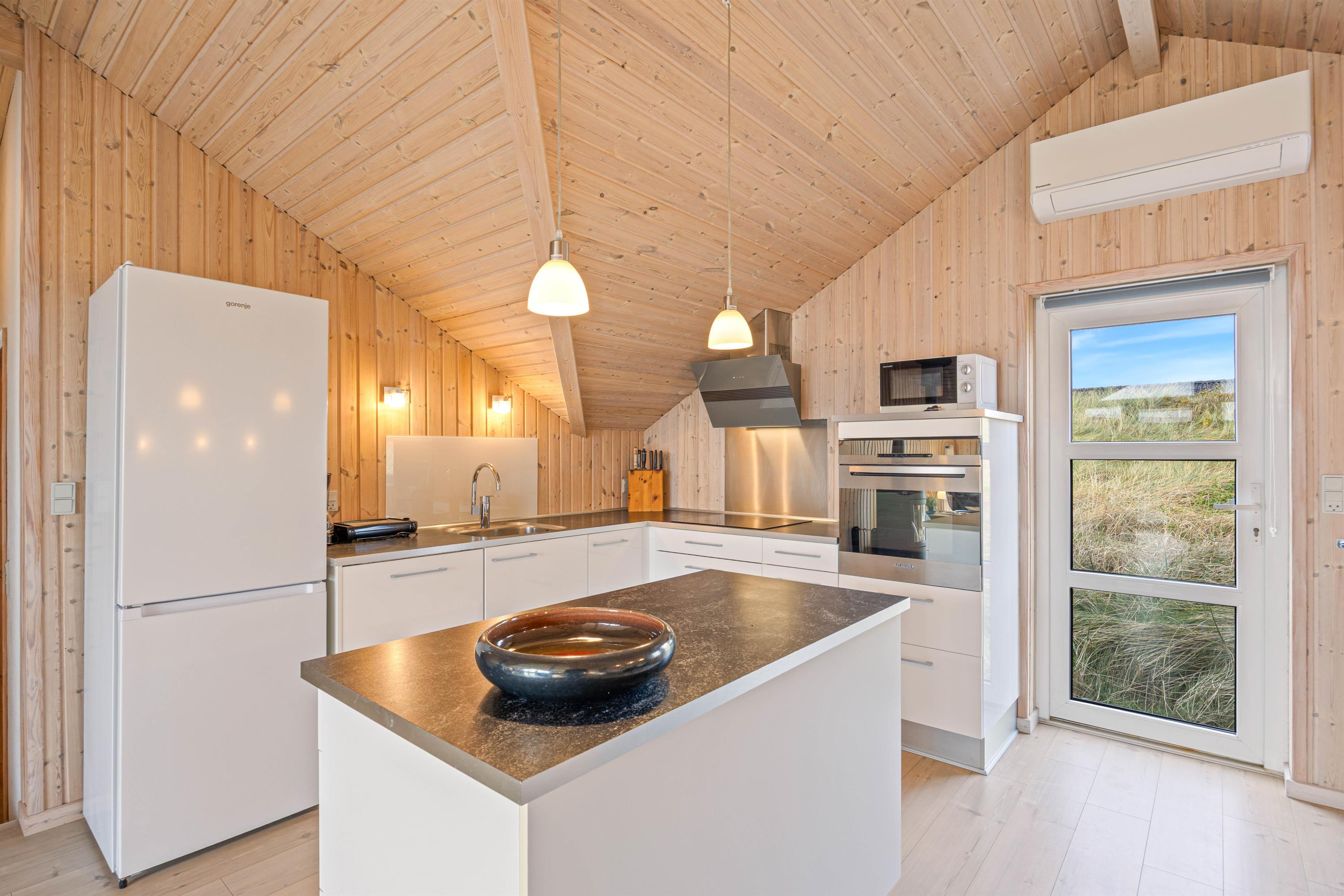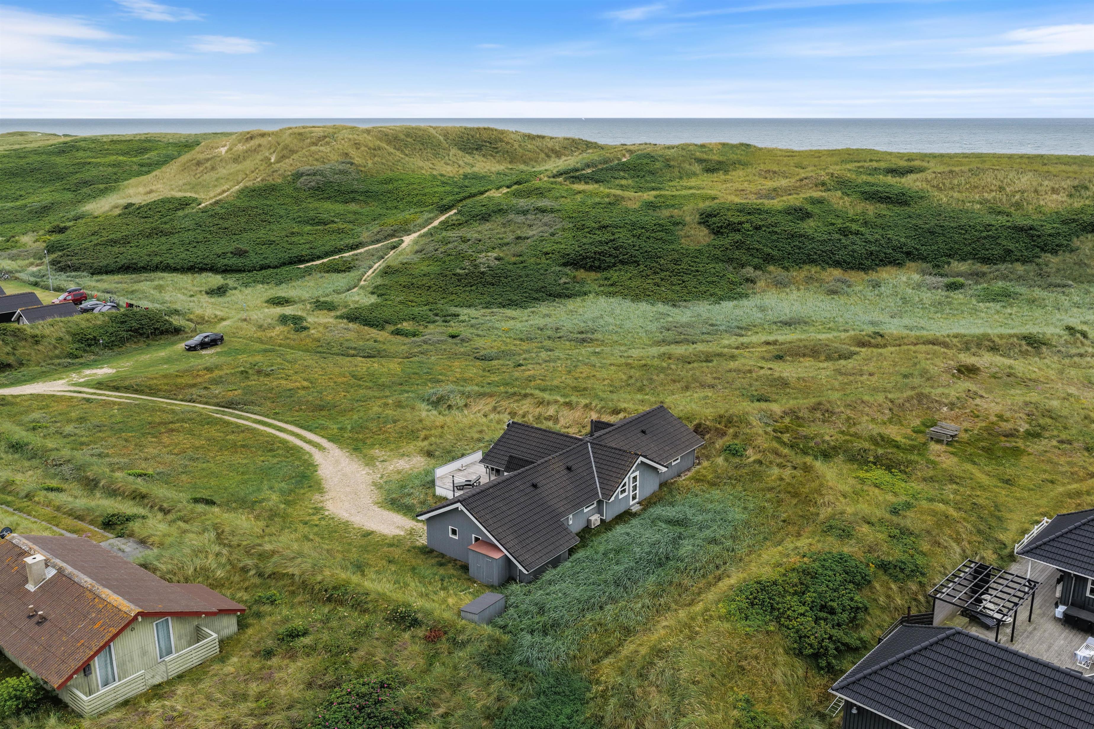 Med sin fremragende beliggenhed i første række bag klitterne, er dette feriehus et ideelt udgangspunkt for en ferie med stranden lige i baghaven. På terrassen kan I nyde solen hele dagen, mens I har en fantastisk udsigt til klitterne omkring jer.