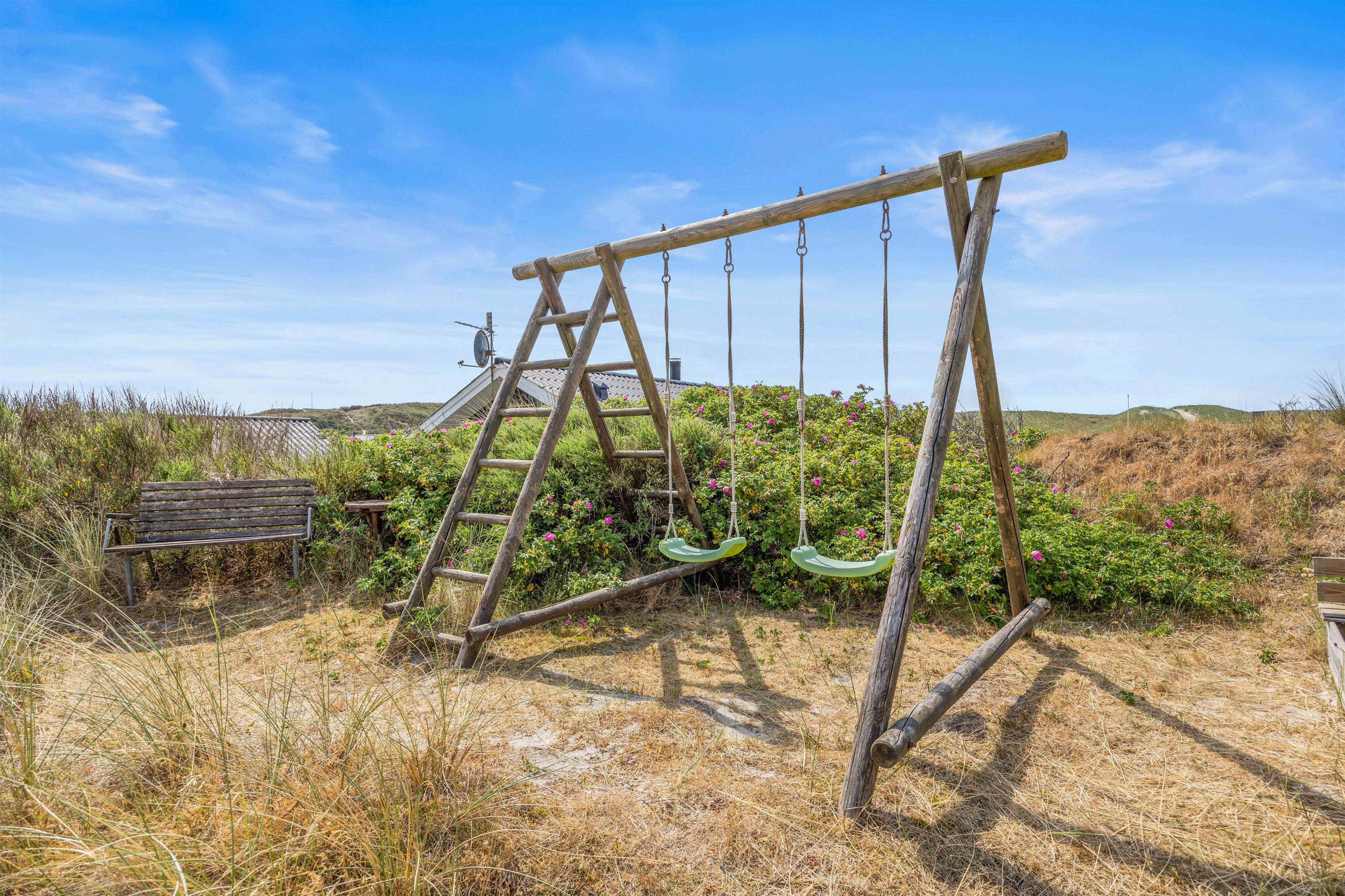 Tæt på terrassen har du både gynger og sandkasse til børnene, så de kan lege lige i nærheden, mens du slapper af og nyder ferien.