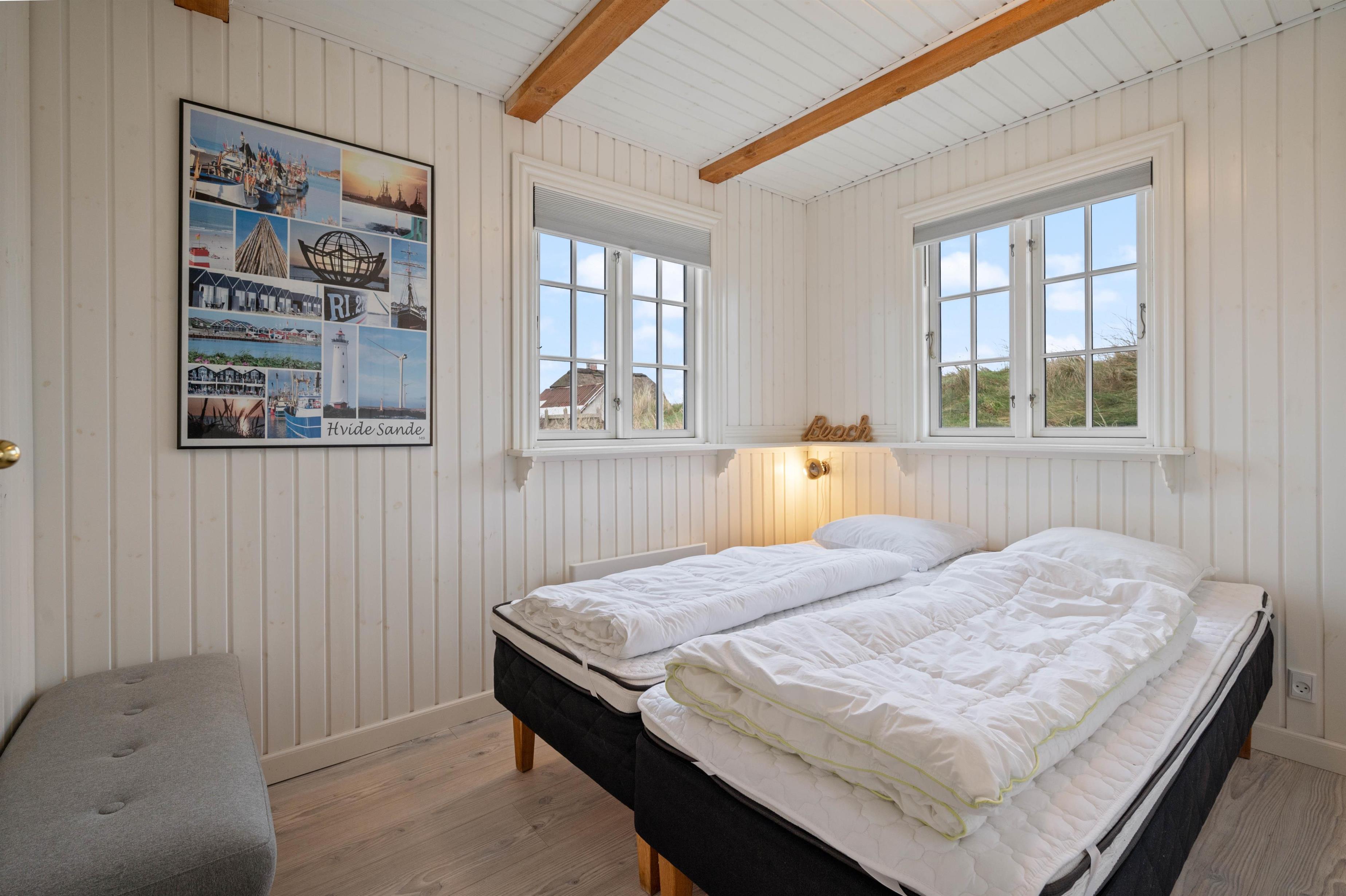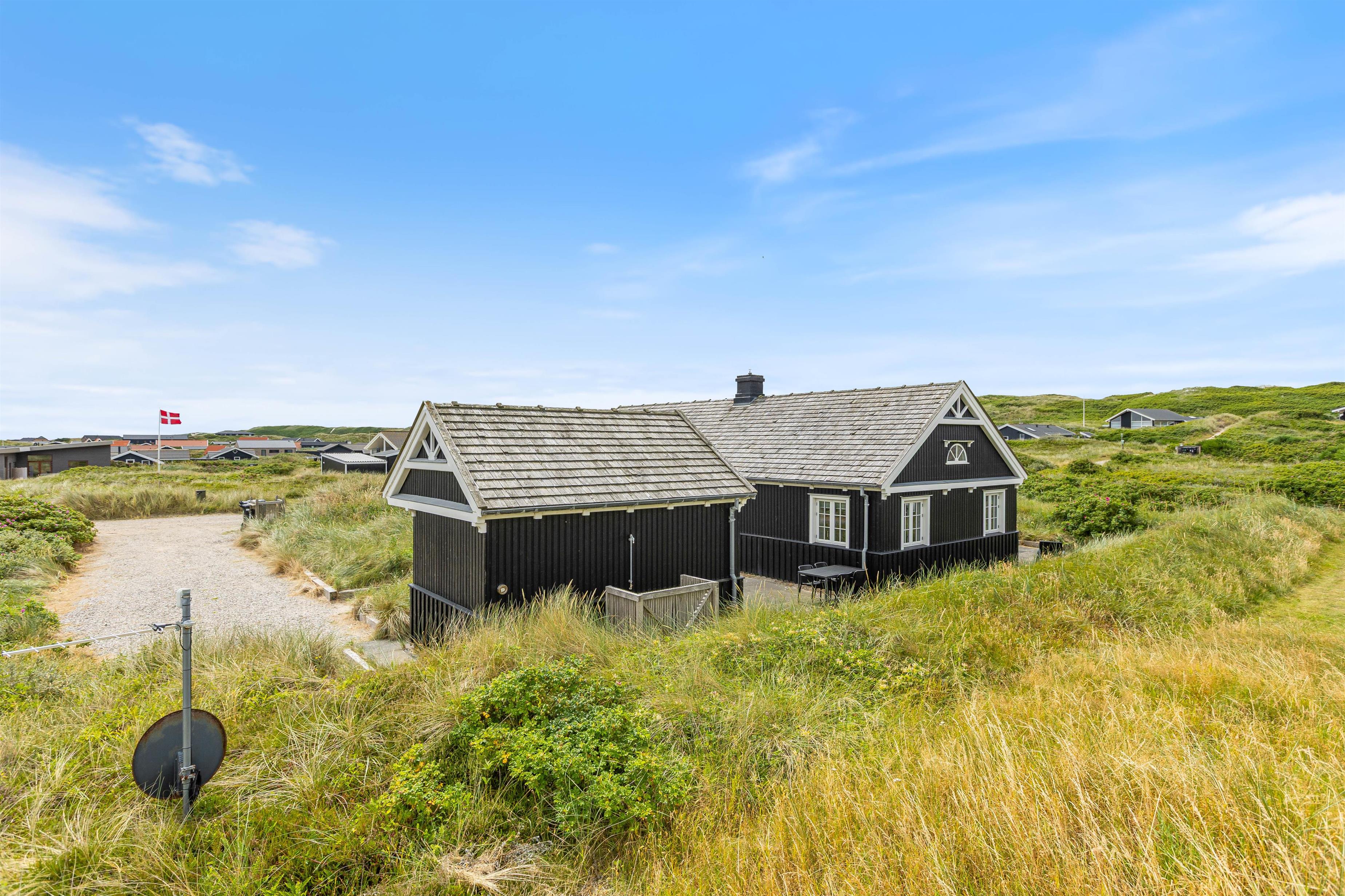 Dette feriehus har en helt fantastisk beliggenhed, og en helt fantastisk skøn og smagfuld indretning. En af Vesterhavets bedste sandstrande, gode områder for surfing samt havnebyen, Hvide Sande så tæt på, at du bare kan gå eller cykle dertil.