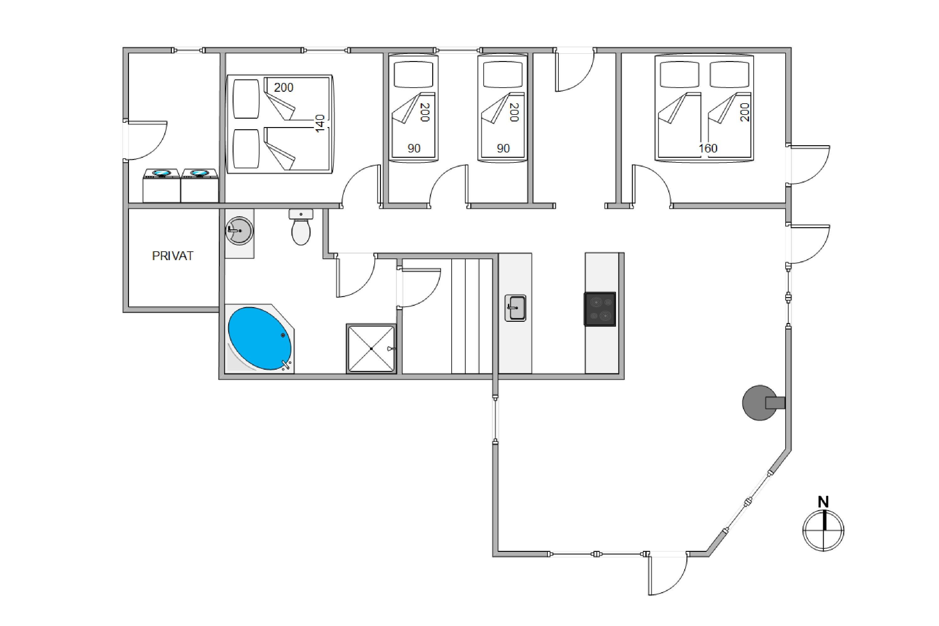 Sommerhusets 6 sovepladser fordeler sig på 3 soveværelser, hvor I kan finde ro efter en skøn feriedag. Derudover finder I 1 badeværelse med gulvvarme, så I ikke kommer til at fryse tæerne på de kolde dage.