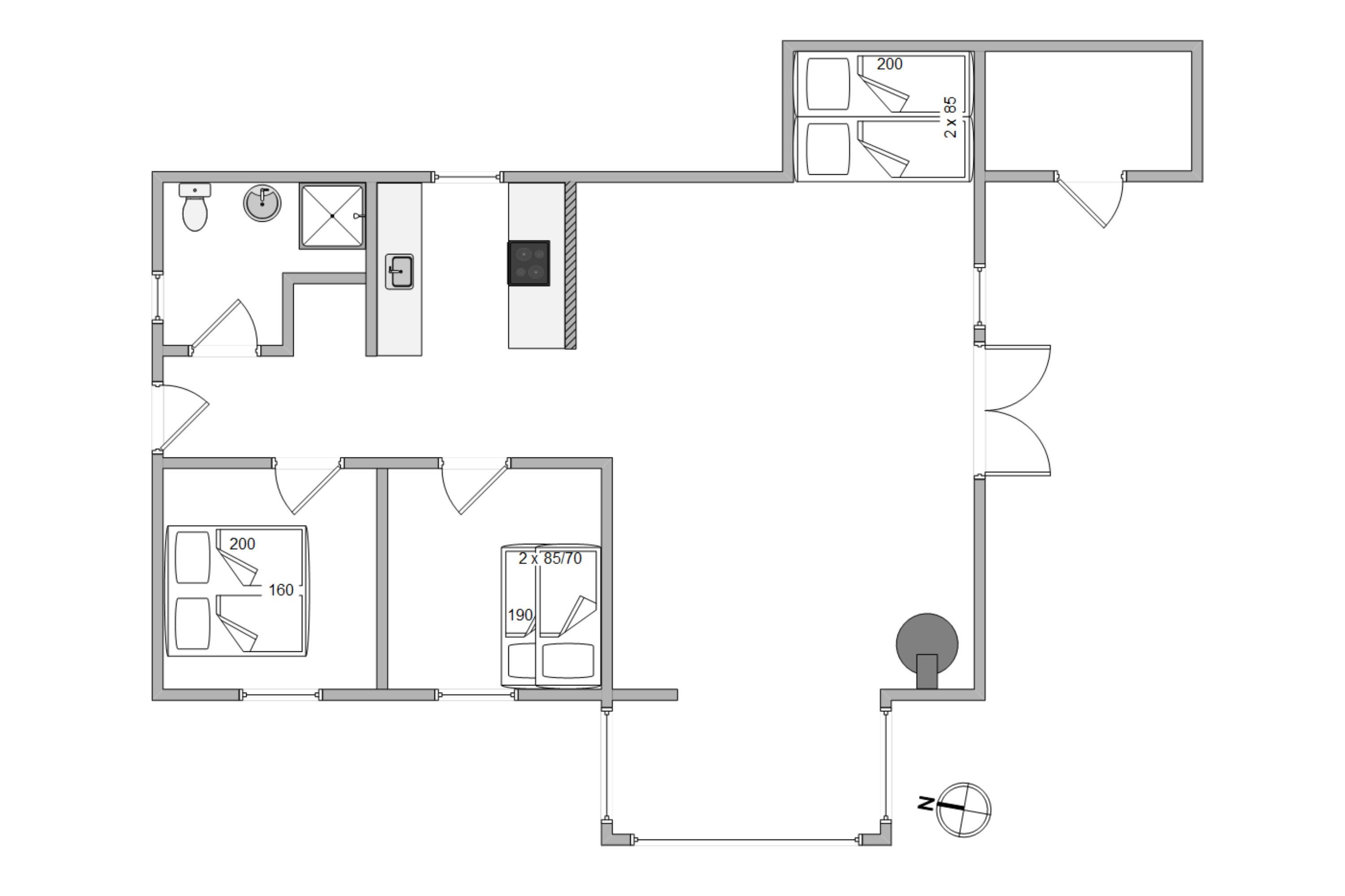 Sommerhusets hjerte er den åbne stue og spisestue. De lyse møbler, det moderniserede tekøkken og gulvbelægningen understreger sommerhusets hyggelige karakter. 2 soveværelser, samt den komfortable alkove i stuen, tilbyder sovepladser til op til 6 personer. Op til 2 hunde er velkomne i sommerhuset.