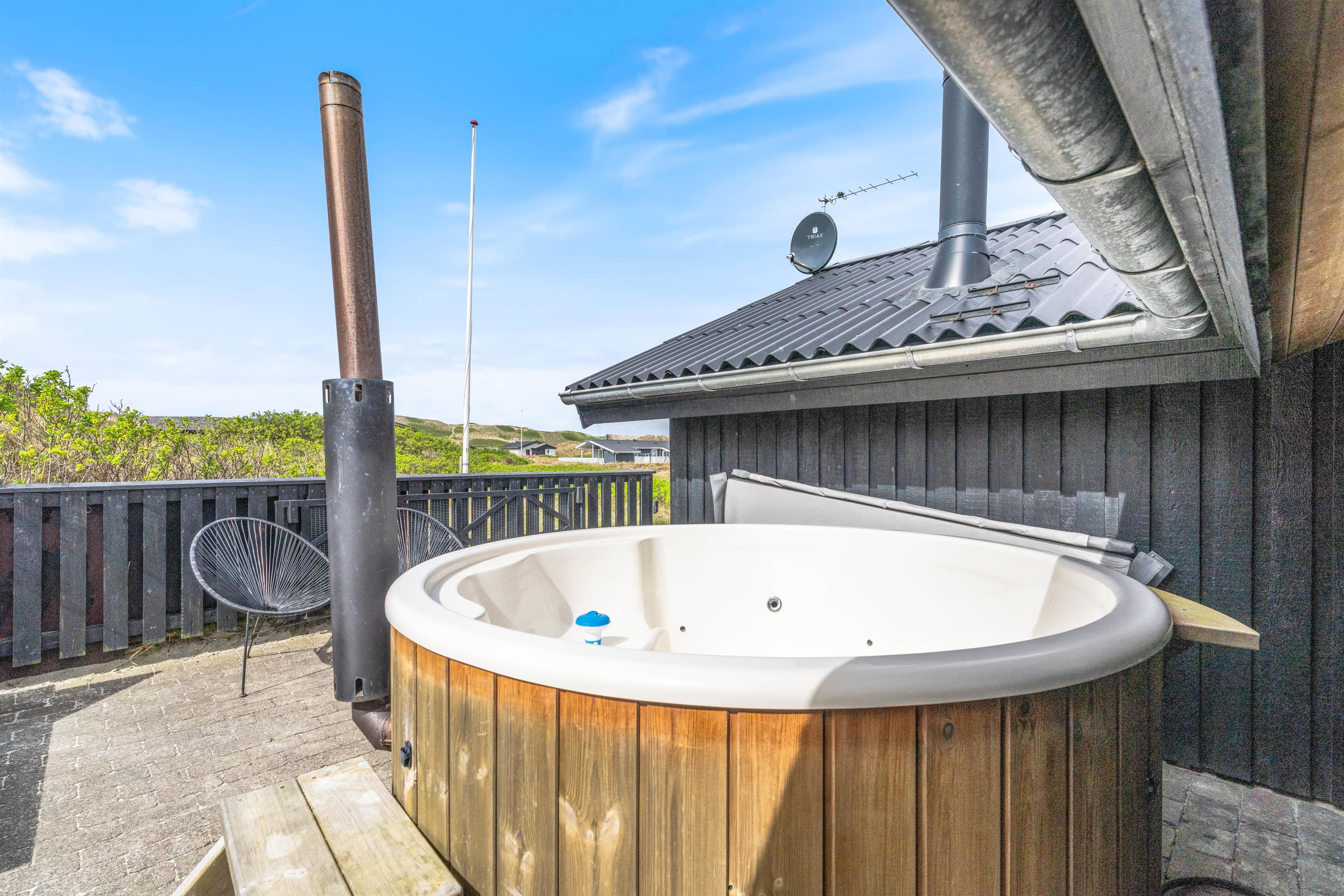 Husets rummelige, delvist afskærmede og overdækkede terrasse er lavet til forholdene tæt på Vesterhavet, så I altid kan finde et læfyldt sted og nyde den friske havluft. En lille ekstra bonus er den lille terrasse på sydsiden af huset, hvor man kan nyde en stille stund med sin morgenkaffe.