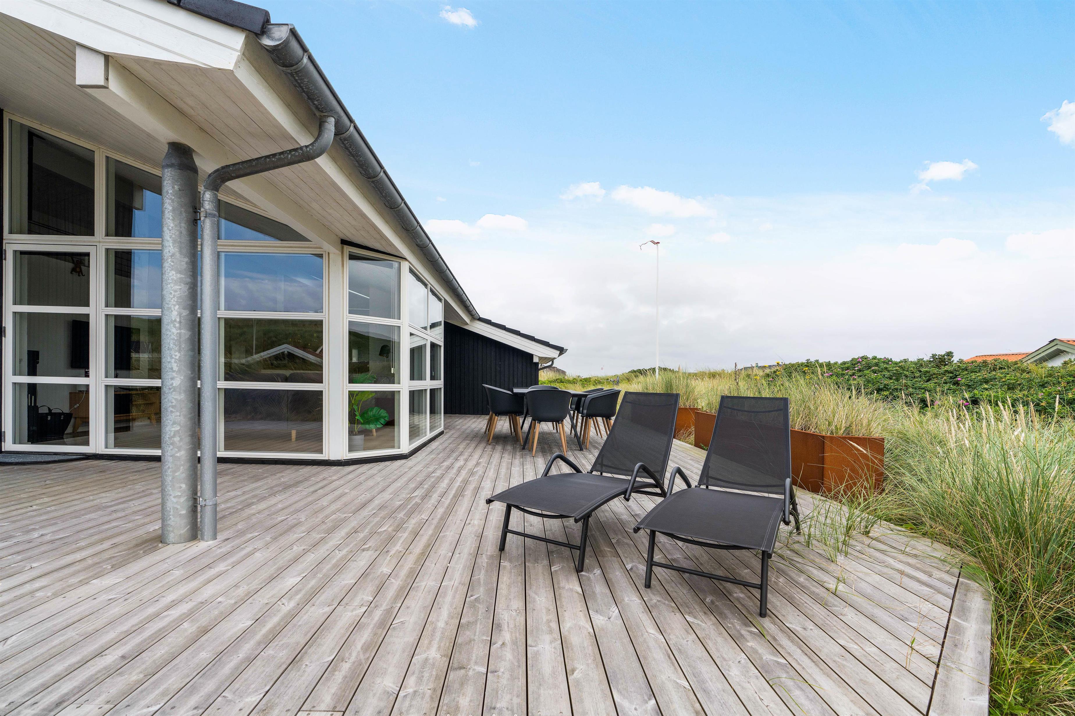 Ud over den fantastiske terrasse får I også en helt exceptionel beliggenhed. Vesterhavet ligger kun 50 meter væk, og der står intet i vejen for en strandudflugt. Der er ligeledes kun en lille gåtur til havnebyen Hvide Sande, hvor masser af fine butikker, hyggelige caféer og lækre restauranter venter på jer.