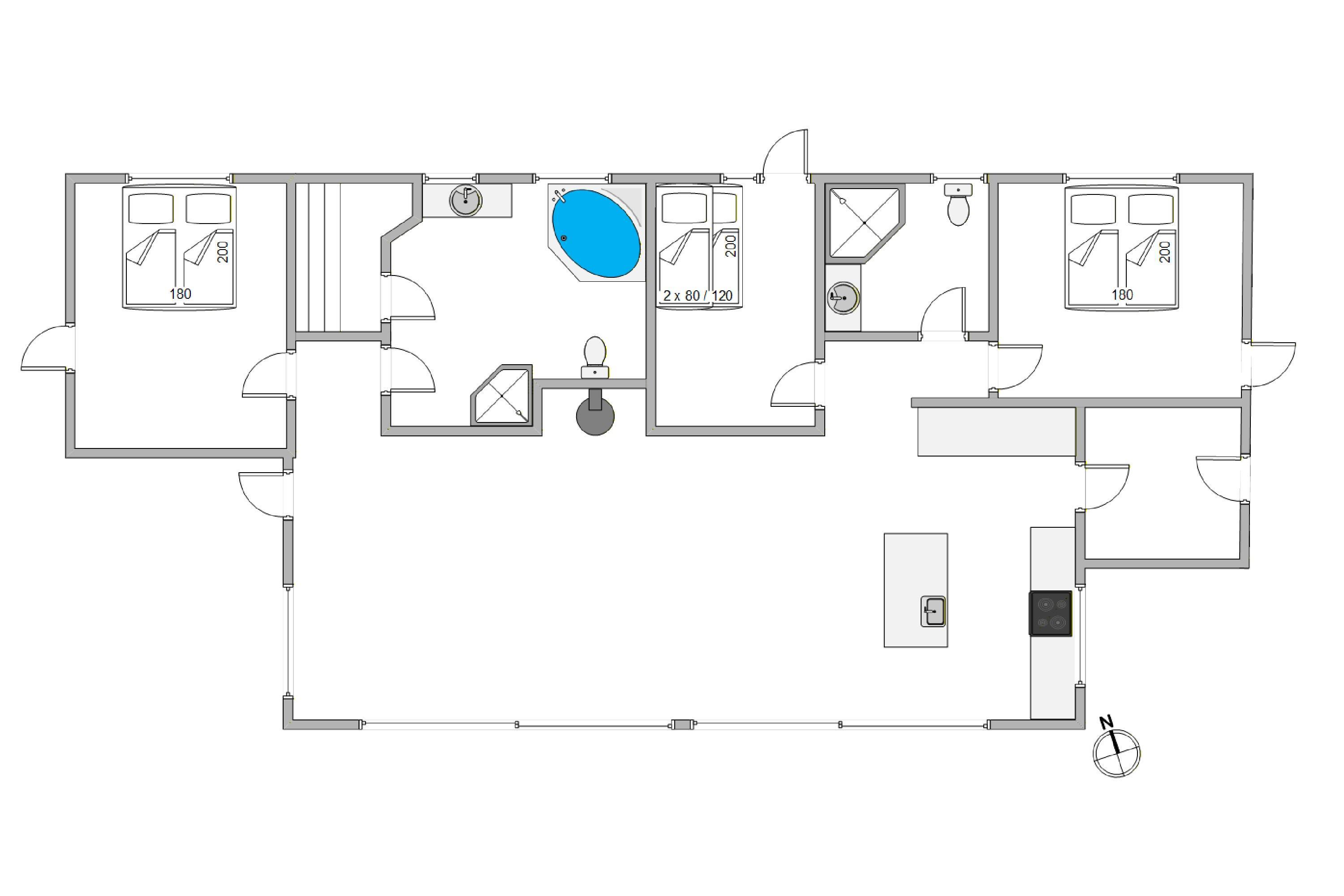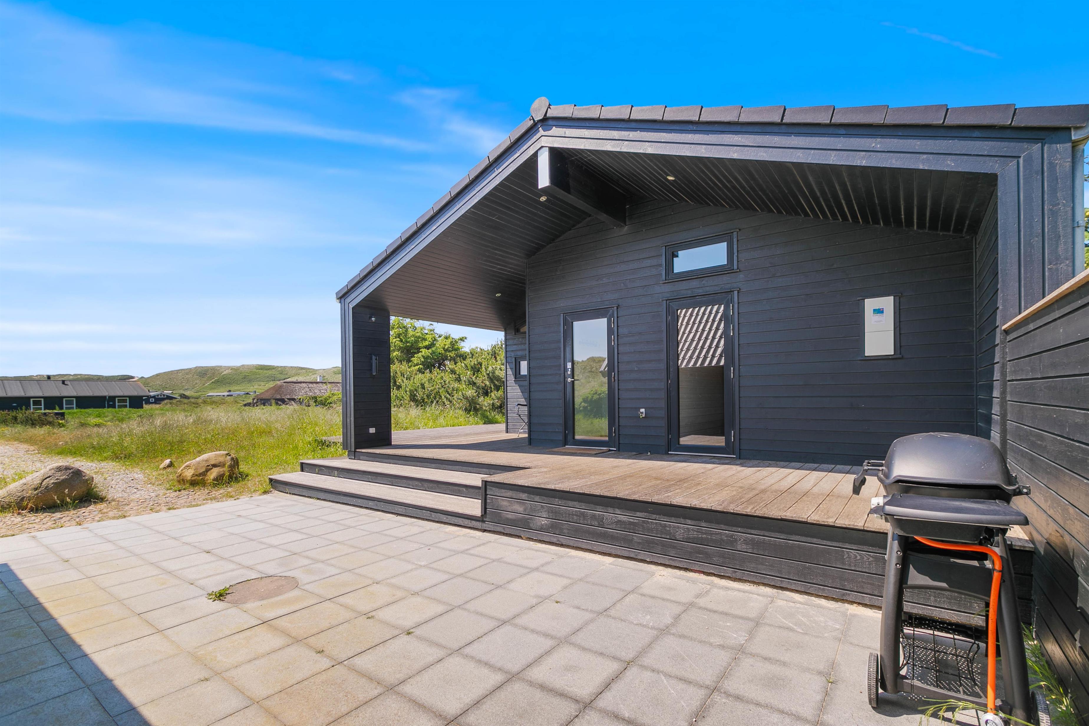 Et lækkert feriehus i det attraktive Årgab. Det er bygget ind i en klit, du har har læ og privatliv, og så er det godt indrettet og er særdeles veludstyret. Der er en skøn lukket terrasse mod vest, som også er delvist overdækket og denne terrasse kan benyttes til afslapning om dagen og hyggelige grillaftener. Mellem huset og dets aktivitetsrum er der også en terrasse, som er perfekt midt på dagen. Derudover er der 3 gode værelser og 2 indbydende badeværelser, så huset kan nemt benyttes af en familie med store børn. Der er mulighed for at se forskellige tv-programmer på de to fjernsyn uafhængig af hinanden.