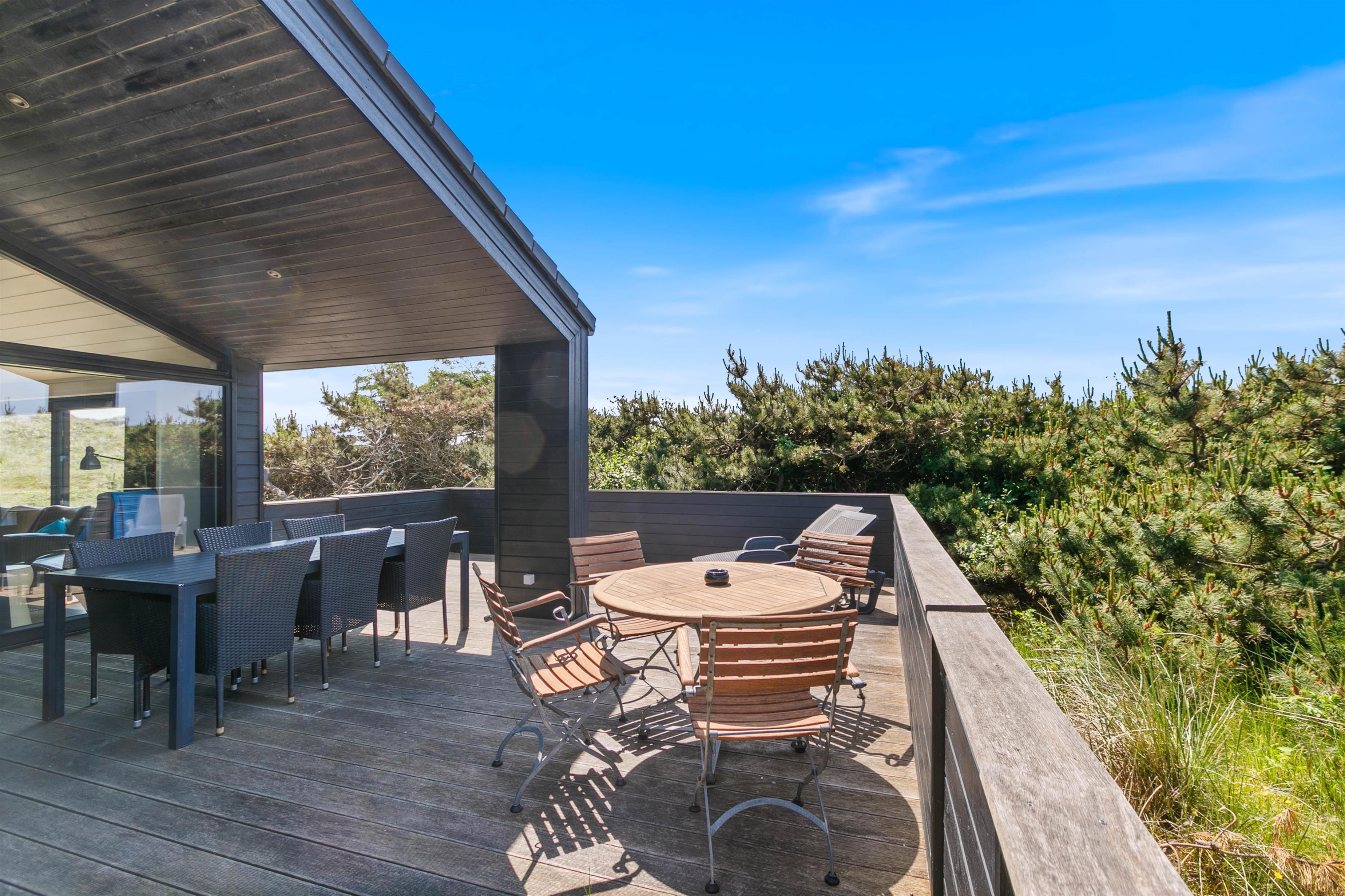 Skønt feriehus med en fredelig og delvis overdækket lukket terrasse tæt på stranden i Årgab. Huset er spændende indrettet og det er bygget i gode materialer. Området er fantastisk smuk med dets kuperede klitlandskab, som du kan nyde terrassen og stuen. Et moderne hus til den kræsne familie.