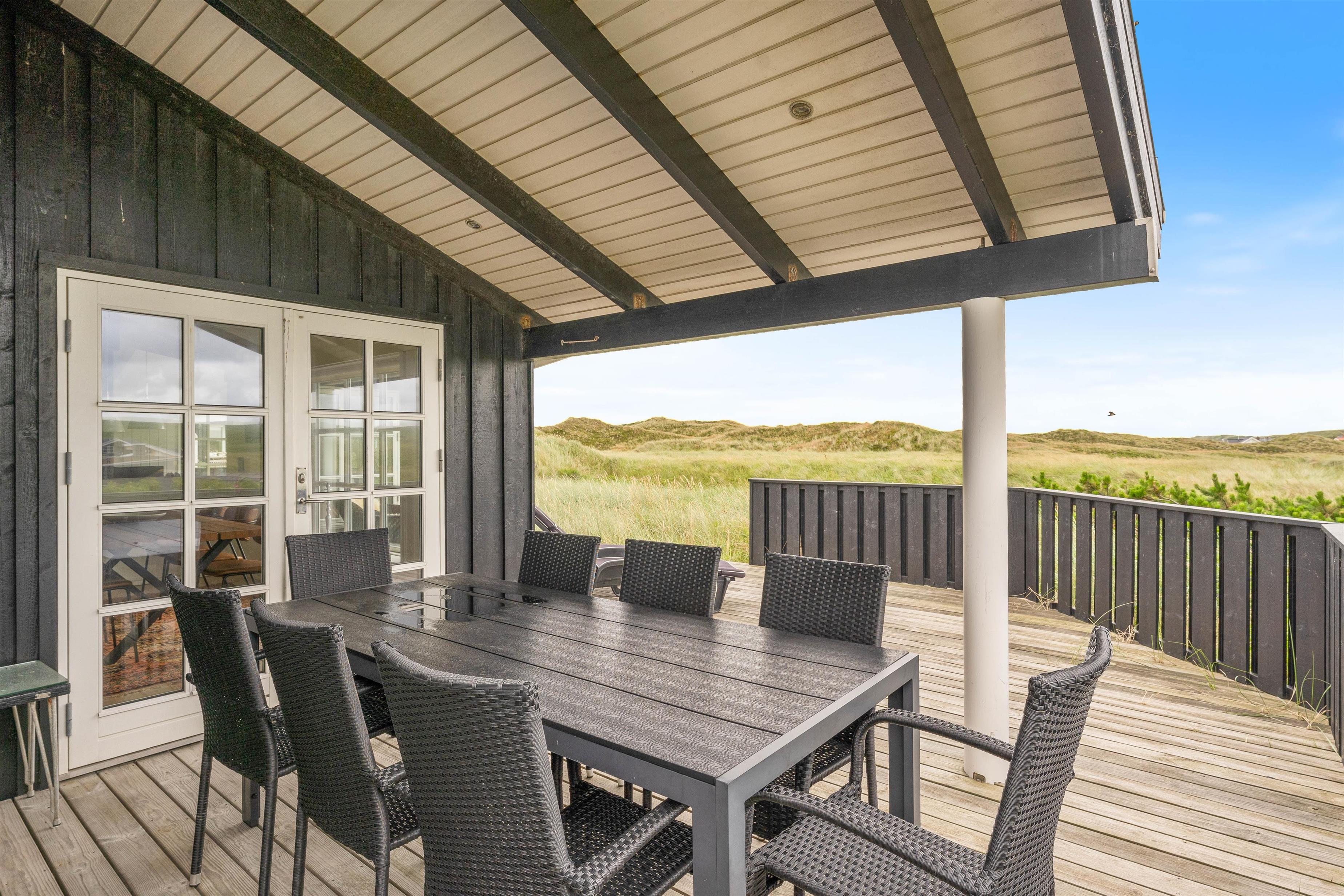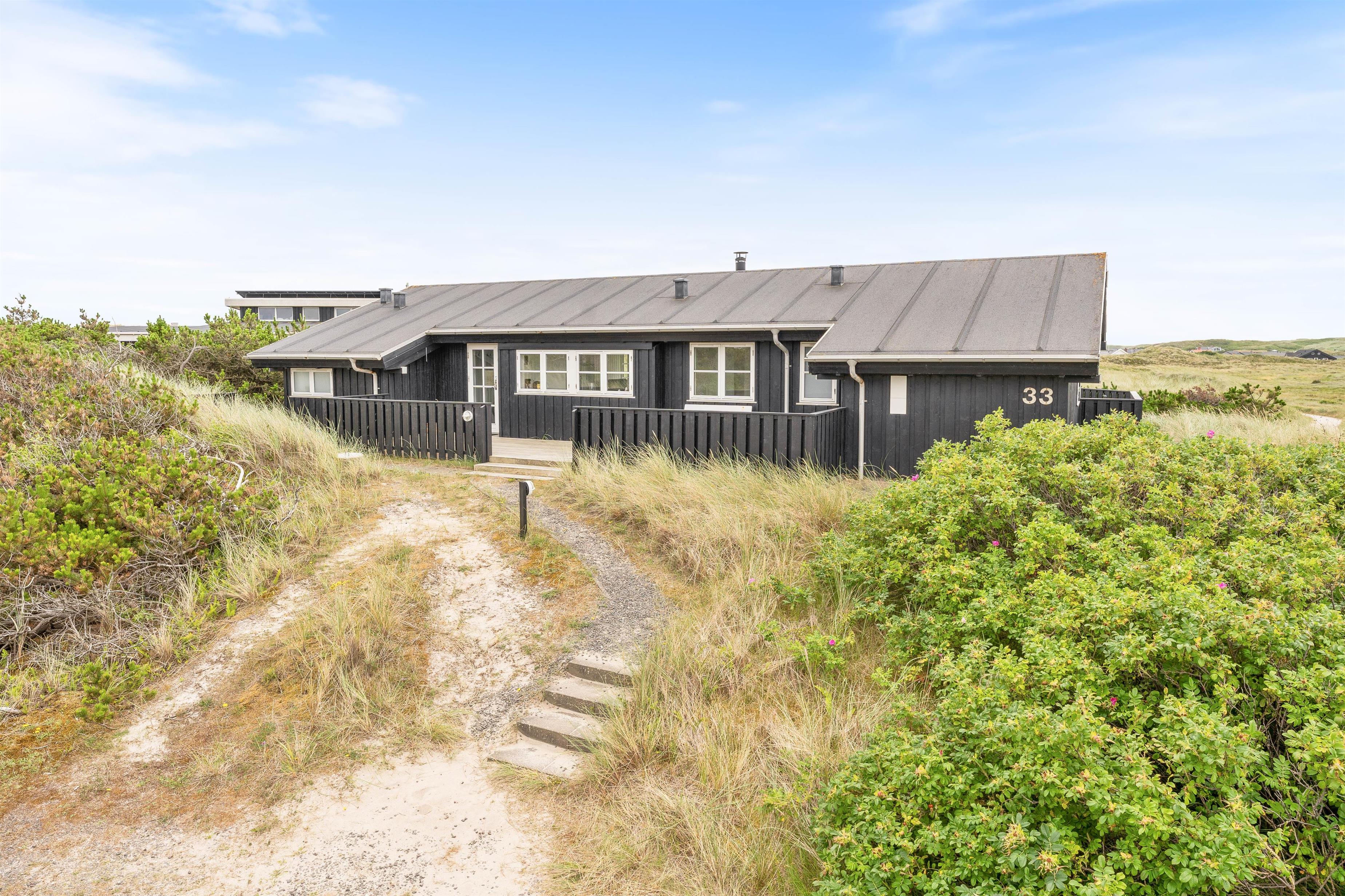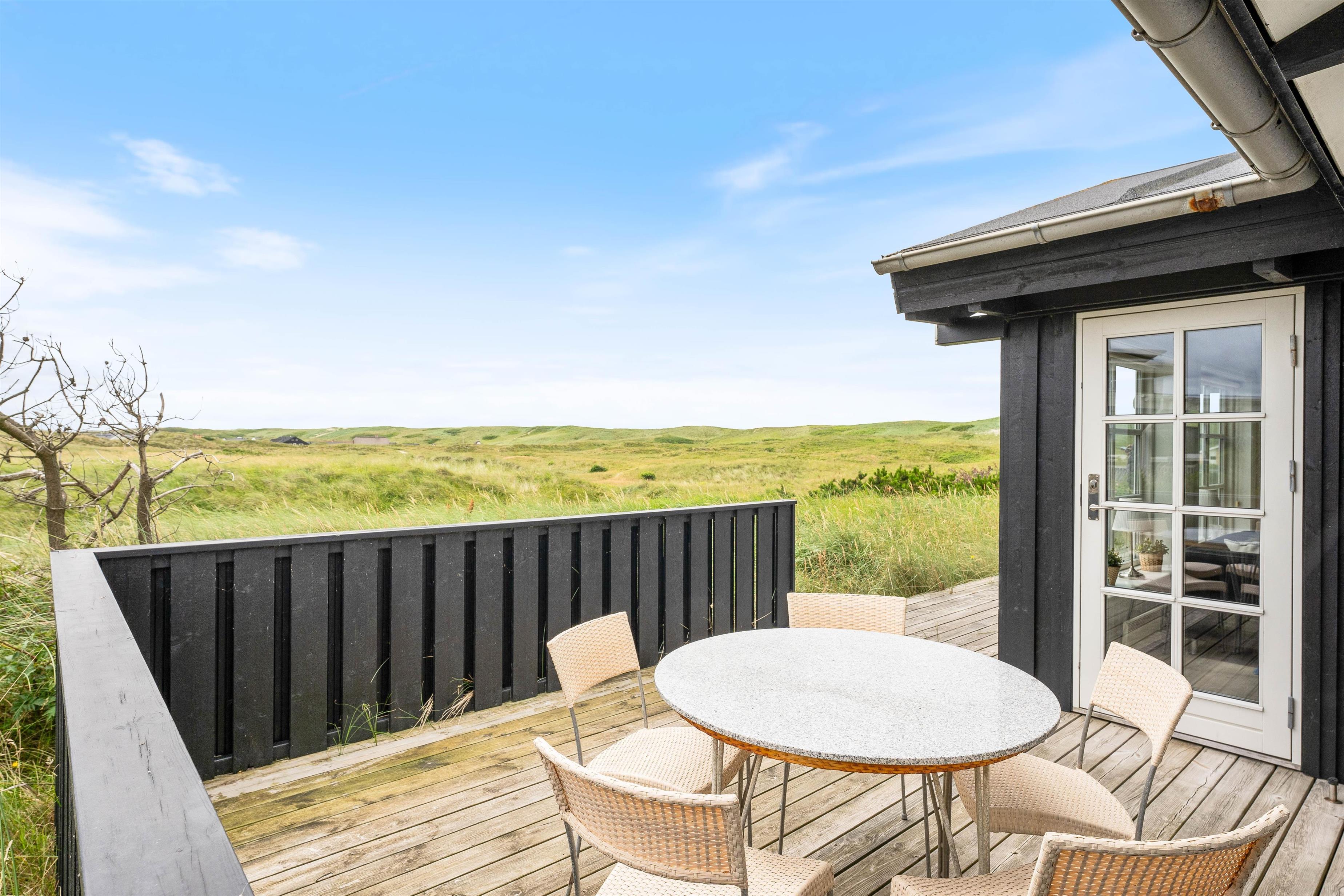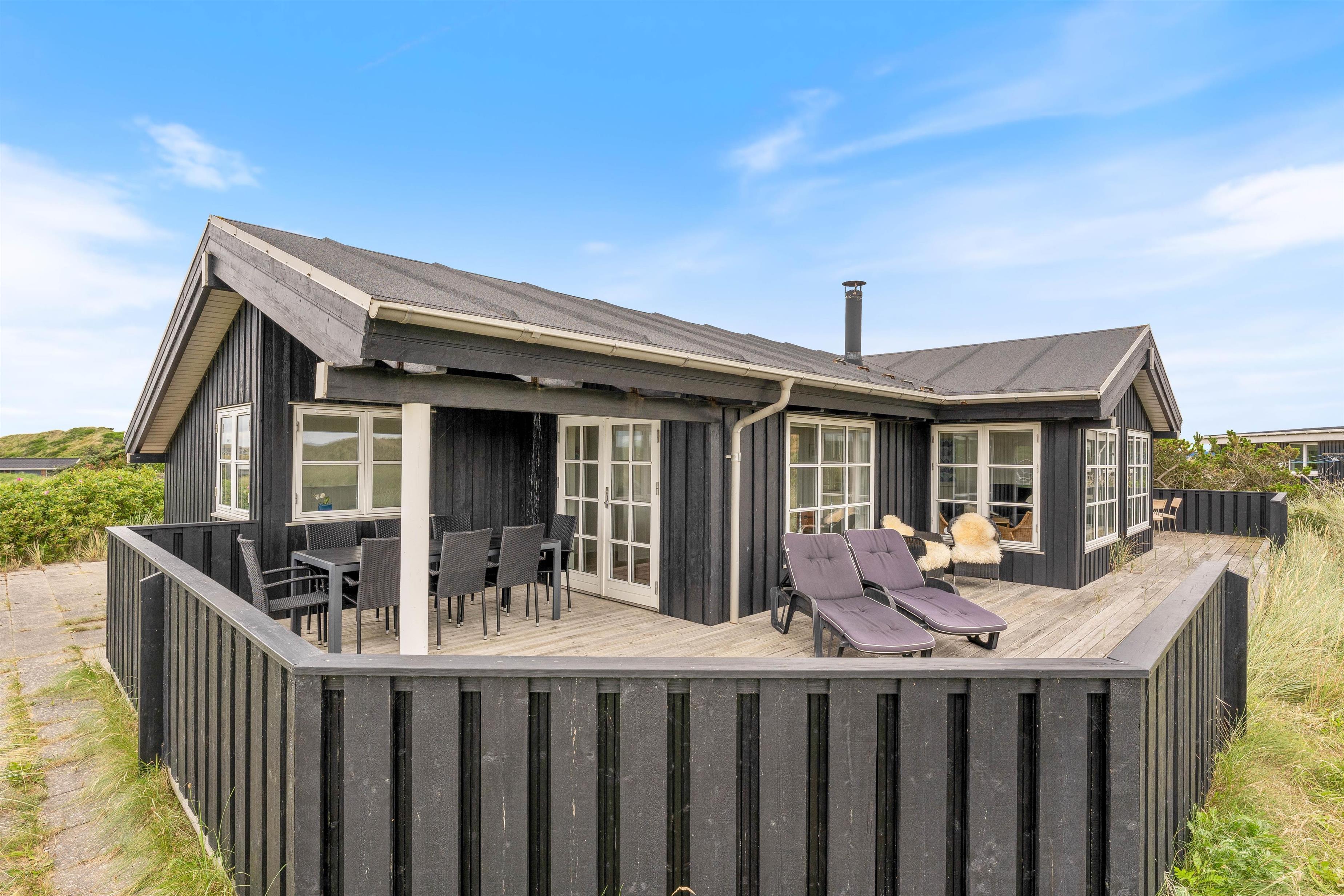 På en kuperet naturgrund kun få hundrede meter fra stranden ligger dette fantastisk lækre luksushus. Fra huset og grunden er der en pragtfuld udsigt over heden og til klitterne. Huset har alt hvad man kan ønske sig af luksus og komfort, bl.a. spa og sauna.