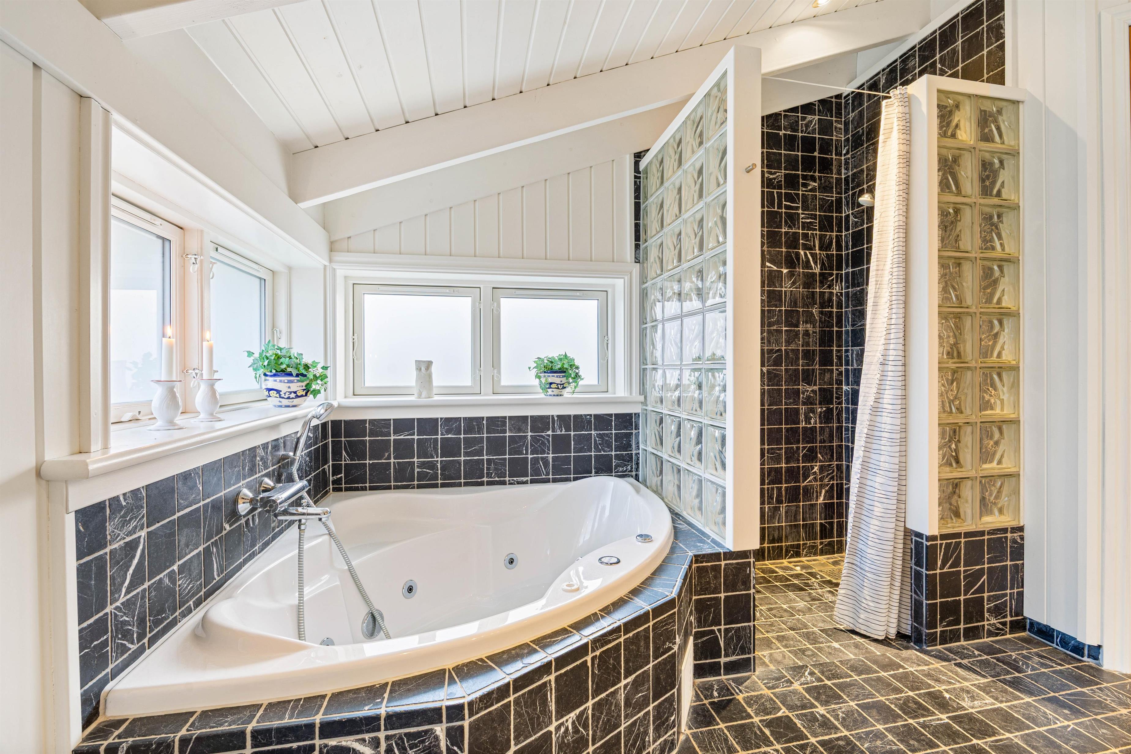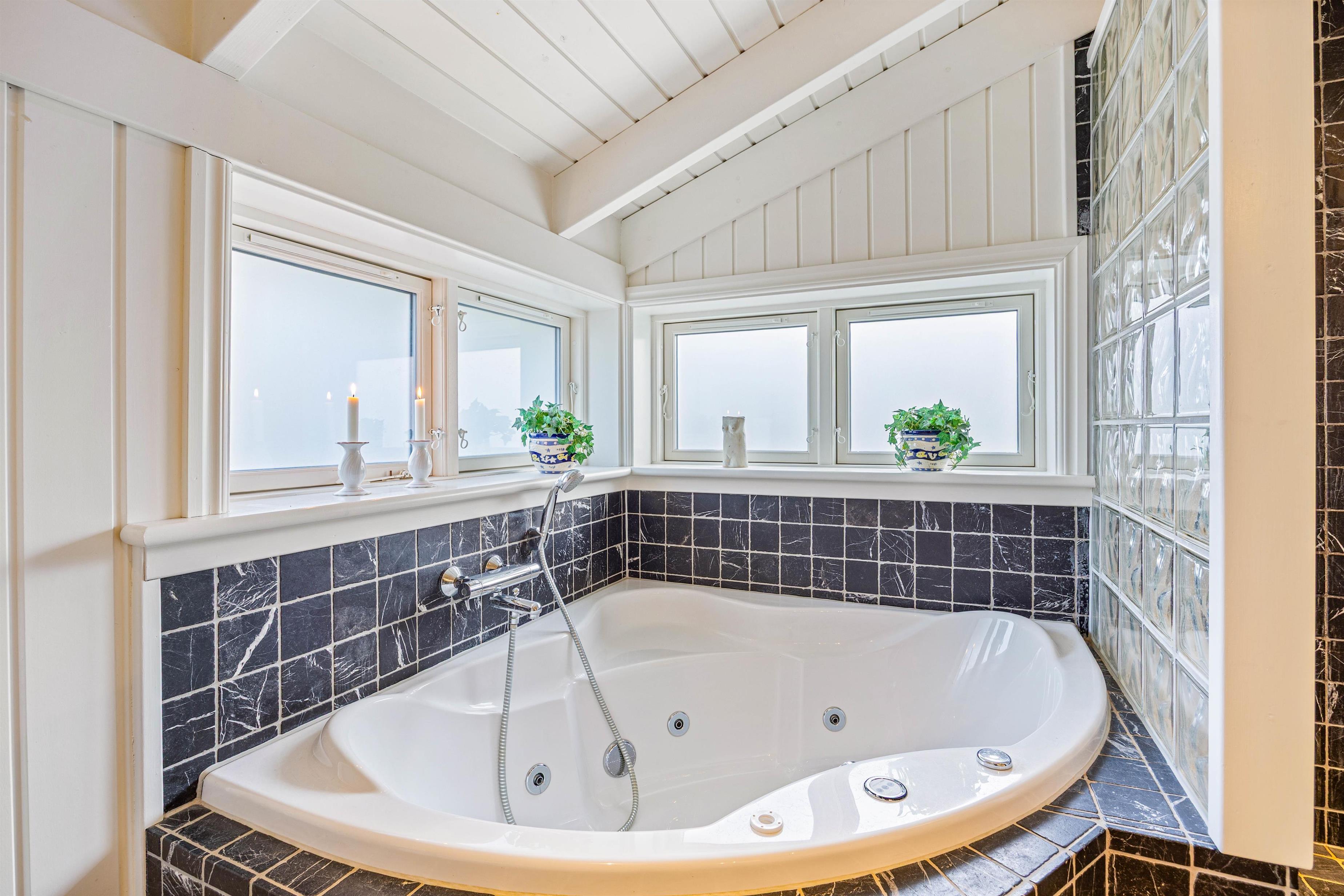 Huset er opført i flotte materialer, og der er ikke lavet kompromis med kvaliteten, hverken ude eller inde, så her har man et feriehus med et rigtig godt helhedsindtryk, hvor der er god plads og gode rum til seks personer, og hvor der står gode moderne faciliteter som f.eks. spabad og sauna til rådighed.
