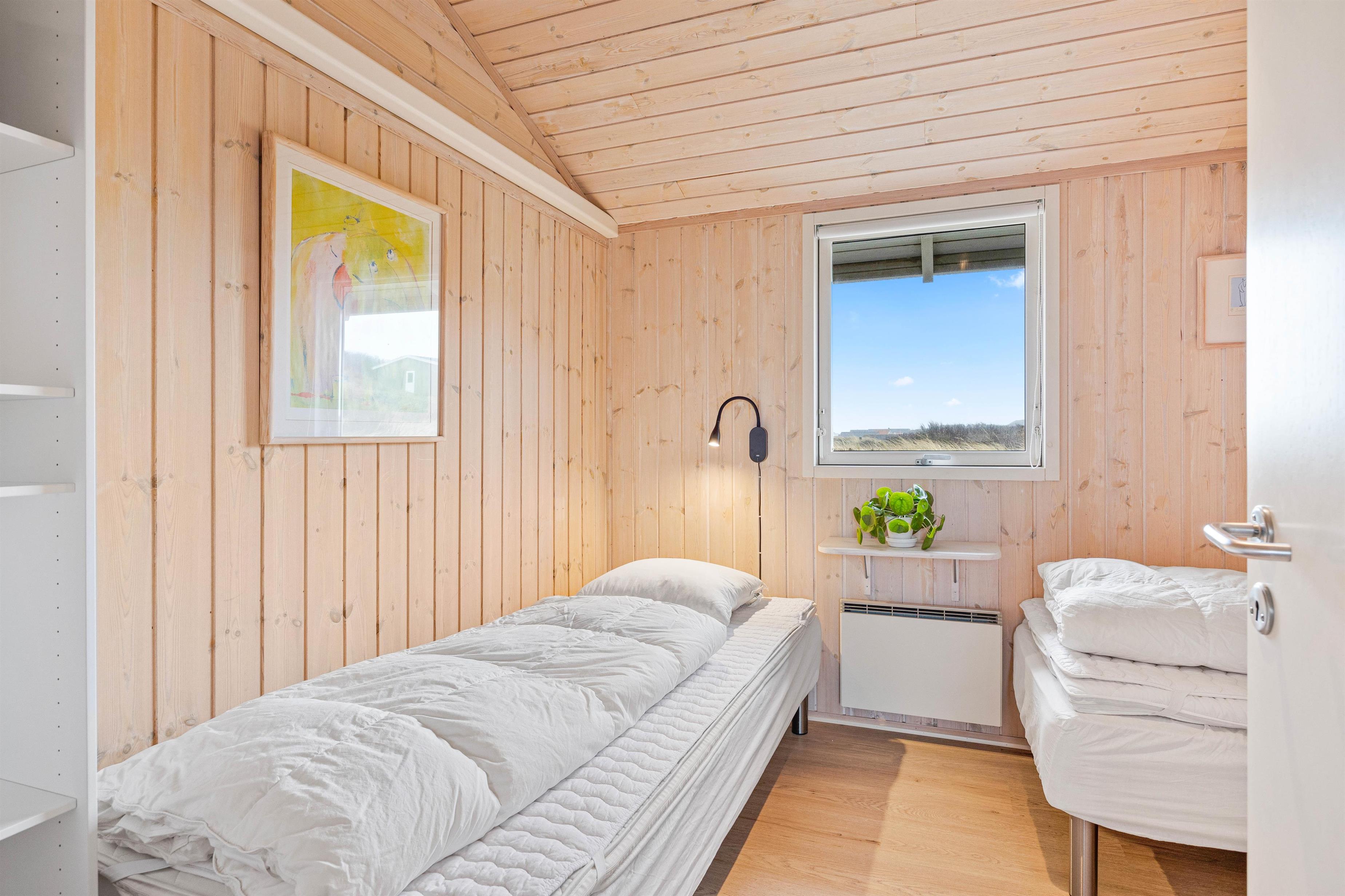 Sommerhuset har 3 skønne soverum – det ene med en dobbeltseng og de andre med 2 enkelt senge.