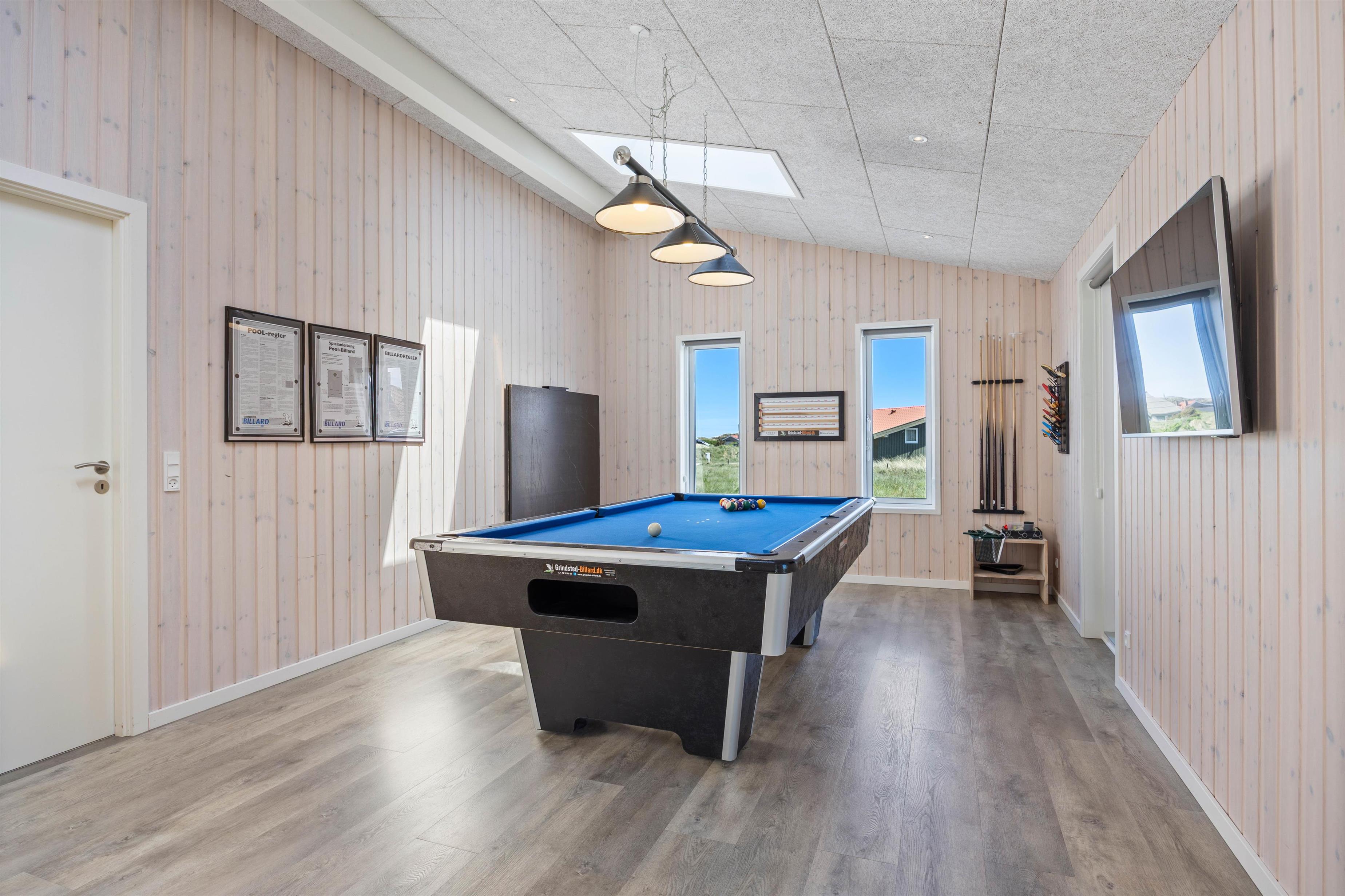 I den ene opholdsstue er der brændeovn, så I kan skrue max op for feriehyggen. Fra begge stuer er der desuden udgang til sommerhusets skønne terrasse. I sommerhuset finder I også et lille aktivitetsrum med et billiardbord.