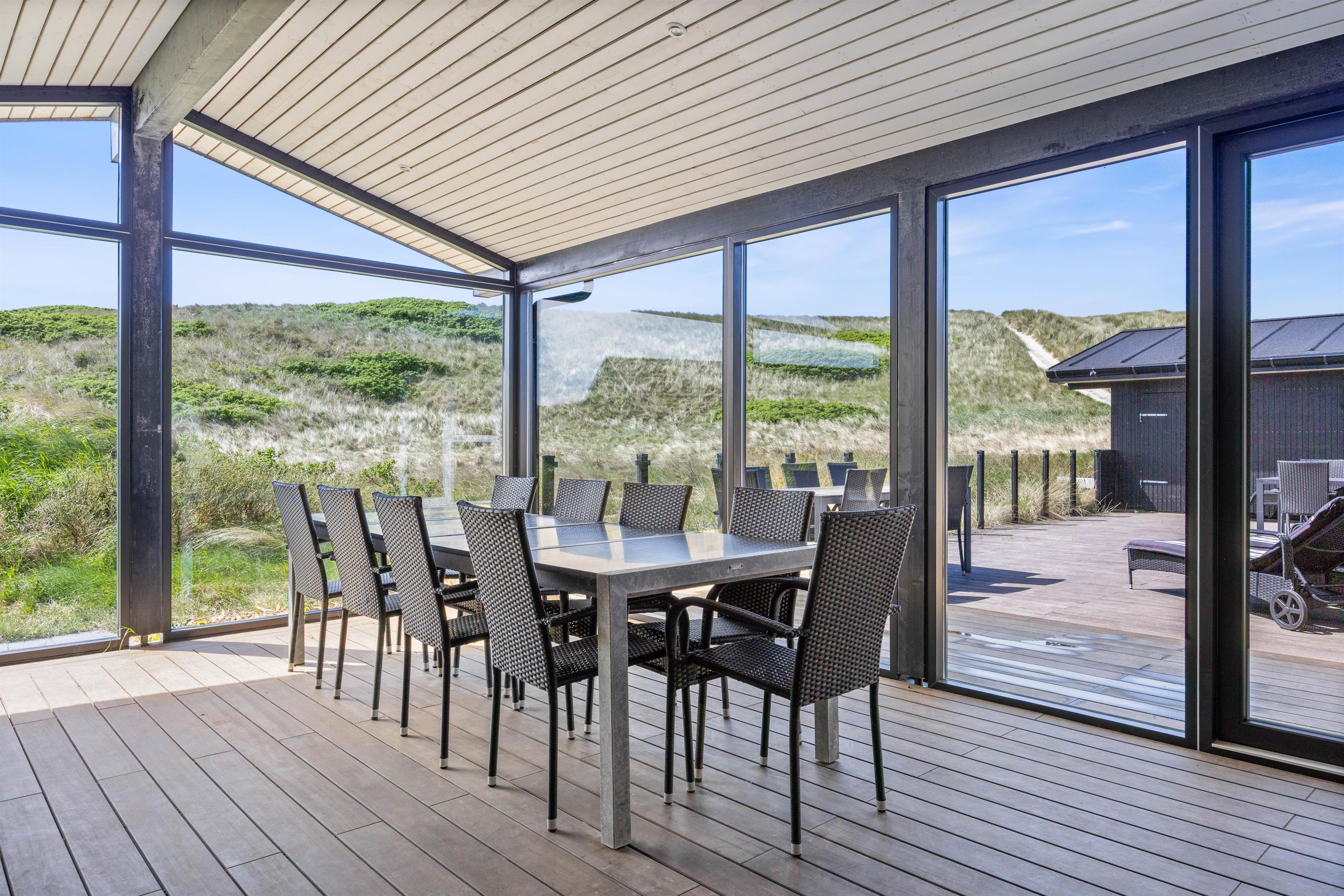 Sommerhusets unikke beliggenhed er ikke til debat, og med den fantastiske træterrasse, der er fuld af muligheder, er feriehuset en sand perle. Både en åben og overdækket terrasse står til jeres rådighed, og I har mulighed for at nyde solen, fra den står op i øst, til den går ned i vest. Vil I nyde solnedgangen over havet fra første parket, så er det bare et lille smut over klitterne – nærmere bestemt kun 100 meter. Efter en tur ved havet kan I skylle jer under udebruseren, som er tilgængelig fra april til november.