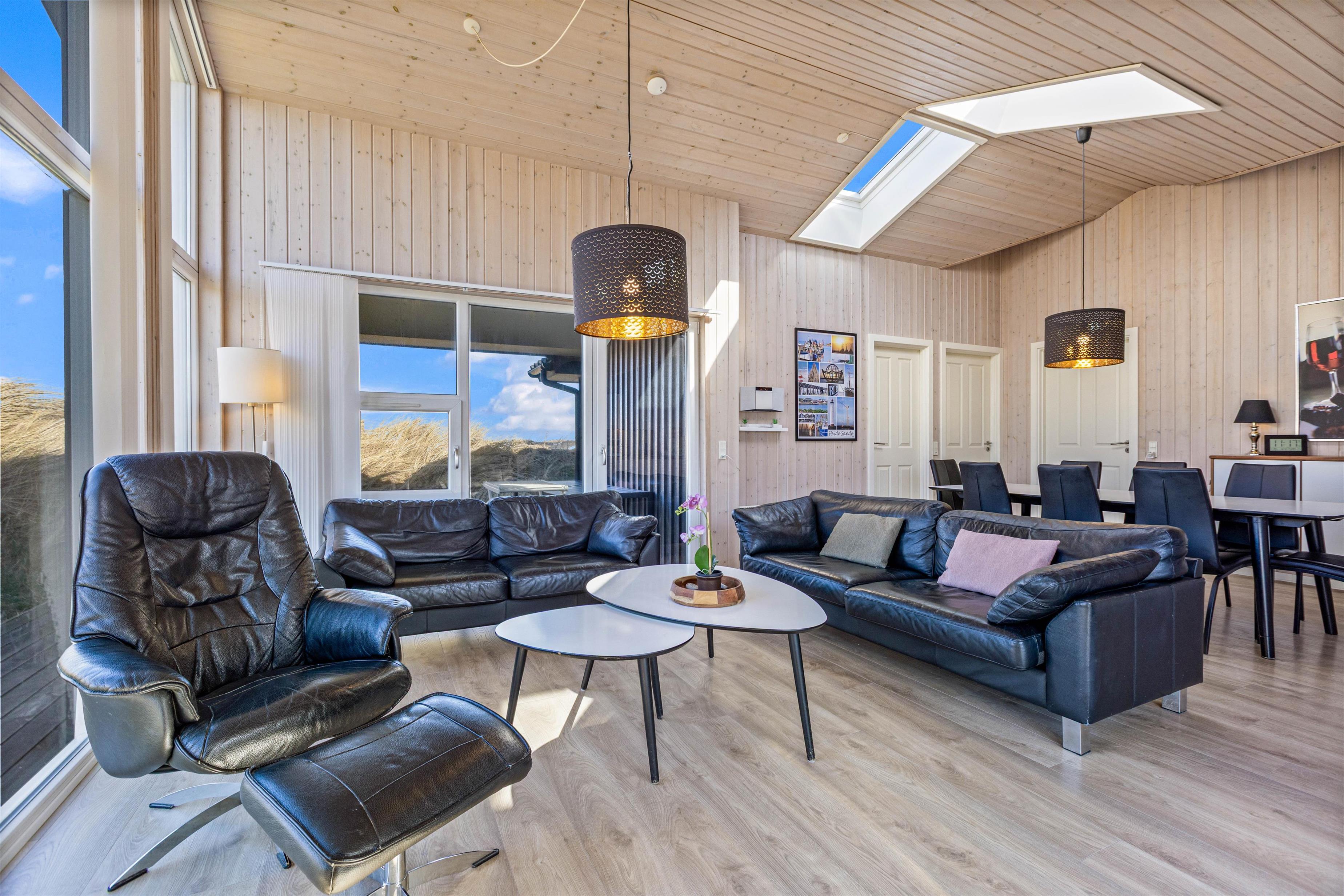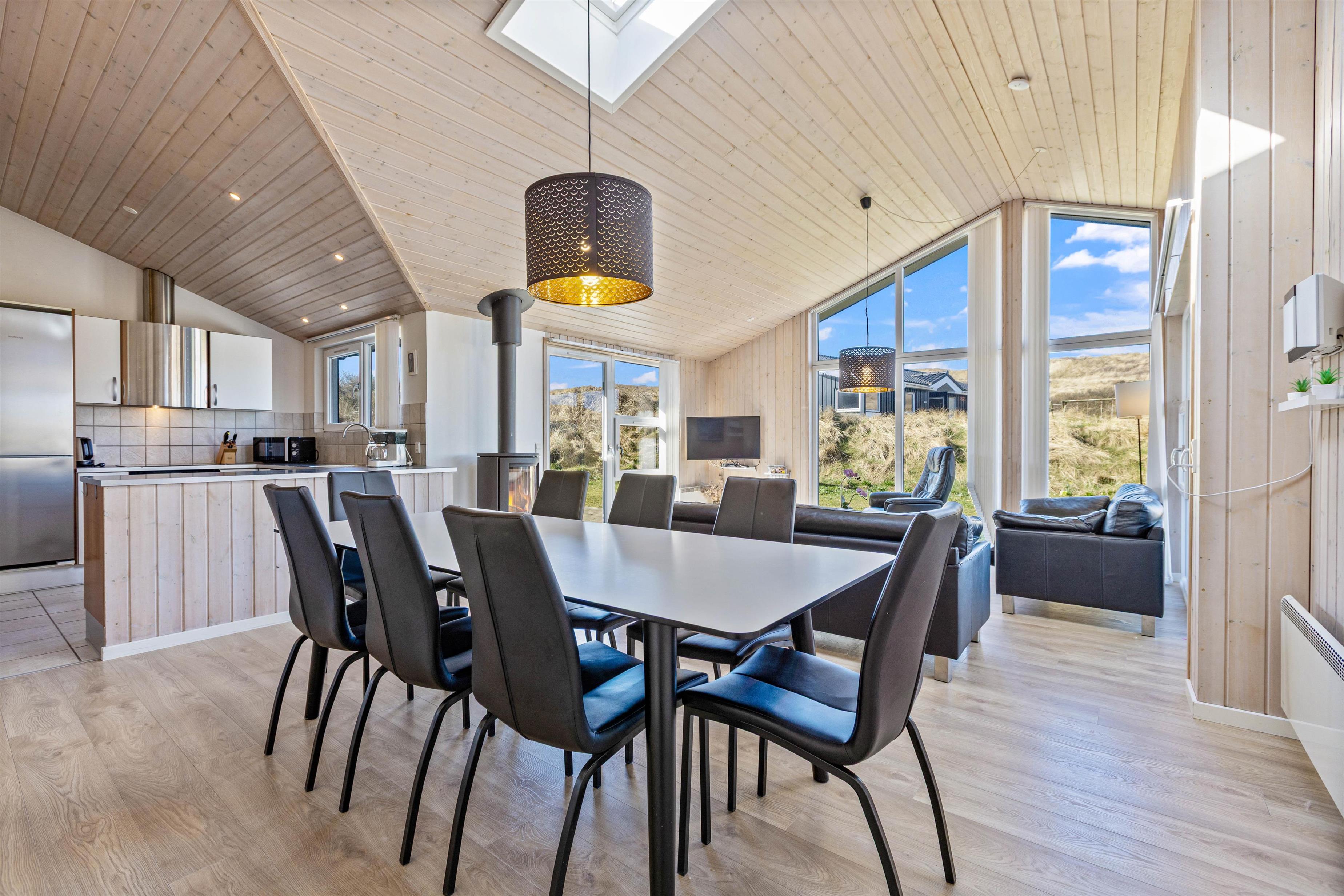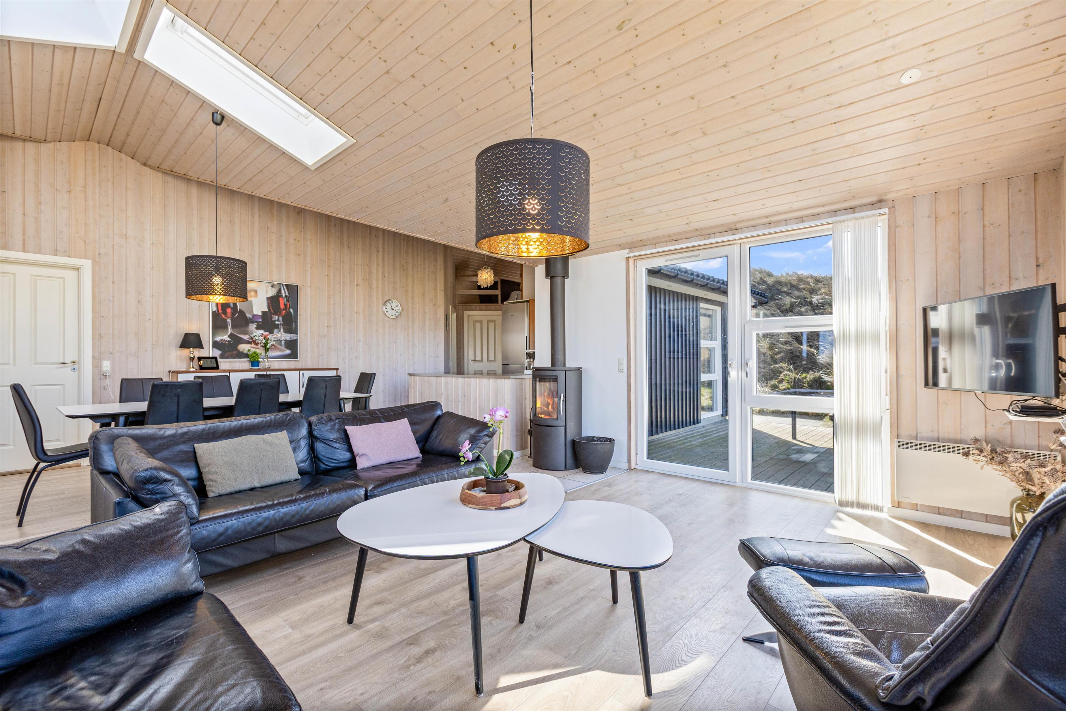 Der er dømt afslapning og familiehygge i stor stil, og især den store stue med integreret køkken og spiseafdeling kommer til at danne rammerne for en masse skønne feriestunder med alt fra kortspil til filmhygge og lækker mad rundt om spisebordet.