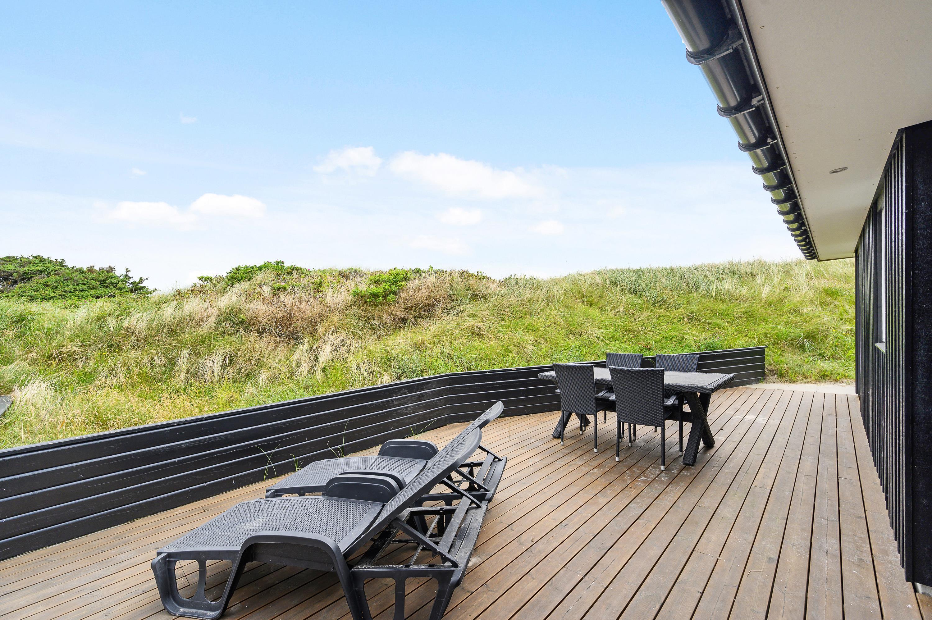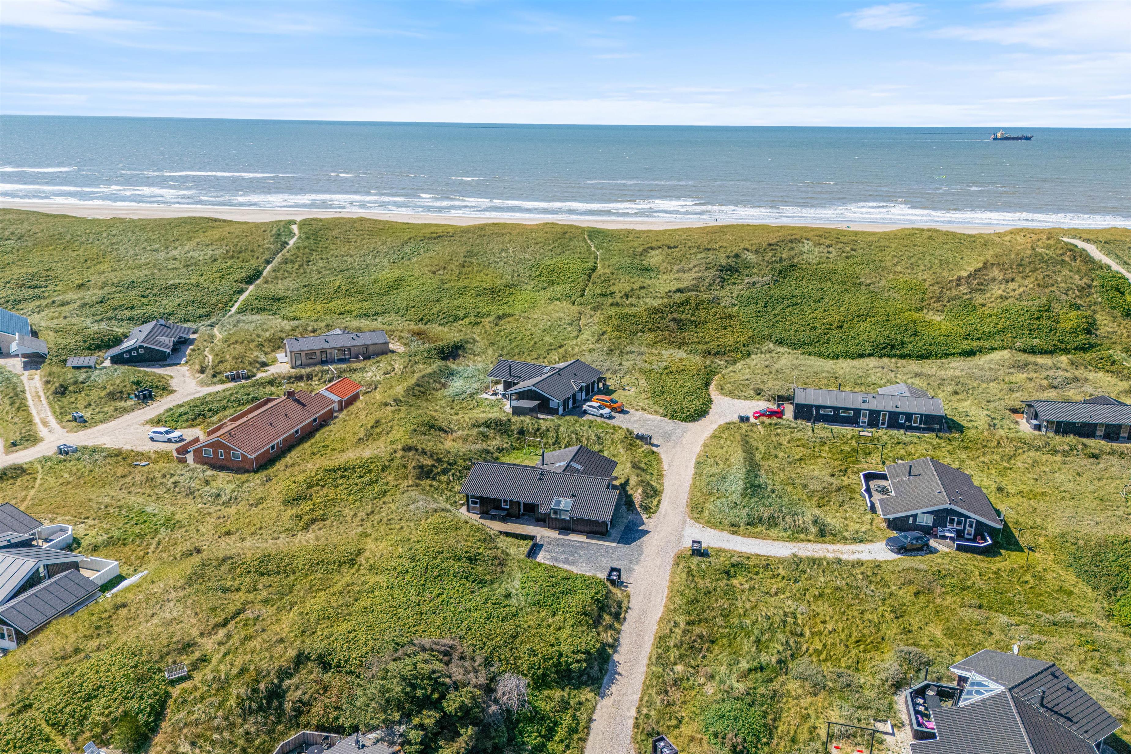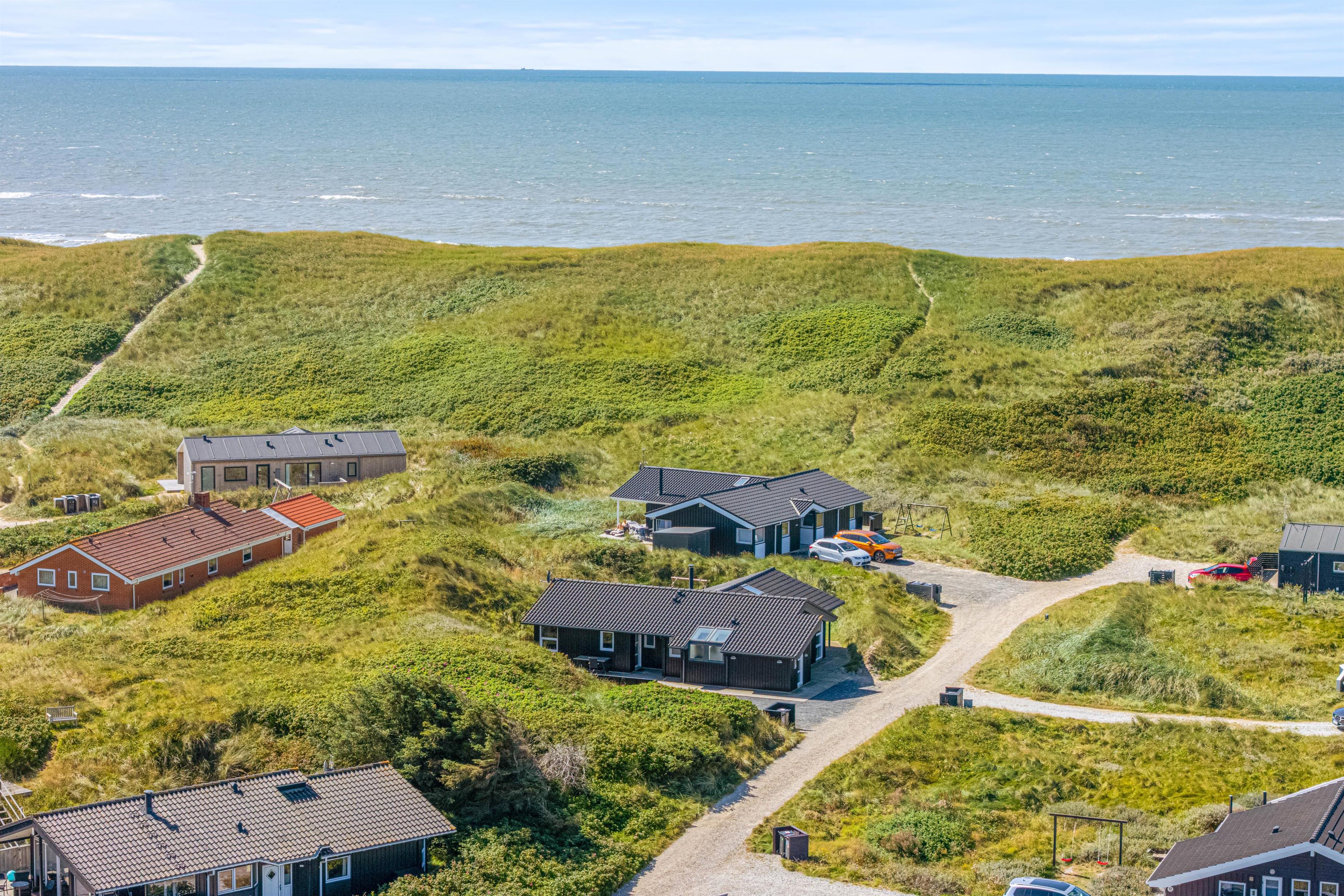 Kun et stenkast fra den nærmeste strandopgang ligger dette flotte feriehus. Her er rammerne sat for en luksuriøs ferie med alt, hvad feriehjertet begærer; Det indebærer både en lækker indretning med sauna og spabad, og ikke mindst, en fantastisk beliggenhed kun 150 meter fra det brusende Vesterhav. Op til 2 hunde tilladt!