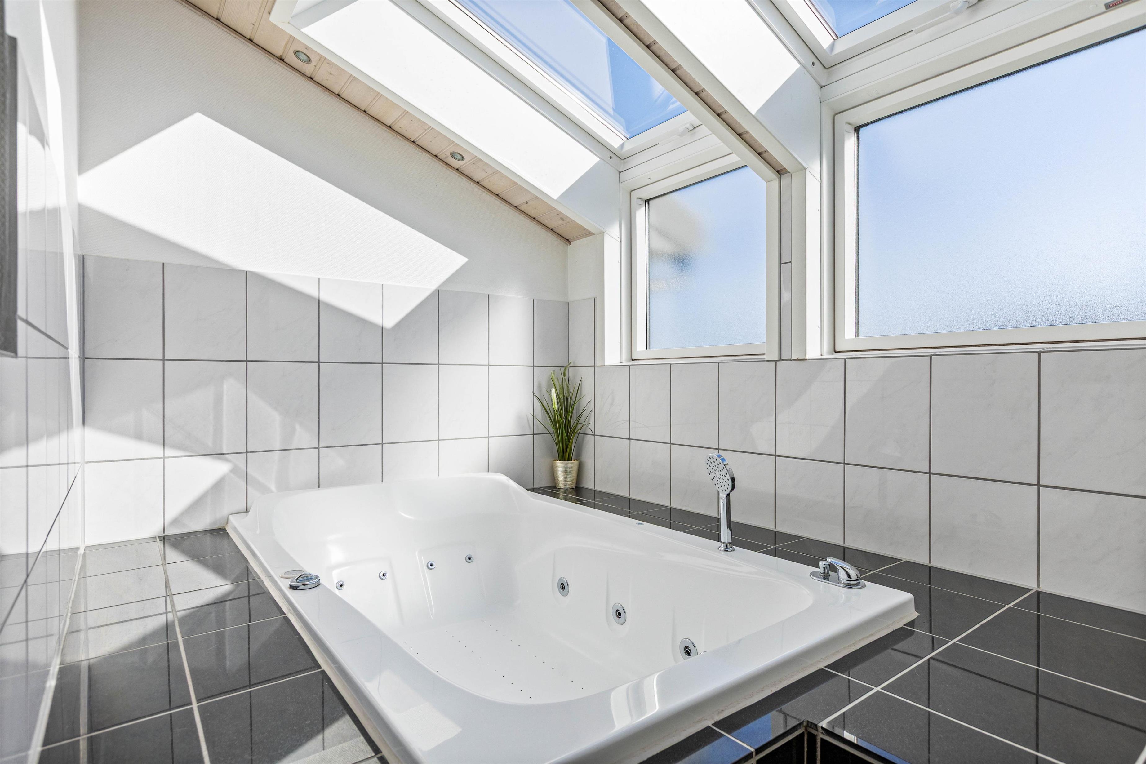 Feriehuset gemmer også en ekstra wellness-hemmelighed til jeres velfortjente ferie: I det største af husets 2 badeværelser står spabadet og saunaen nemlig klar til at forkæle jer lidt ekstra. Læn jer tilbage i boblerne eller den varme sauna og tank ny energi efter en oplevelsesrig feriedag - og rund aftenen af foran brændeovnen med et glas rødvin, inden det er tid til at kravle til køjs.