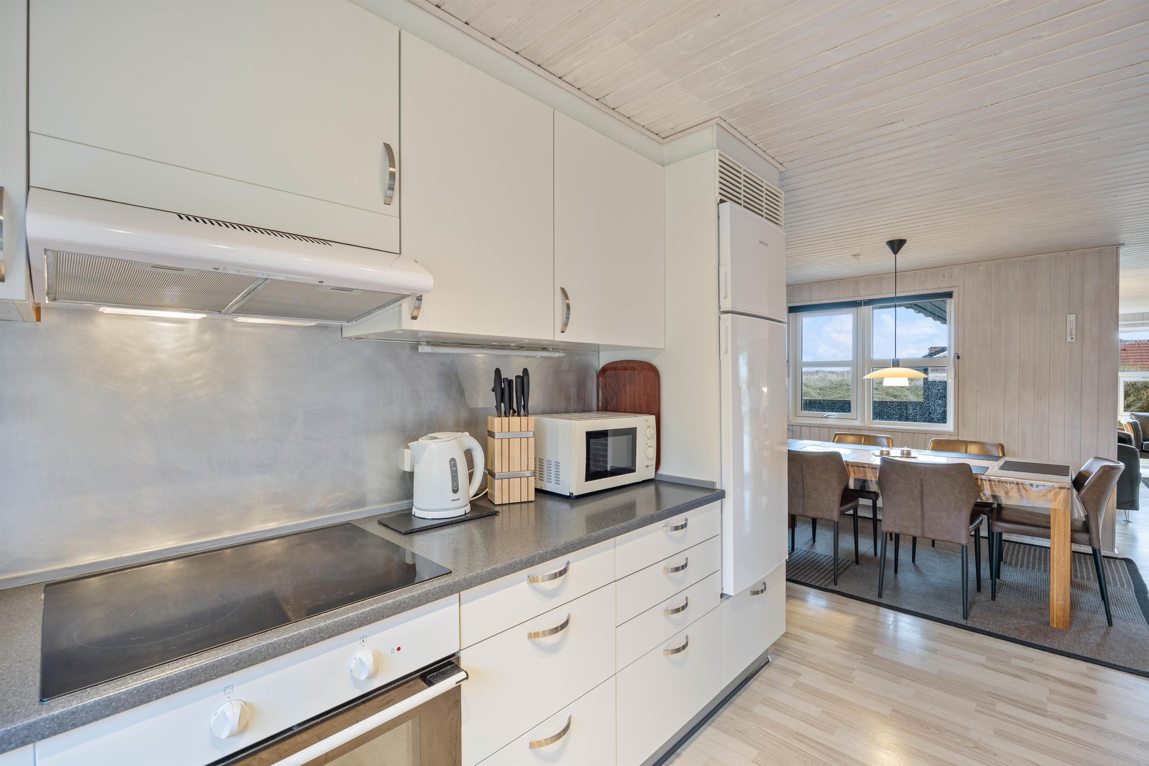I vil straks føle jer hjemme på Tingodden 323. Her er hyggeligt og lyst med en hjemlig indretning. Det lyse og praktisk indrettede køkken er udstyret med bl.a. 100 l. fryser, mikroovn og opvaskemaskine og ligger i åben forbindelse med spisestue og stue.