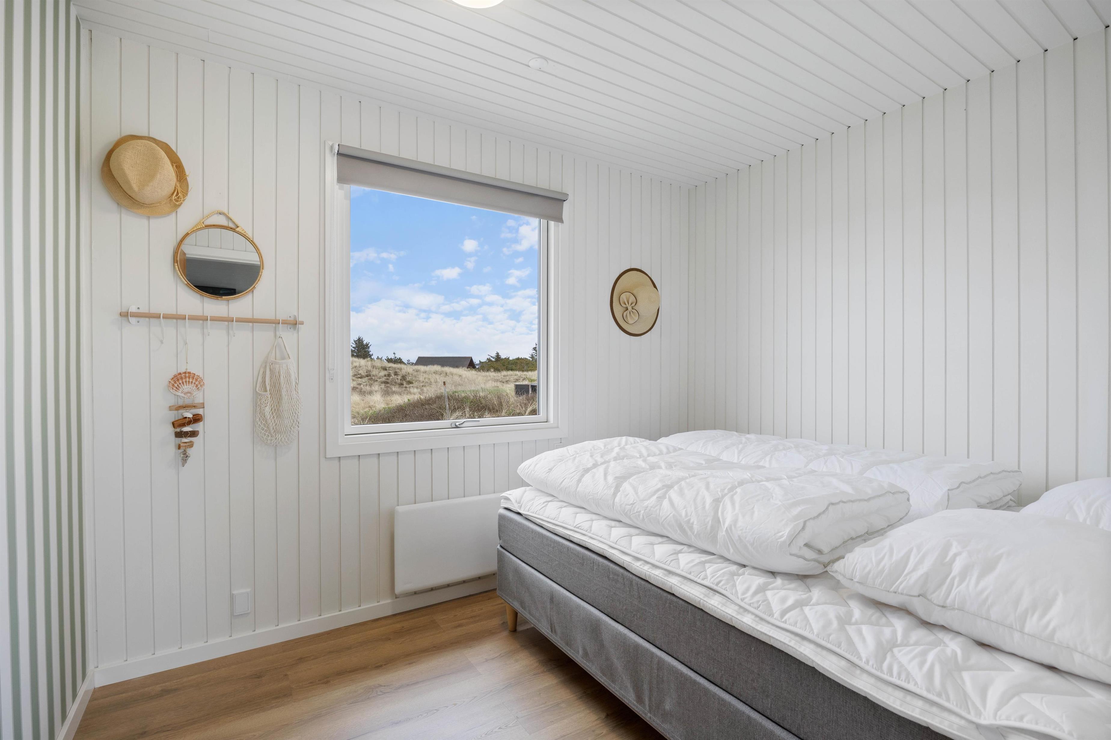 Sommerhuset byder på en lys og indbydende indretning med 3 hyggelige soveværelser, der giver mulighed for at finde ro efter en dag fyldt med aktiviteter. Badeværelset er udstyret med gulvvarme, som giver ekstra komfort på de køligere morgener.